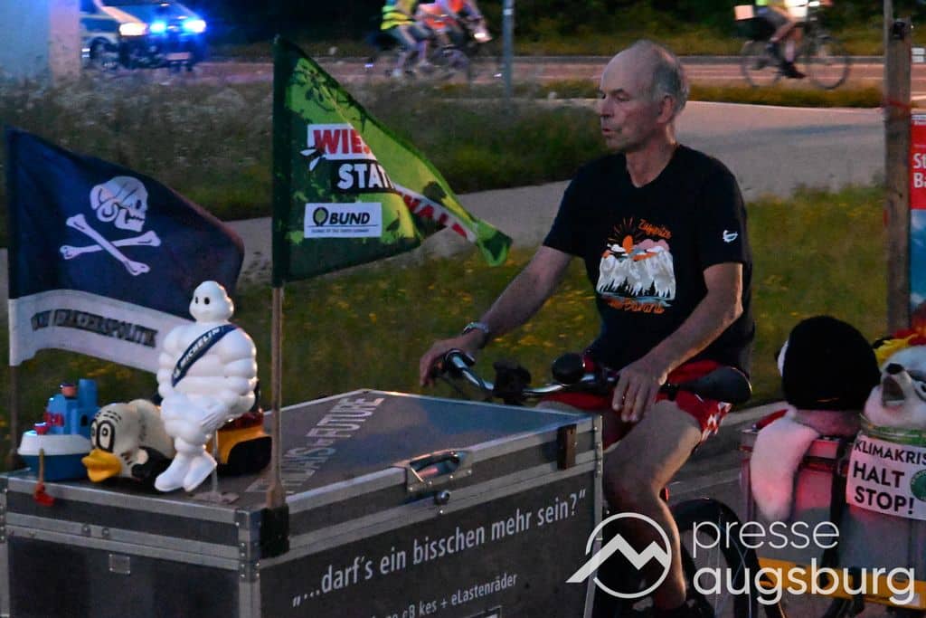 Ausgehend vom Prinzregentenplatz radelten die Teilnehmer gemeinsam einen ca. 12 km langen Rundweg durch die Stadt und fuhren sogar ein Stück auf der B17. Die Veranstaltung wurde von der Polizei begleitet und gesichert.