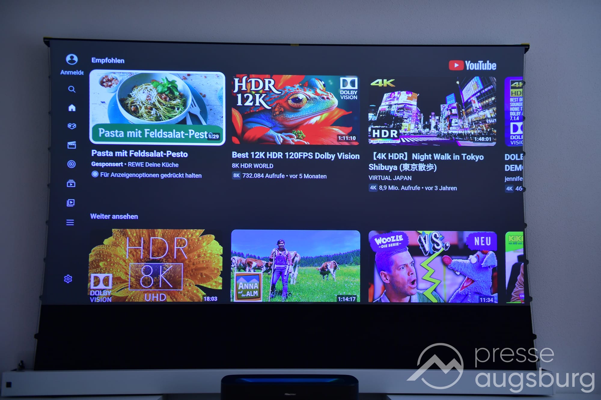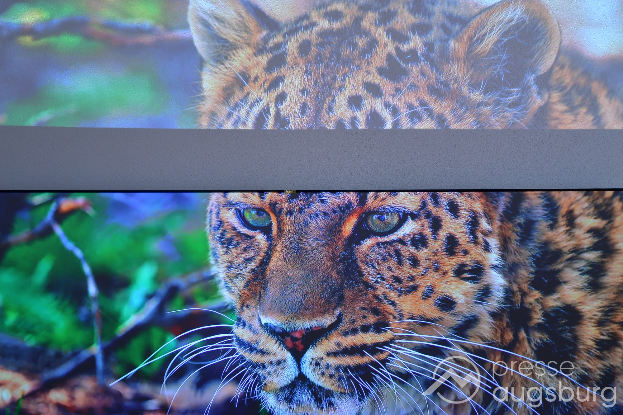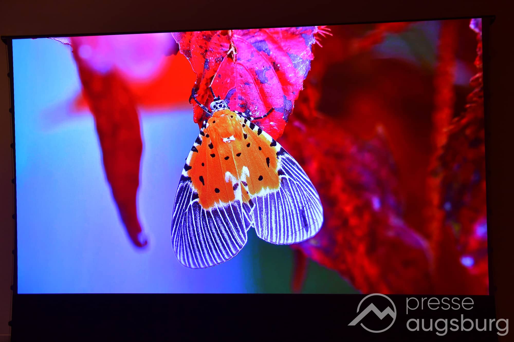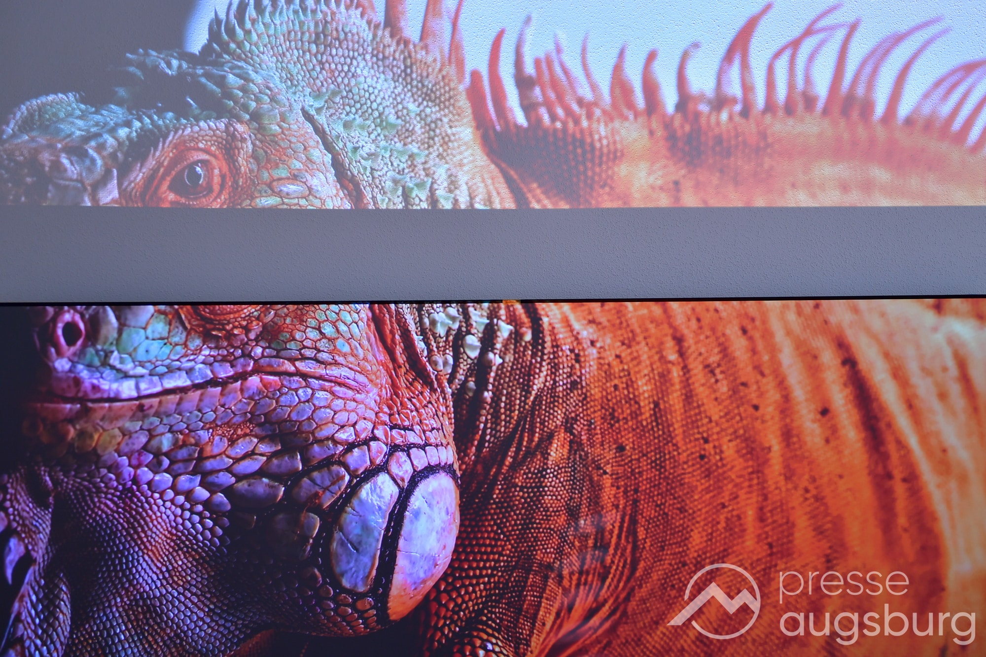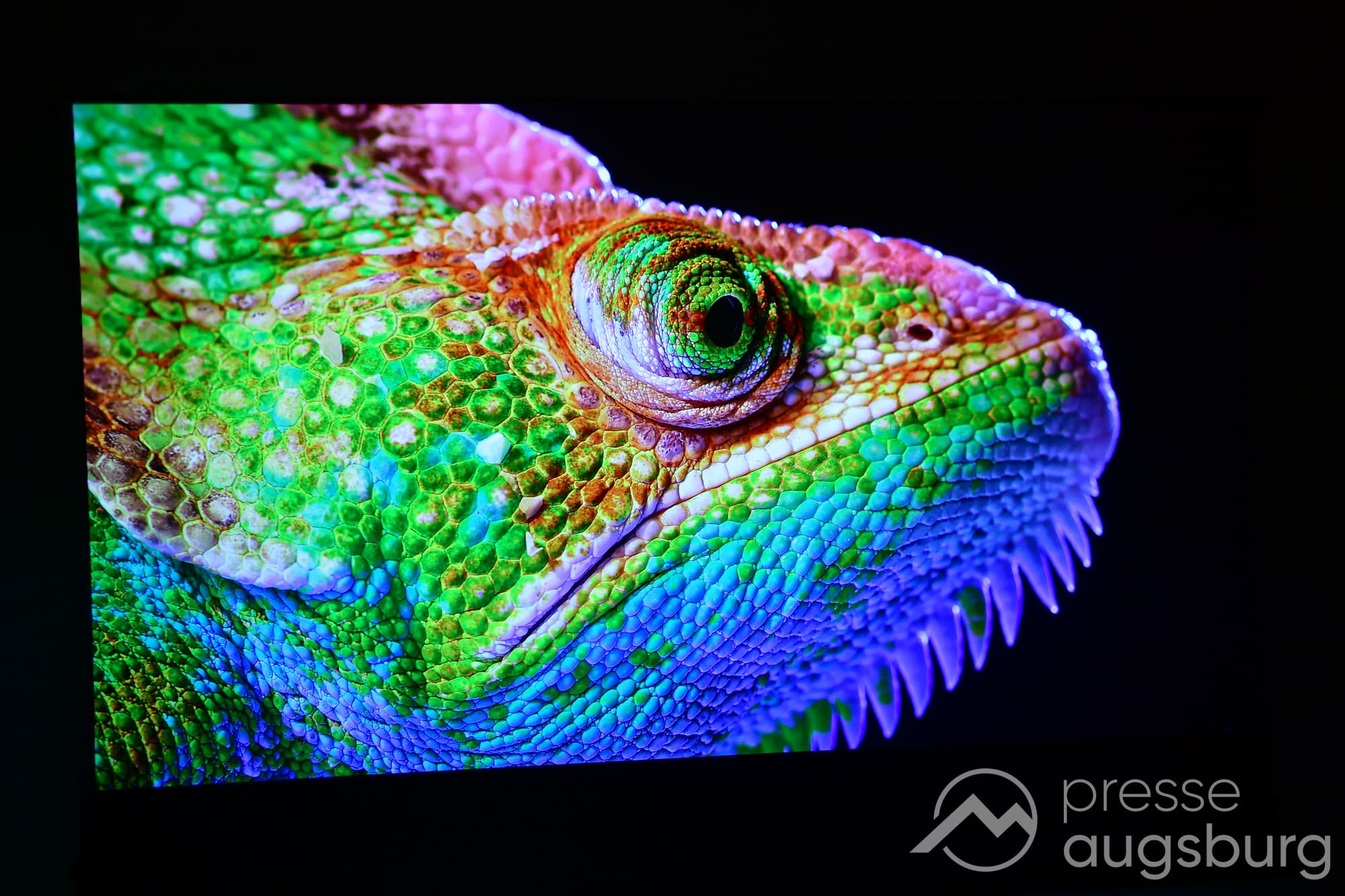 Dabei hat der Hersteller die Anzahl der richtreflektierenden Lamellen auf dem Tuch nochmals deutlich erhöht. Welche enorme Verbesserung das Bild durch die Nutzung der Leinwand erfuhr, können Sie auf den folgenden Bildern sehen. Wir haben dabei die Leinwand teilweise bewusst nur halb ausgefahren, um den Unterschied zwischen einer normalen, weißen Wand und der HomeCinema Plus Leinwand von Celexon zu zeigen. Als Laser-TV kam hier der Hisense PL1 zum Einsatz. Aber auch mit dem Hisense PX1, LG HU715QW sowie LG HU85LS erzielten wir perfekte Ergebnisse.