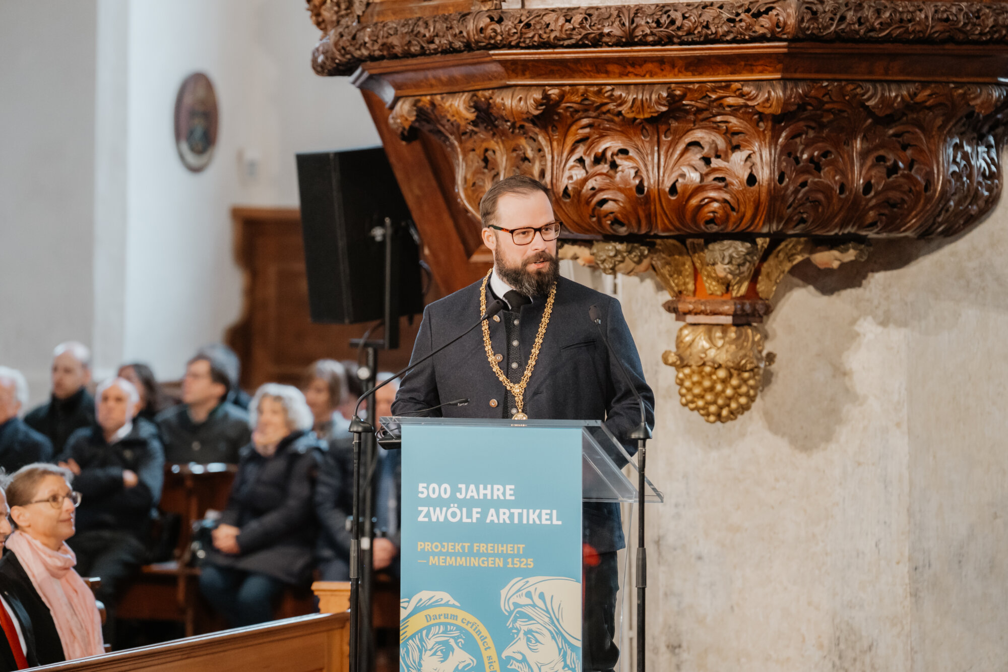 Auch Oberbürgermeister Jan Rothenbacher unterstrich die Bedeutung der historischen Ereignisse: „Wir sind stolz auf dieses kostbare Erbe unserer Stadt, auf die Zwölf Artikel, die in ihrer Botschaft ‚Mir wöllet frei sein‘ bis heute nichts an Aktualität verloren haben. Freiheit und Gerechtigkeit sind immer noch nicht selbstverständlich.“