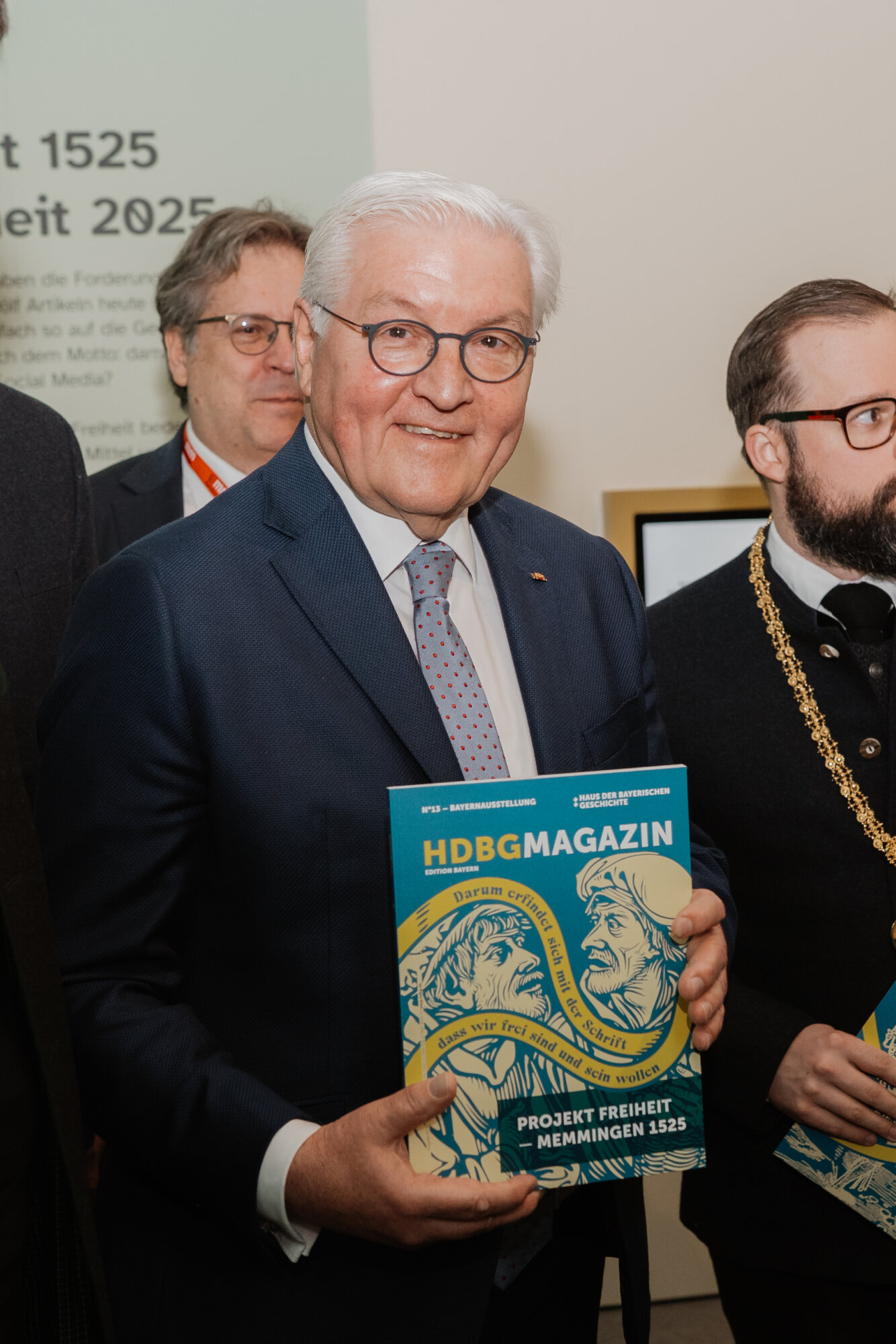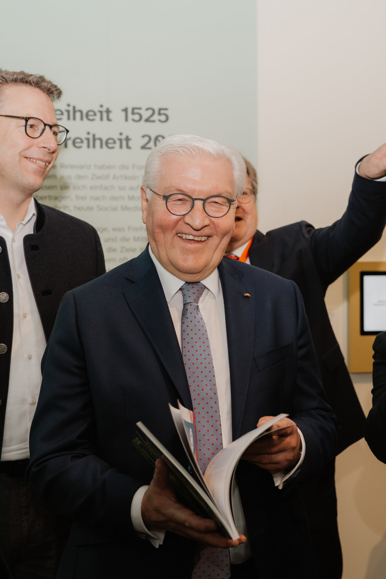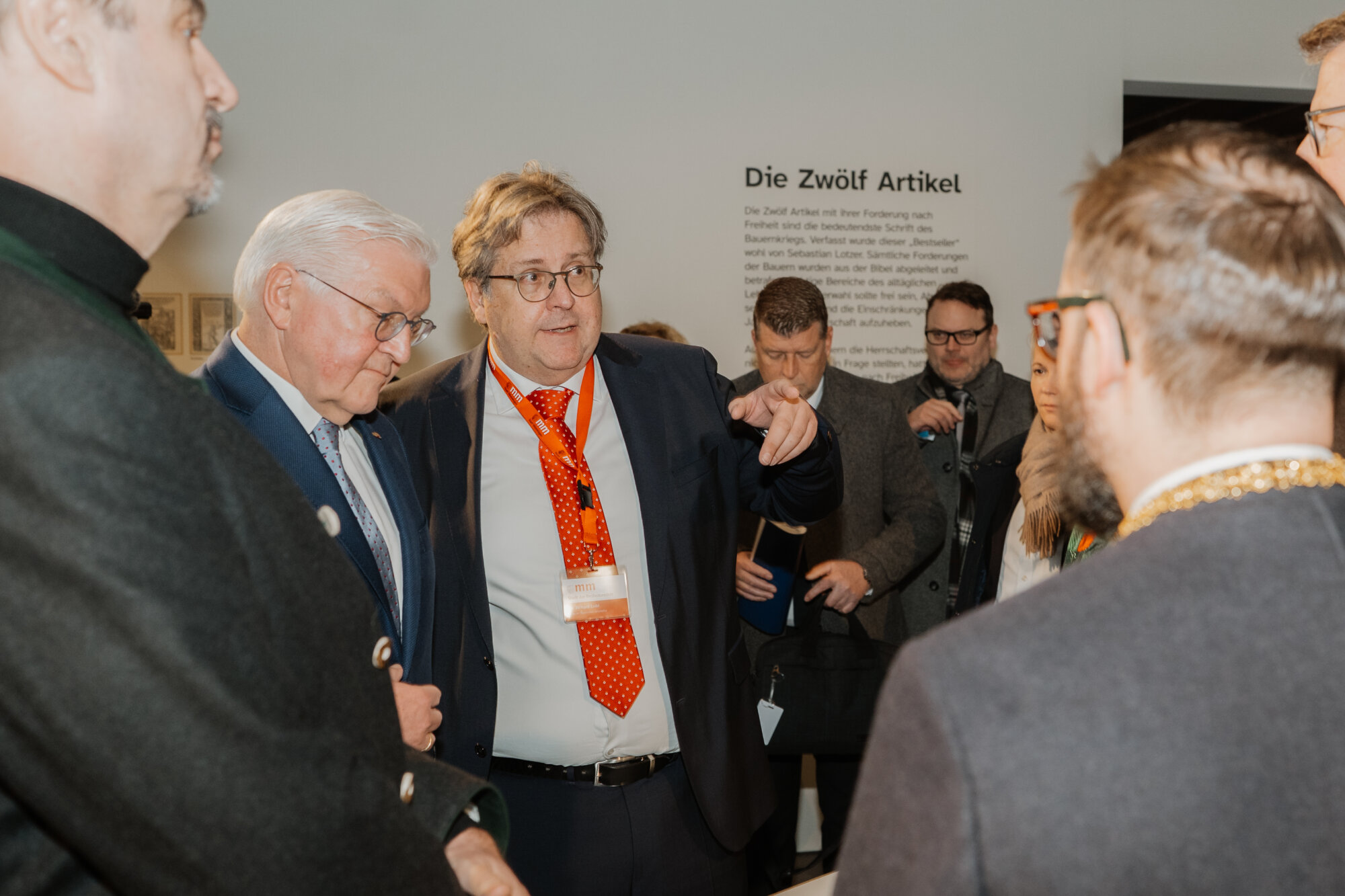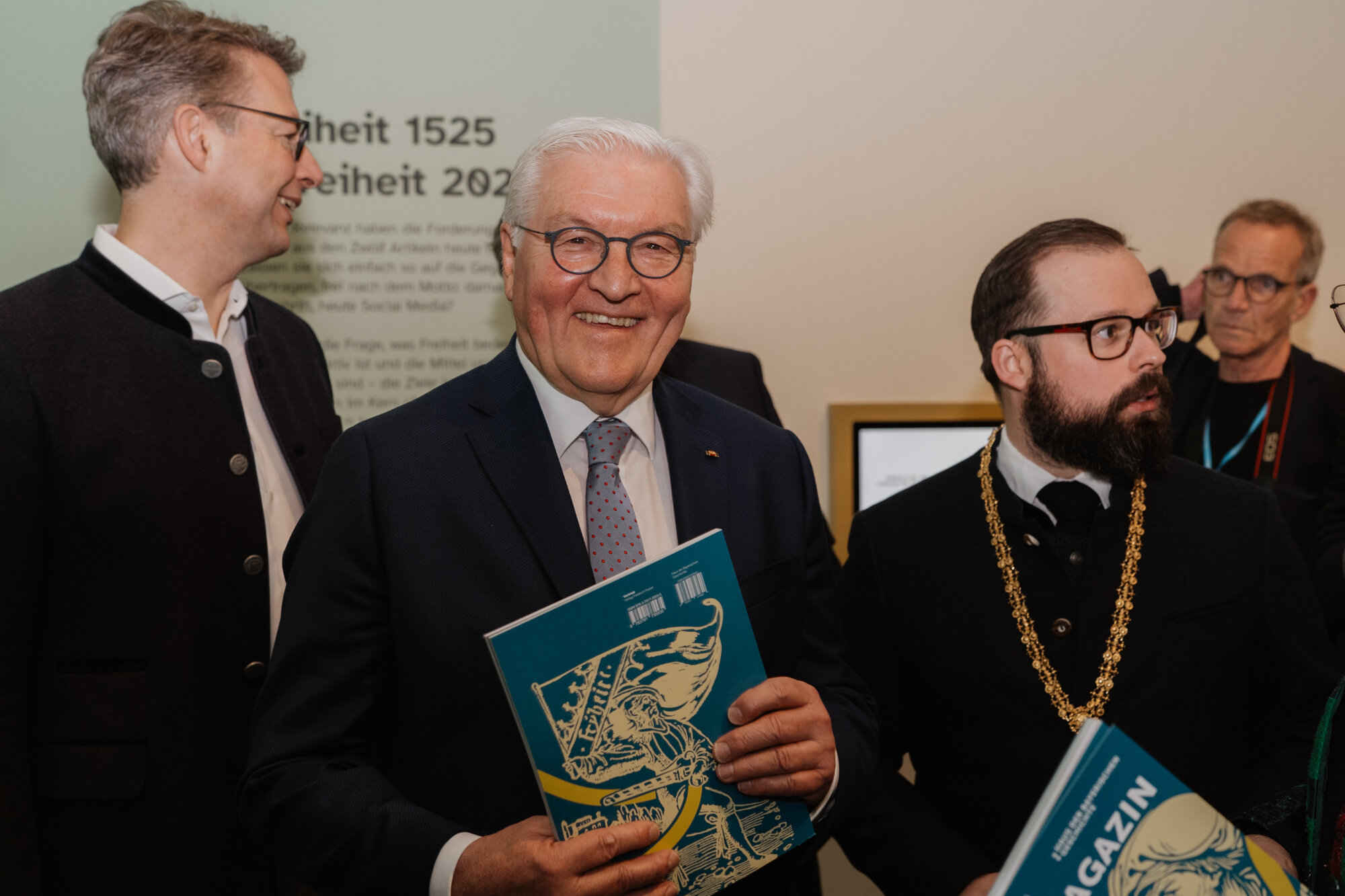Vor dem Festakt besuchten Bundespräsident Steinmeier und Ministerpräsident Söder die Bayernausstellung „Projekt Freiheit – Memmingen 1525“. Dr. Richard Loibl, Direktor des Hauses der Bayerischen Geschichte, hob hervor: „Was bedeutet persönliche Freiheit, wo hört sie auf? Diese Frage ist heute nicht weniger aktuell als vor 500 Jahren.“ Besonders beeindruckt zeigten sich die Gäste von einer Originalausgabe der Zwölf Artikel.