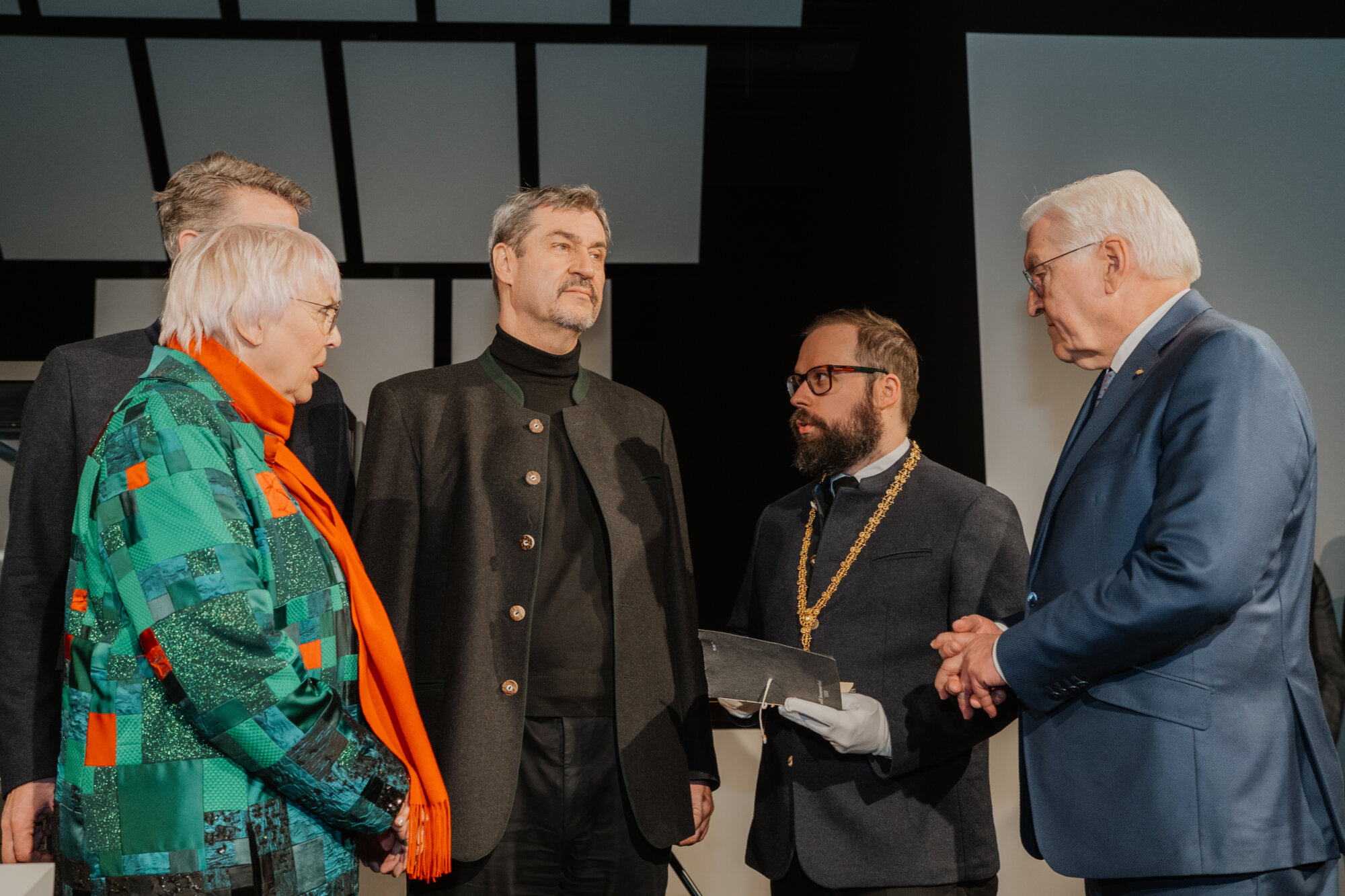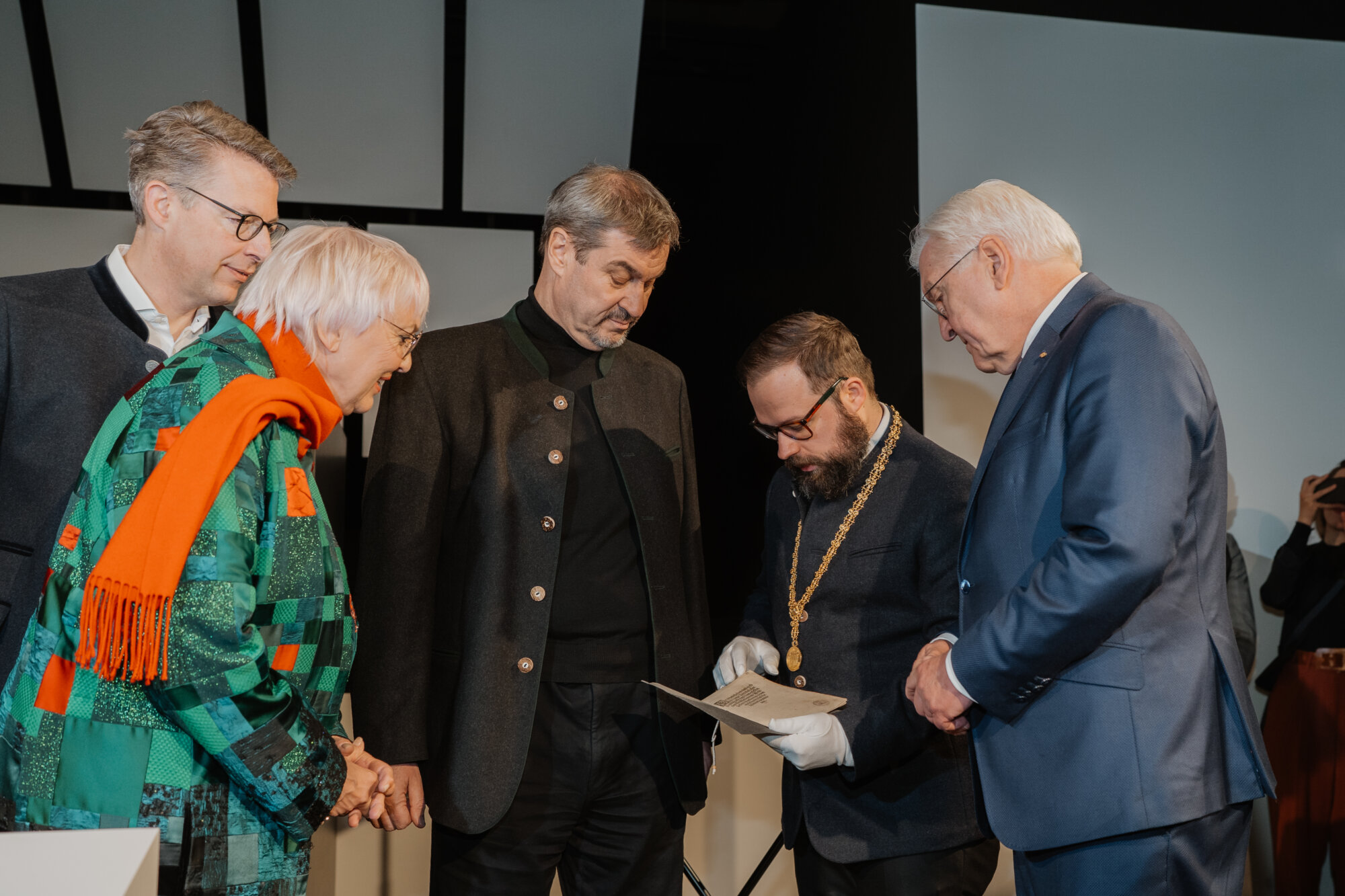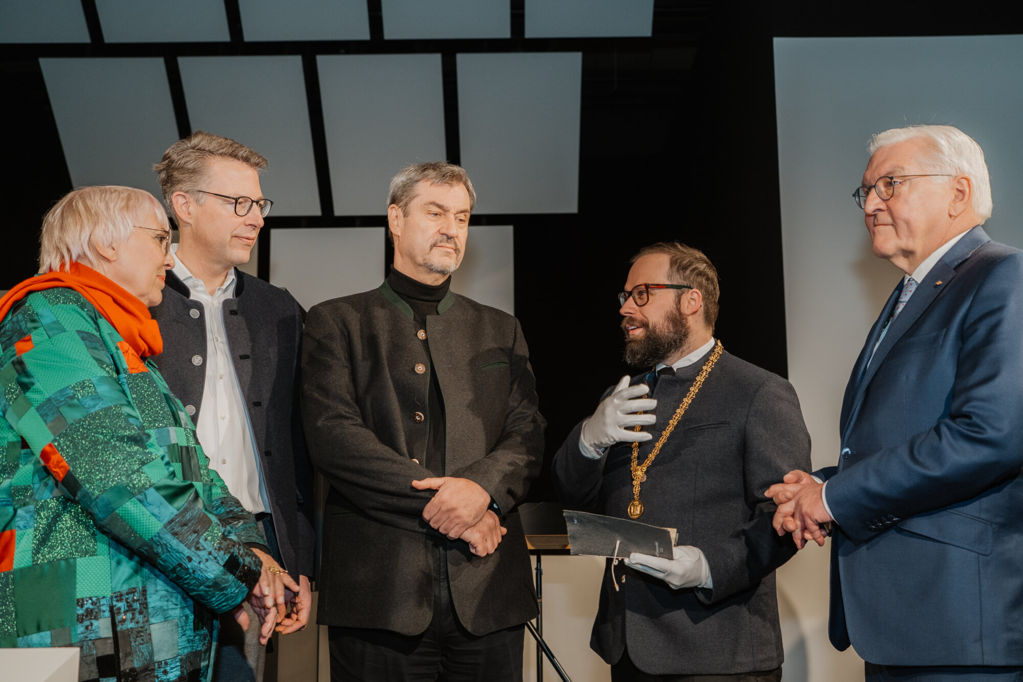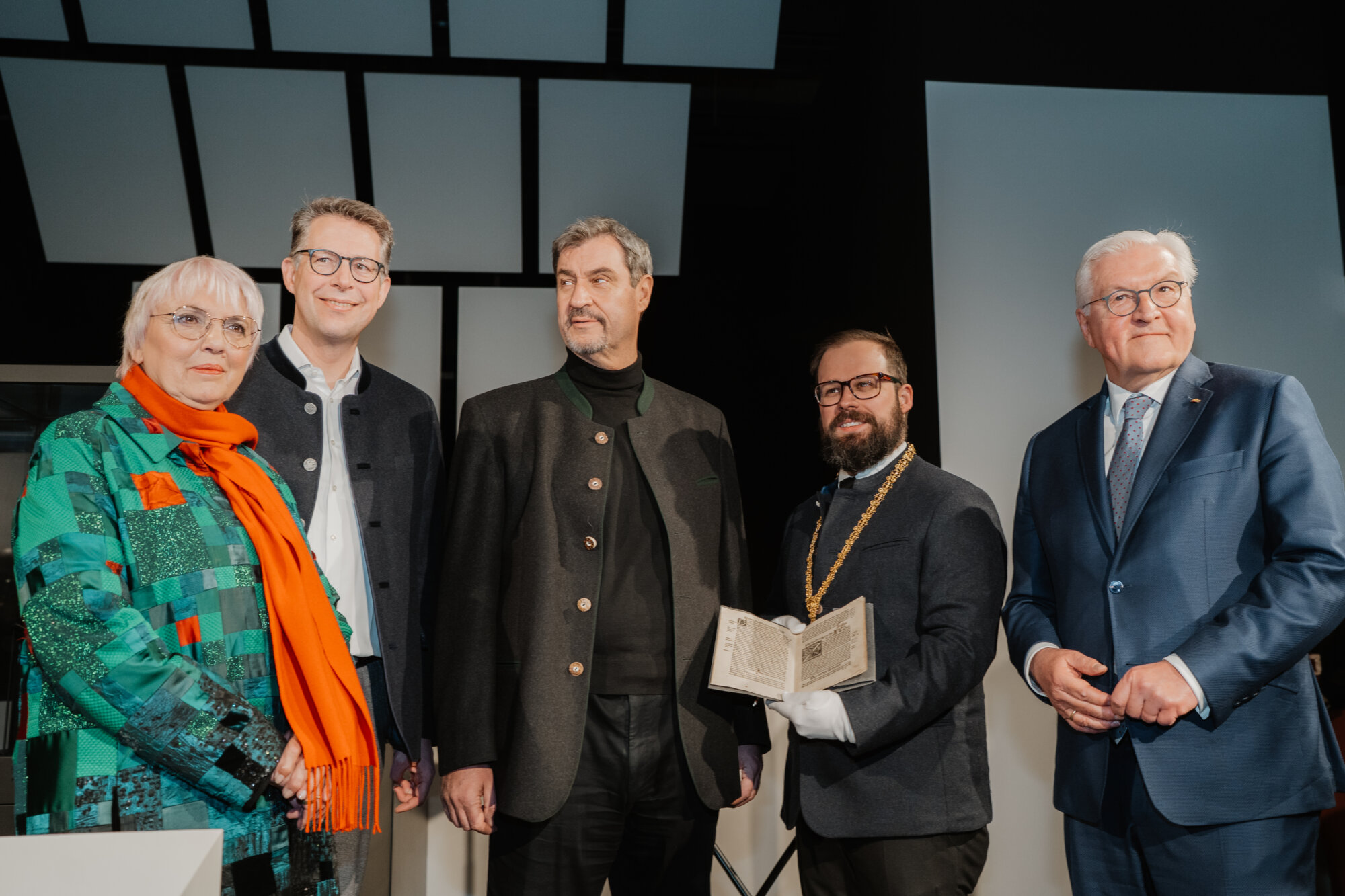 Vor dem Festakt besuchten Bundespräsident Steinmeier und Ministerpräsident Söder die Bayernausstellung „Projekt Freiheit – Memmingen 1525“. Dr. Richard Loibl, Direktor des Hauses der Bayerischen Geschichte, hob hervor: „Was bedeutet persönliche Freiheit, wo hört sie auf? Diese Frage ist heute nicht weniger aktuell als vor 500 Jahren.“ Besonders beeindruckt zeigten sich die Gäste von einer Originalausgabe der Zwölf Artikel.