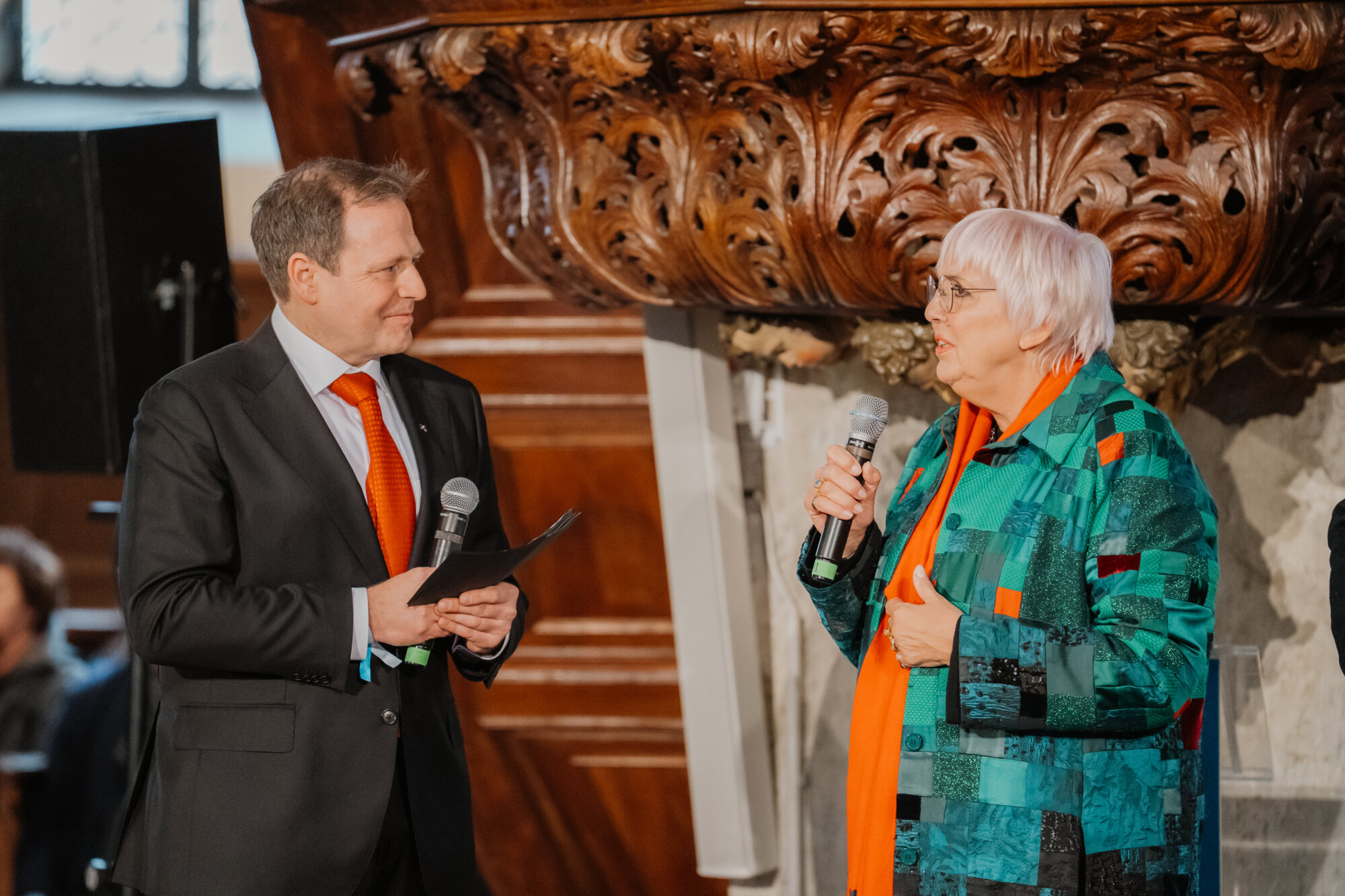 Moderiert wurde das Gespräch von Dekanin Claudia Schieder und Dekan Christoph Schieder. Sie stellten heraus: „1525 hätten die Bauern und ihre Mitstreiter nie zu träumen gewagt, dass 500 Jahre später Staatsoberhäupter ihre Forderungen als Meilensteine der Demokratiegeschichte würdigen.“