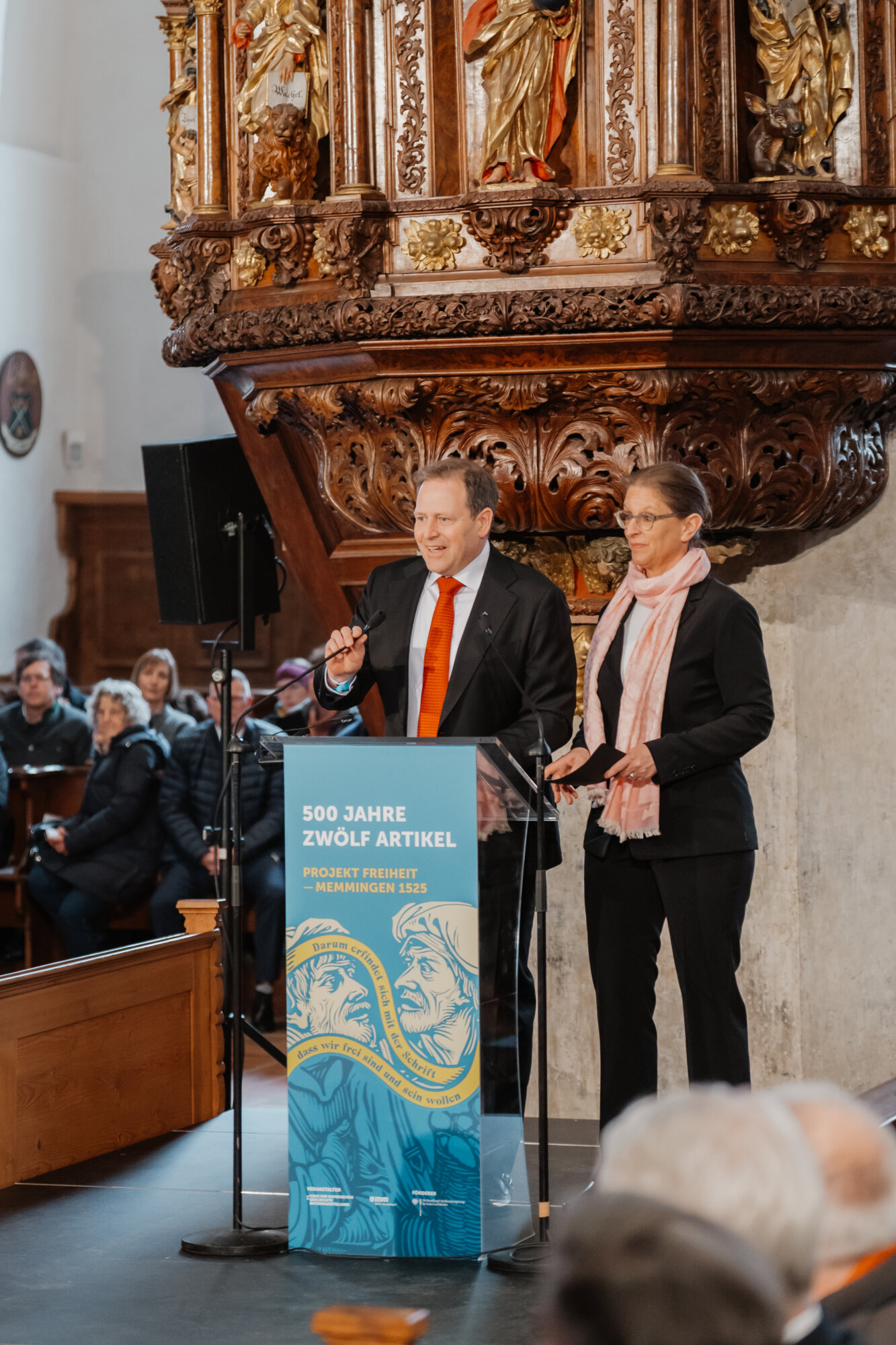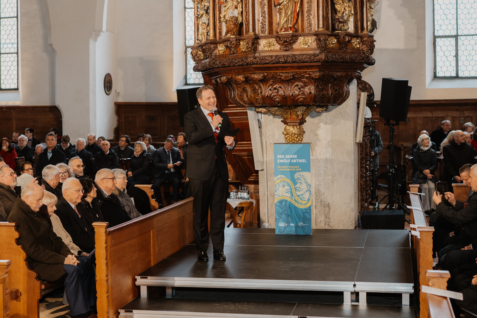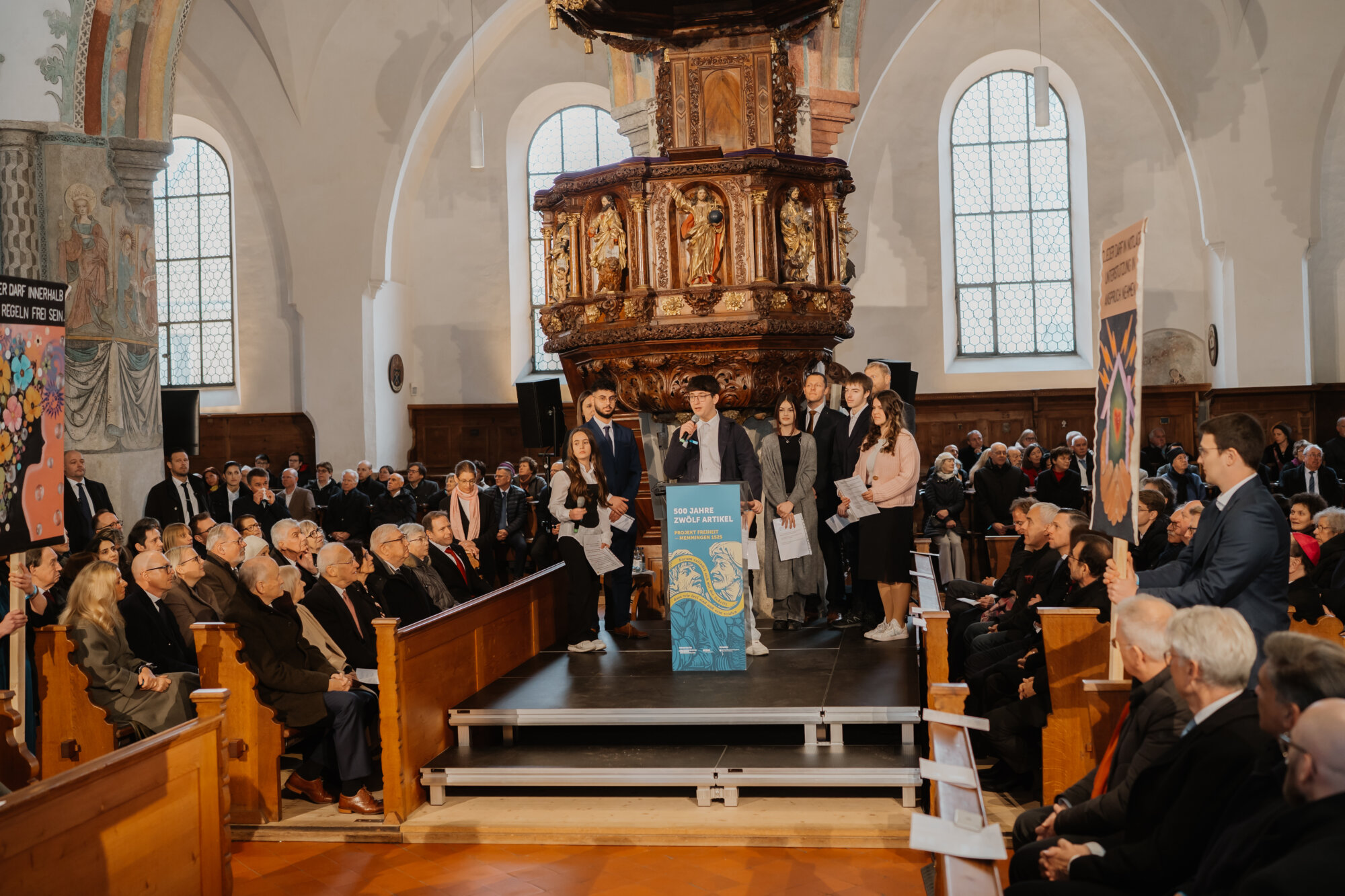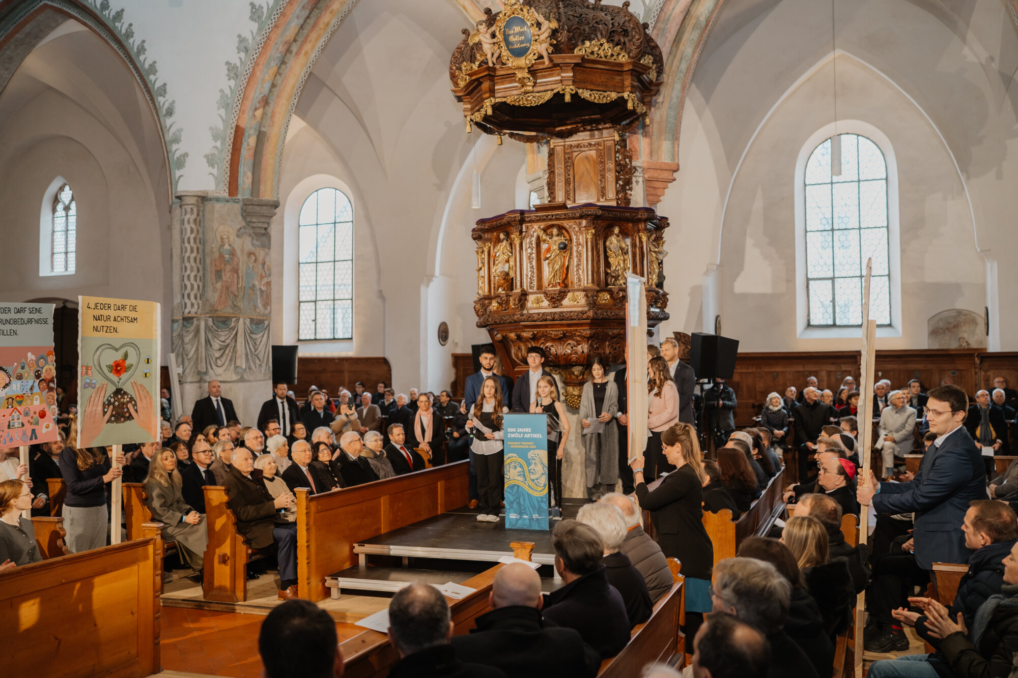 Mit einem eindrucksvollen Festakt in der Kirche St. Martin in Memmingen wurde das Gedenkjahr „500 Jahre Zwölf Artikel“ eröffnet. Bundespräsident Frank-Walter Steinmeier und Bayerns Ministerpräsident Dr. Markus Söder ehrten gemeinsam mit rund 1.000 geladenen Gästen die historische Bedeutung der Zwölf Artikel, die als eine der frühesten Forderungen nach Freiheitsrechten in Europa gelten. Weitere 1.000 Menschen verfolgten die Veranstaltung über Livestreams in den sozialen Medien.
