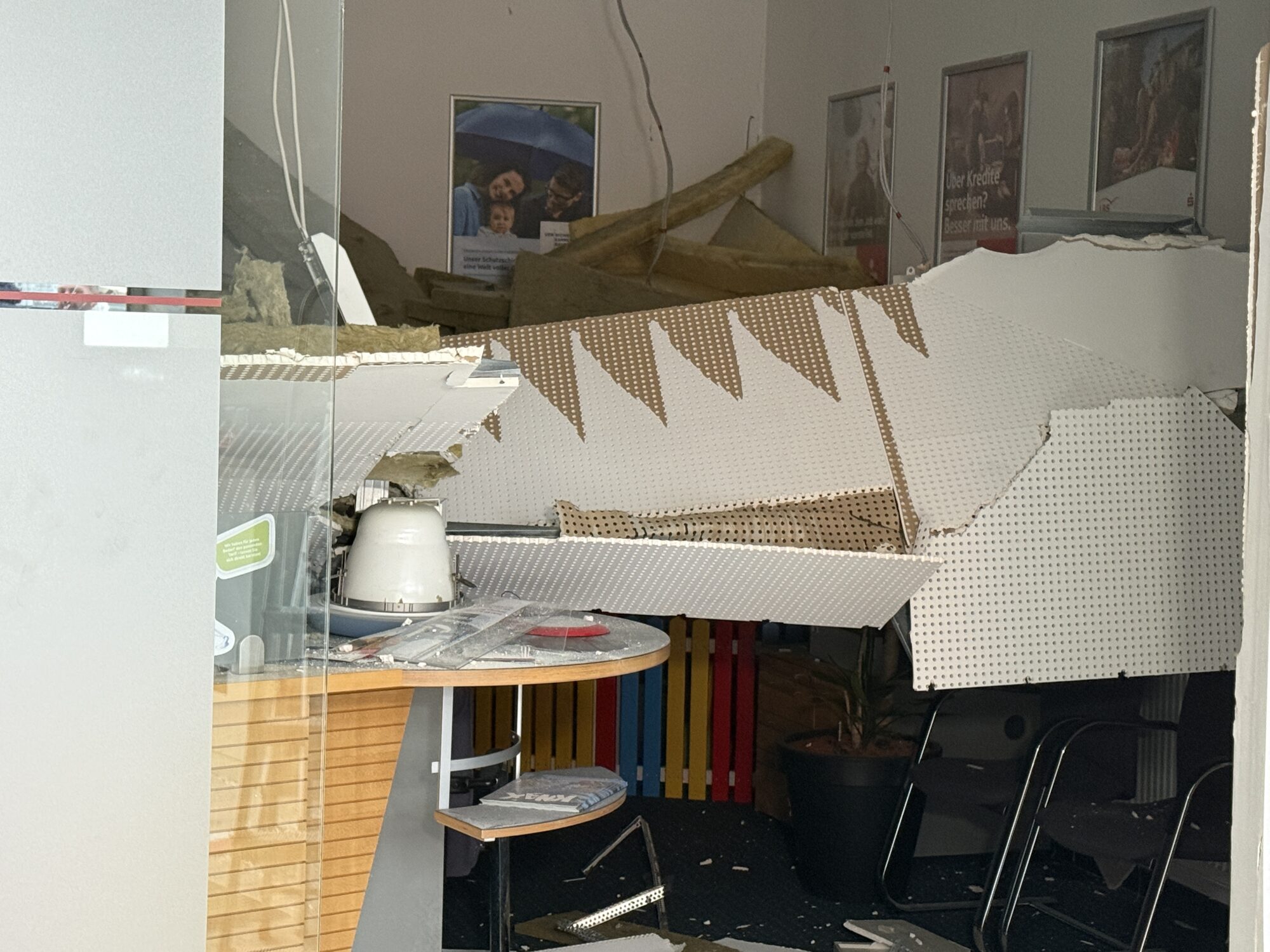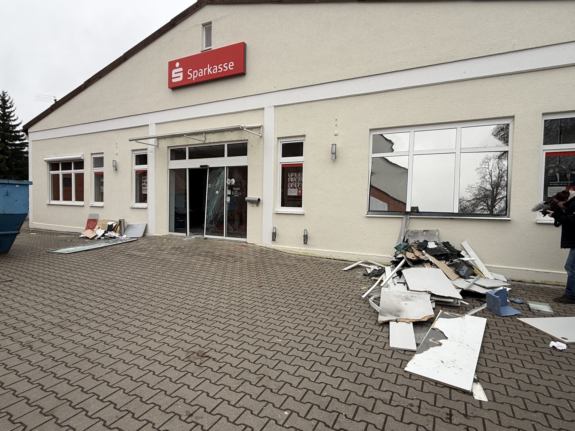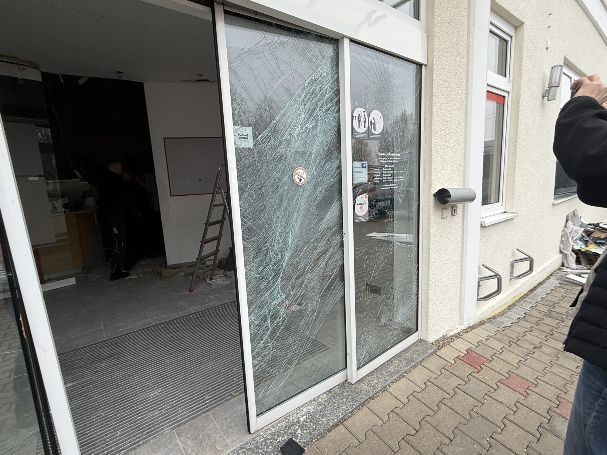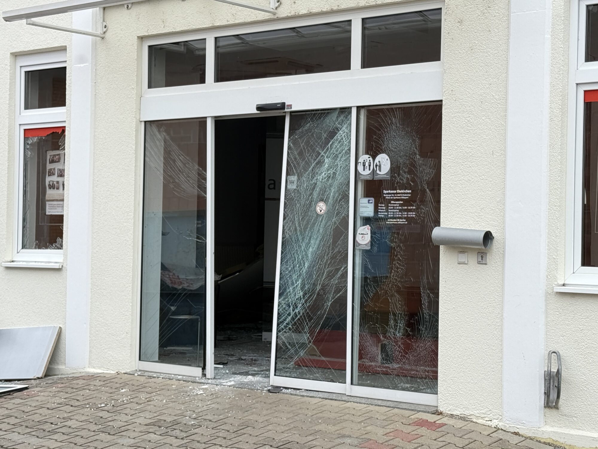 Ein lauter Knall riss Anwohner aus dem Schlaf, die umgehend die Polizei alarmierten. Vier männliche Täter brachten Sprengstoff an dem Geldausgabeautomaten an und lösten die Explosion aus. Die Auswirkungen waren massiv: Die Filiale wurde erheblich beschädigt, die komplette abgehängte Decke kam herunter, zahlreiche Scheiben gingen zu Bruch und der Automat wurde großflächig zerstört.