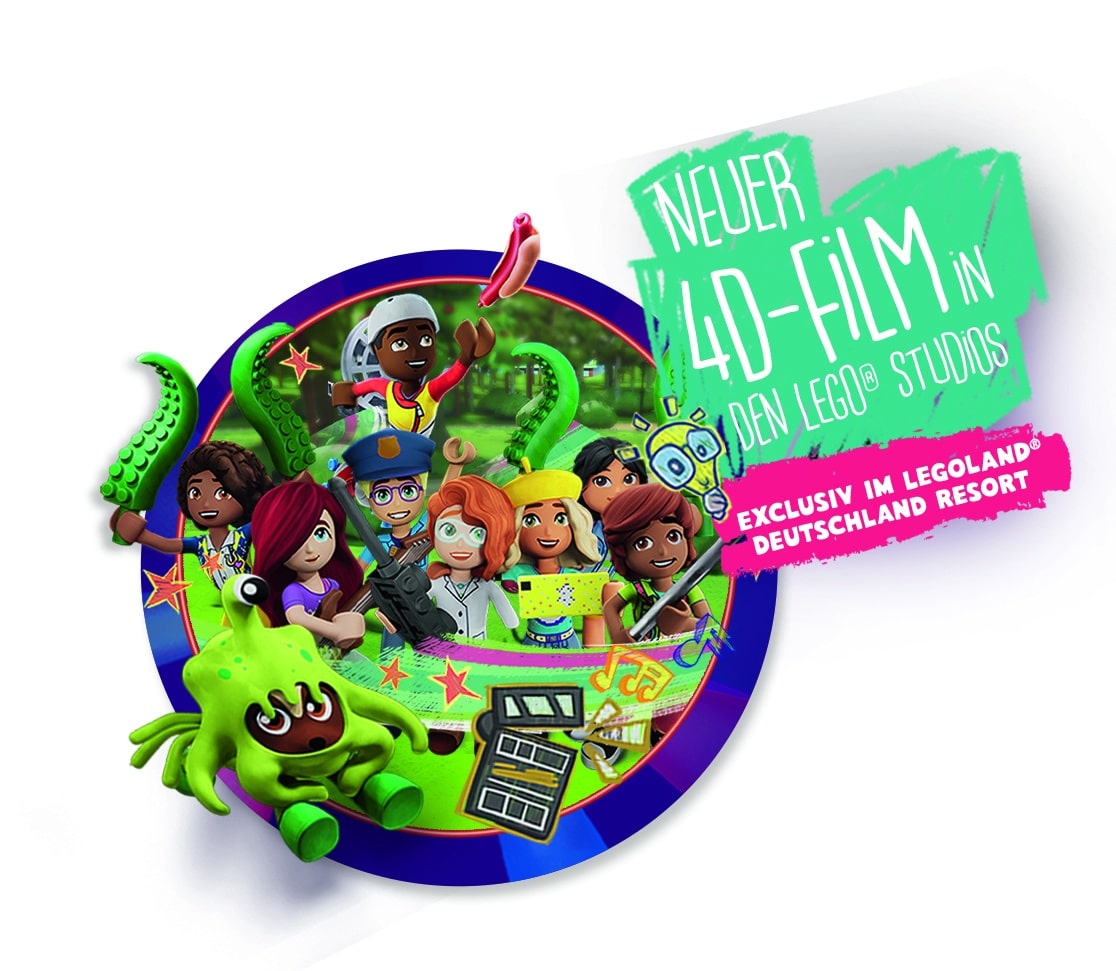 Neu 2024: der weltweit erste LEGO Friends 4D-Film „Alien Invasion“ in den LEGO Studios sowie die neue Themenunterkunft LEGOLAND Waldabenteuer Lodge™ im Feriendorf. Mehr unter www.LEGOLAND.de. Nehmen Sie an unserem Abenteuer teil und erleben Sie die faszinierenden Geschichten der LEGO Friends in einem immersiven 4D-Erlebnis. Entdecken Sie die neuen Attraktionen und genießen Sie unvergessliche Momente mit Ihrer Familie und Freunden in der aufregenden Umgebung des LEGOLAND Feriendorfs. Es wartet jede Menge Spaß und Action auf Sie!