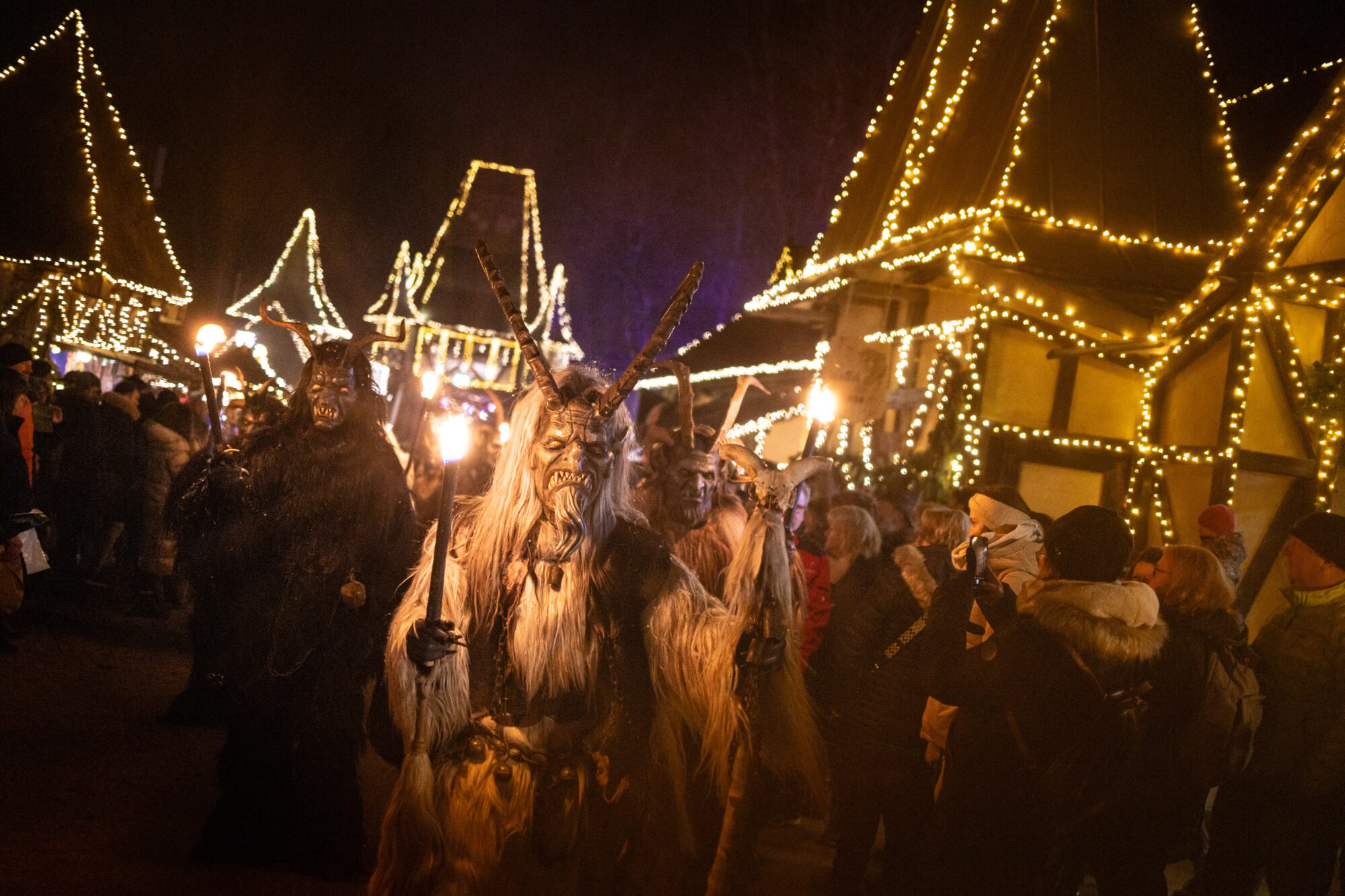 •Jeden Samstag besuchen die Perchten den Weihnachtsmarkt auf Schloss Kaltenberg (gegen 19 Uhr).