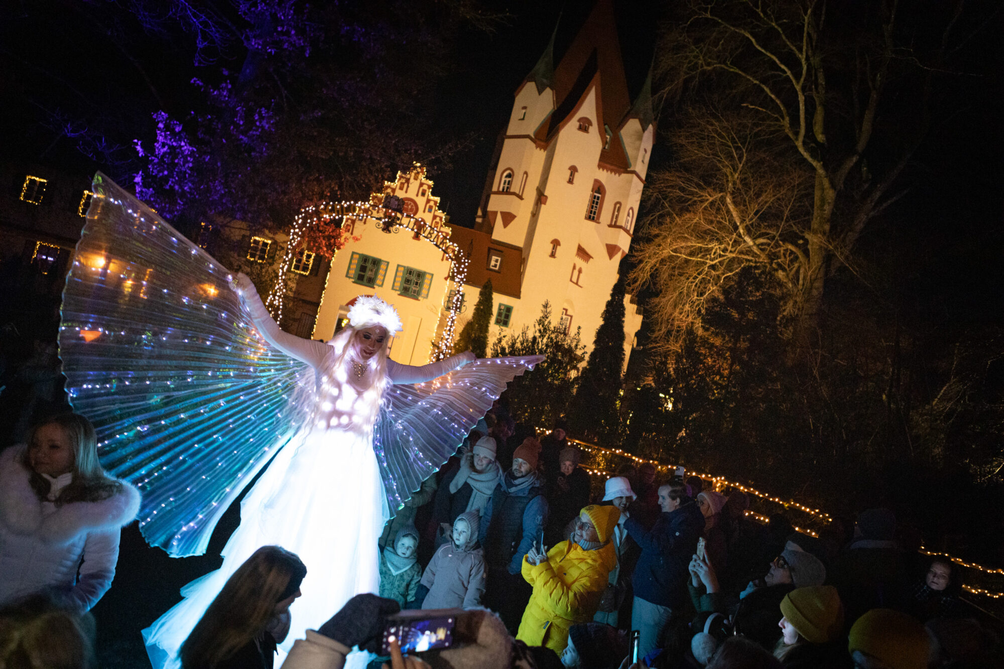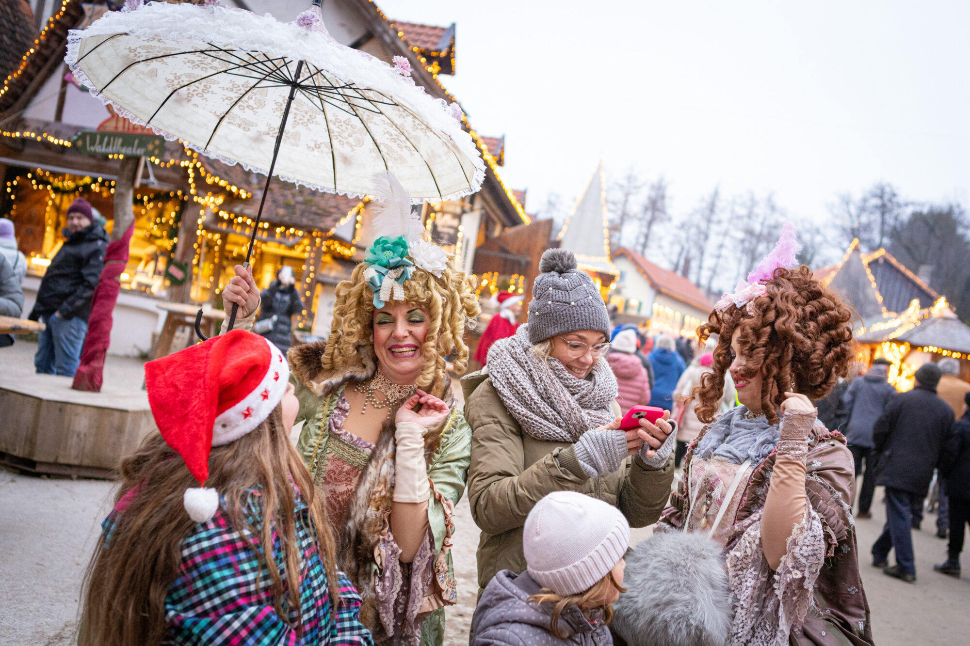 Das Herz klopft. Mal vor Freude, wenn die Schneeflocken langsam vom Himmel rieseln, die Frau Holle vom großen Tor herab aus ihren Betten schüttelt. Mal vor Aufregung, wenn plötzlich das echte Rotkäppchen vor einem steht. Neben den märchenhaften Überraschungen, die einem auf Schloss Kaltenberg auf Schritt und Tritt begegnen, sorgt auch das einmalige Ambiente immer wieder für staunende Gesichter. Nicht nur die vielen Marktstände, sondern das gesamte Gelände erstrahlt im Schein tausender Lichter. Überall im Areal laden Tische zum Verweilen ein, um zu essen, zu ratschen, einen Punsch oder Glühwein zu genießen… Oder um das fantastische Ambiente mit Walk Acts und Künstlern einfach auf sich wirken zu lassen.
