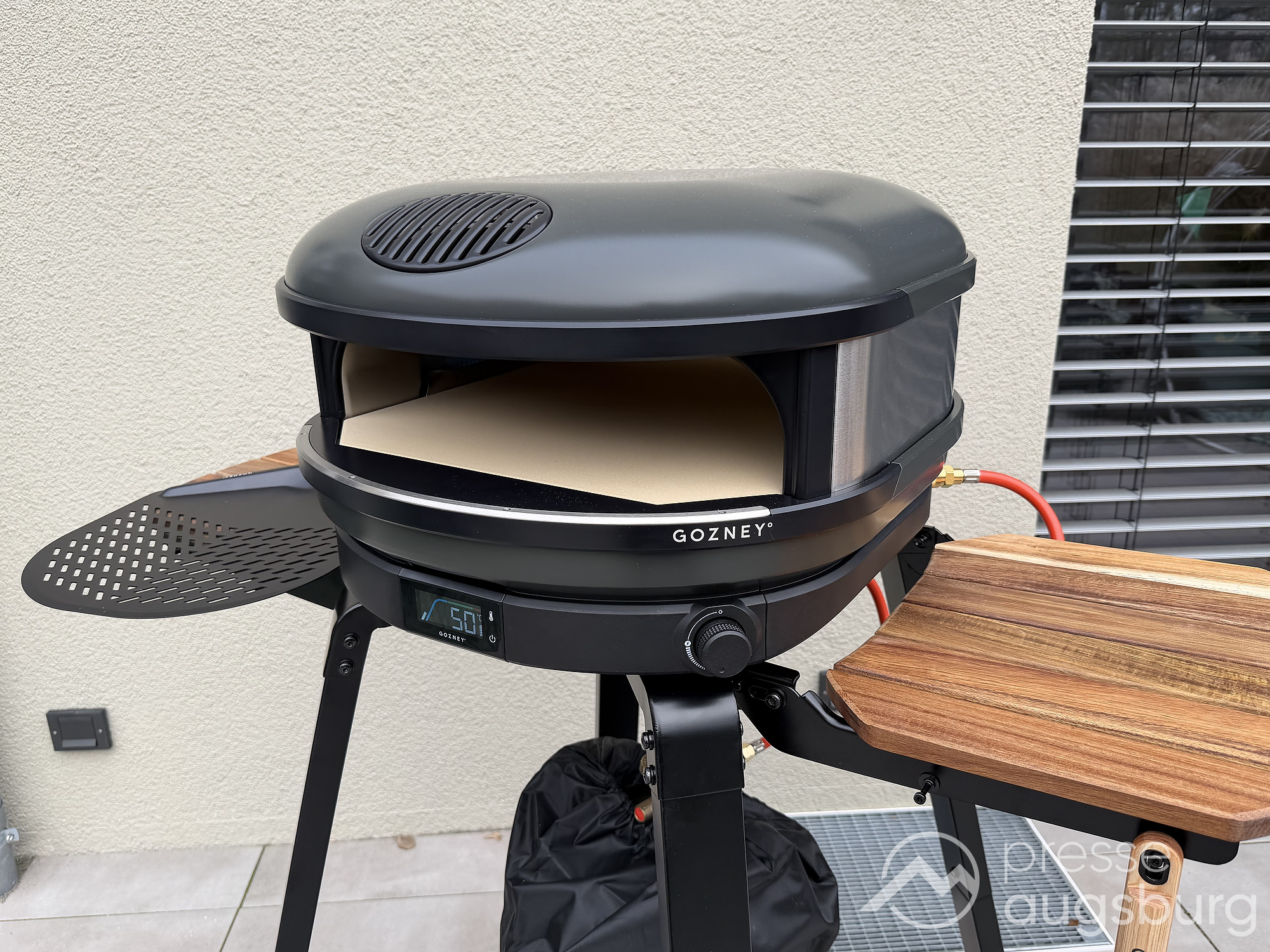 Für zusätzlichen Komfort bietet Gozney einen passenden Stand an. Er bringt den Ofen auf eine ergonomische Arbeitshöhe, bietet Stauraum für Zubehör und schafft Platz für die Gasflasche – ein Detail, das sich im täglichen Einsatz als äußerst praktisch erweist.