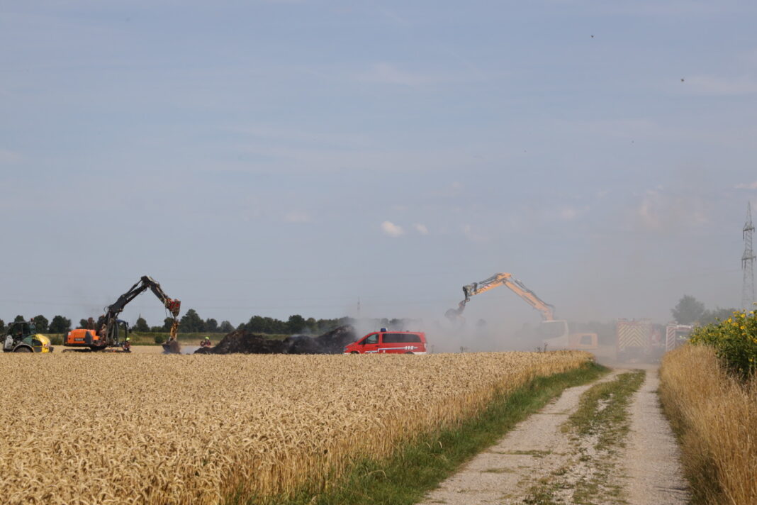 Die Freiwillige Feuerwehr Bobingen rückte mit mehreren Fahrzeugen an und war bis in die späten Abendstunden im Einsatz. Zwei Bagger wurden eingesetzt, um die Heuballen auseinanderzuziehen und verborgene Glutnester abzulöschen.