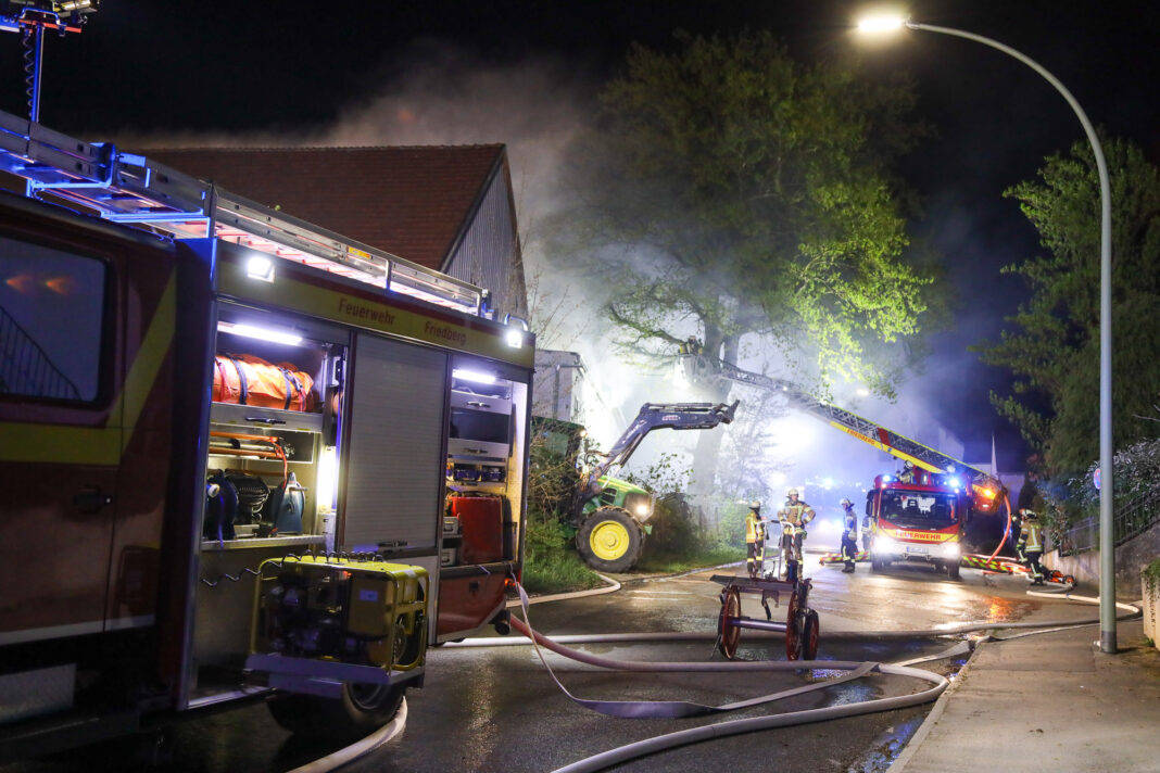 Noch während der Aufbauarbeiten für die Wasserversorgung kam es zu einer plötzlichen Durchzündung im Inneren des Gebäudes. Umgehend wurden Atemschutztrupps im Innen- und Außenangriff eingesetzt. Insgesamt kamen fünf C-Rohre sowie die Drehleiter der Feuerwehr Friedberg zum Einsatz. Nur durch das rasche und koordinierte Vorgehen der Einsatzkräfte konnte ein Übergreifen der Flammen auf angrenzende Gebäude verhindert werden.