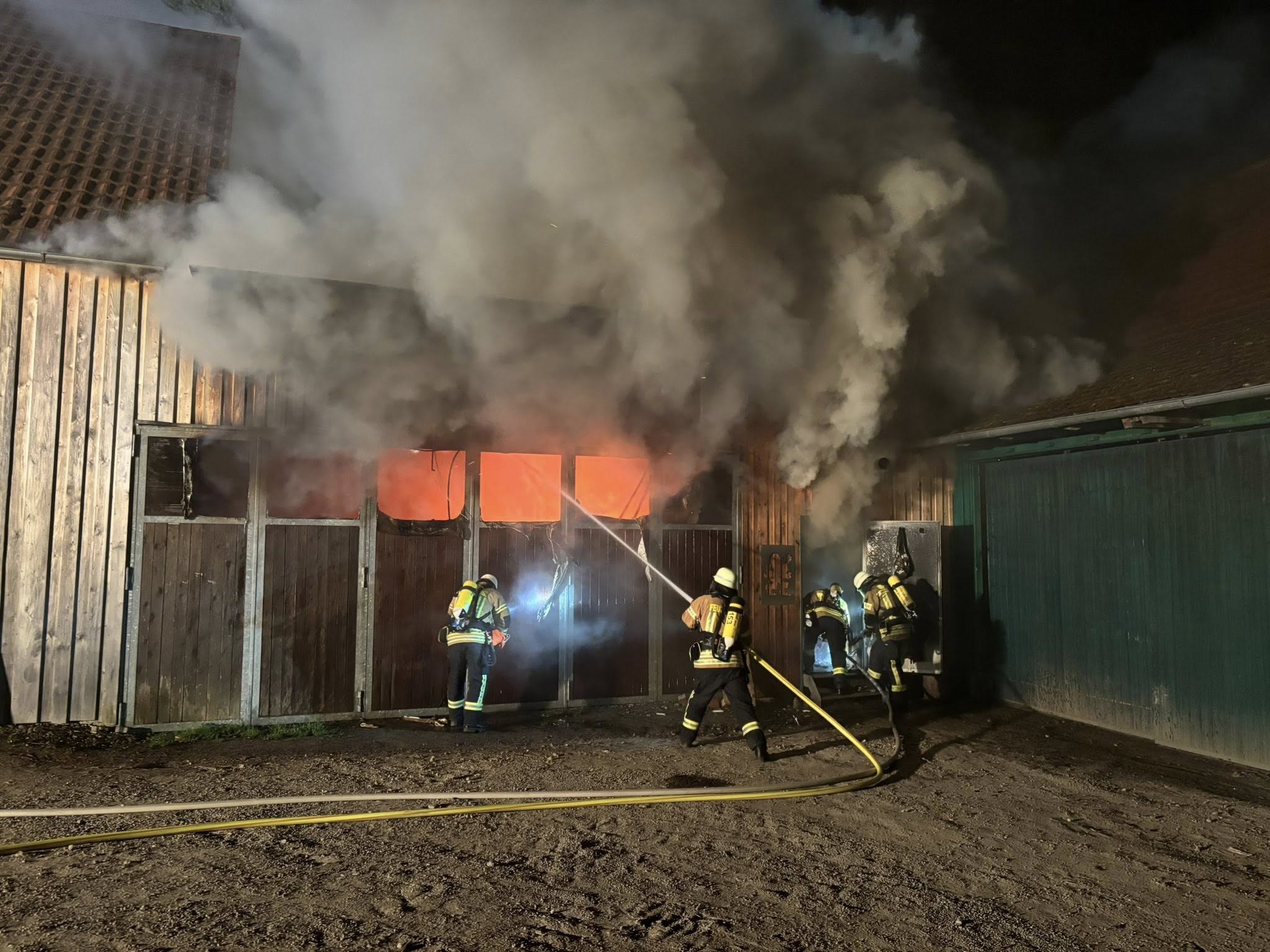 In Flammen stand ein landwirtschaftliches Gebäude, das mit einer Werkstatt ausgestattet war. Neben der Feuerwehr Wulfertshausen rückten die Wehren aus Haberskirch-Unterzell, Friedberg, Derching, Paar-Harthausen sowie Kräfte der Unterstützungsgruppe Örtliche Einsatzleitung (UG-ÖEL) und der Kreisbrandinspektion aus. Insgesamt waren über 120 Einsatzkräfte vor Ort.