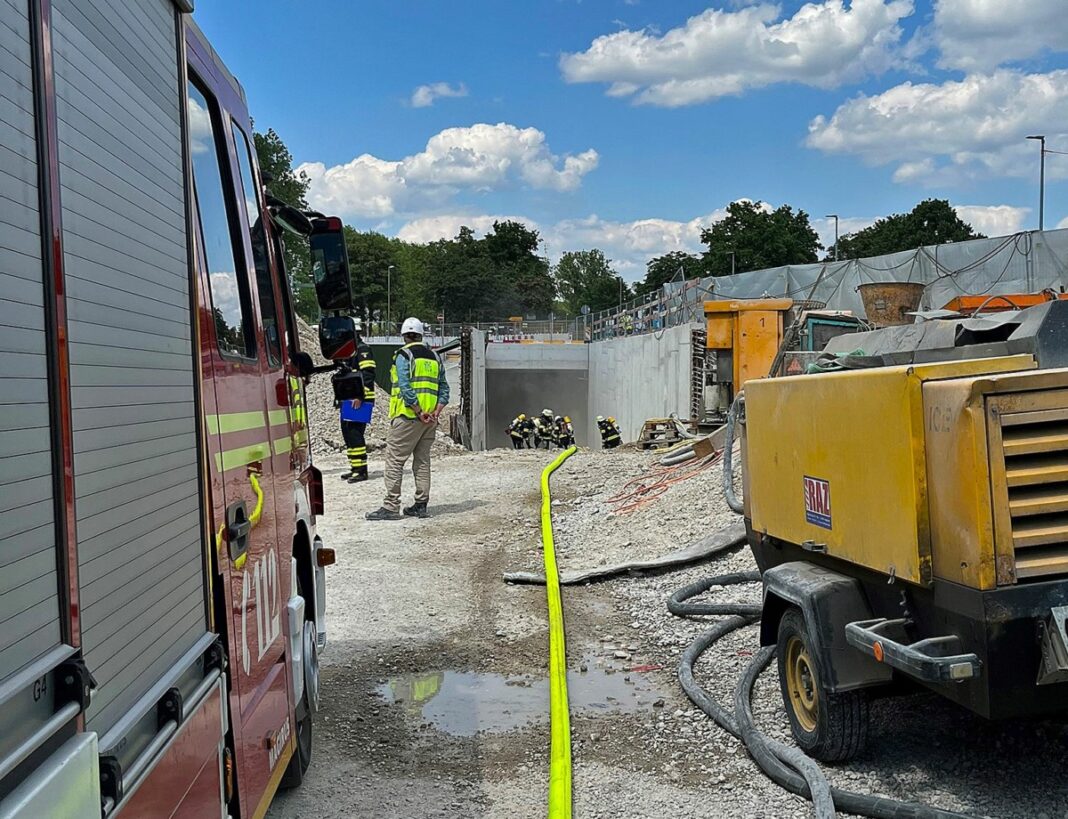 Zuerst ging die Meldung einer Rauchentwicklung im Keller einer Baustelle bei der Leitstelle München ein. Daraufhin wurde ein Löschzug zur Einsatzadresse disponiert. Beim Eintreffen der Einsatzkräfte war von außerhalb der Baustelle weder Rauch noch Feuer sichtbar. Durch Baustellenpersonal erhielt der Einsatzleiter die Information, dass es sich um Lagerware im Keller handle, der brenne.