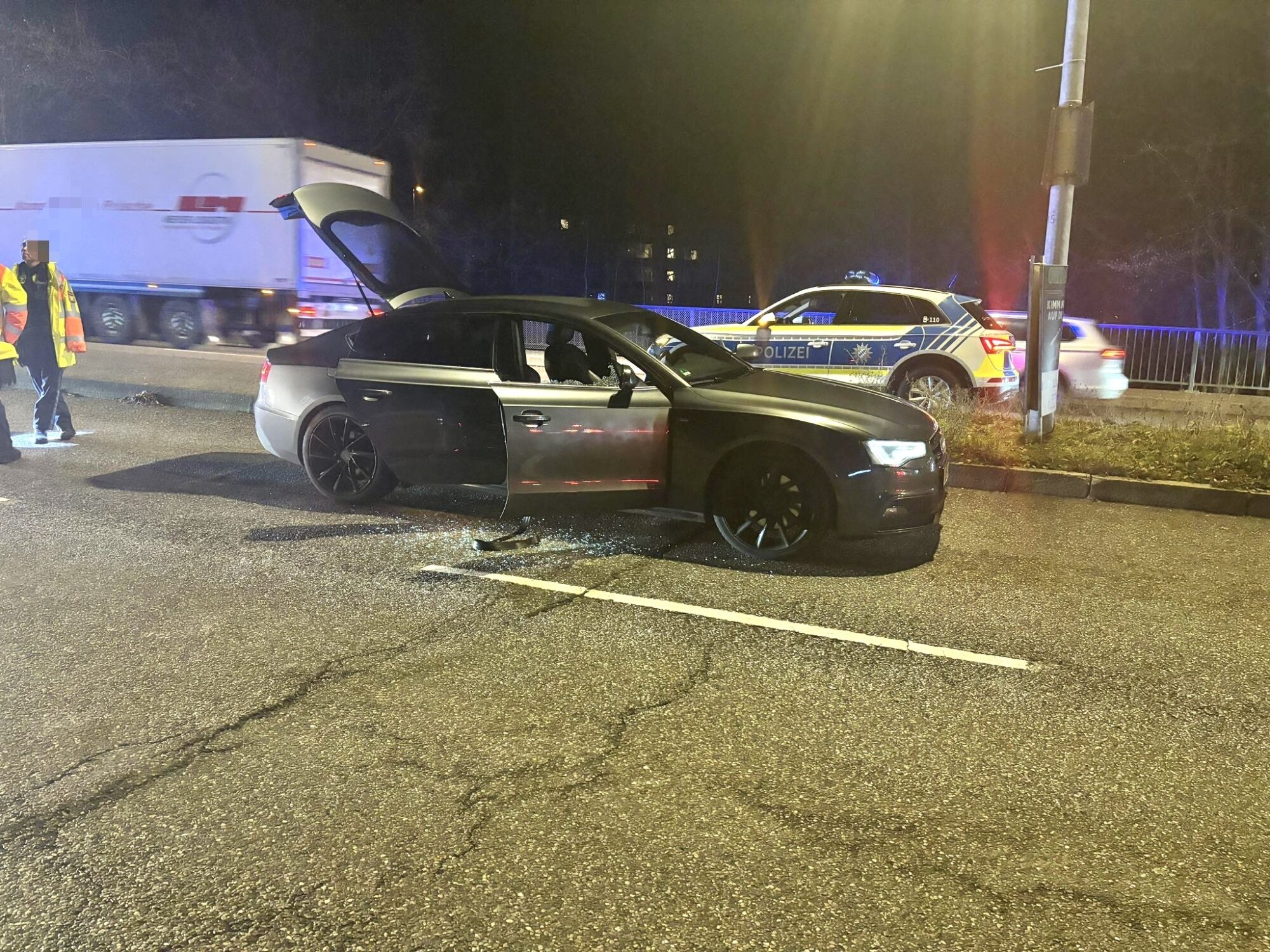 „Es war sehr viel Polizei vor Ort und sofort erfolgte der Zugriff“, berichtet eine Augenzeugin. Bei der Aktion wurden die Scheiben des Fahrzeugs zerstört. Die Fahrbahn war während des Einsatzes blockiert, was zu einem Rückstau bis zur A7 führte.
