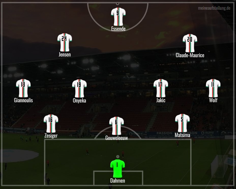 Dahmen – Matsima, Gouweleeuw, Zesiger – Wolf, Onyeka, Jakic, Giannoulis – Jensen, Claude-Maurice – Essende