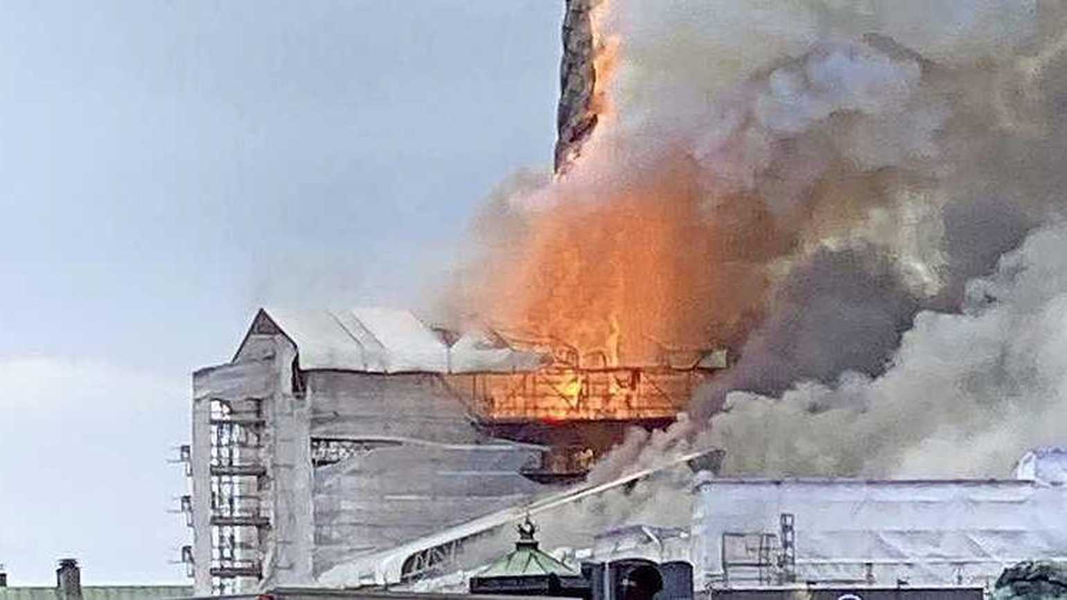 Am Dienstagmorgen brach ein verheerendes Feuer in der historischen Börse von Kopenhagen aus, das zum Einsturz der Turmspitze des Gebäudes führte.