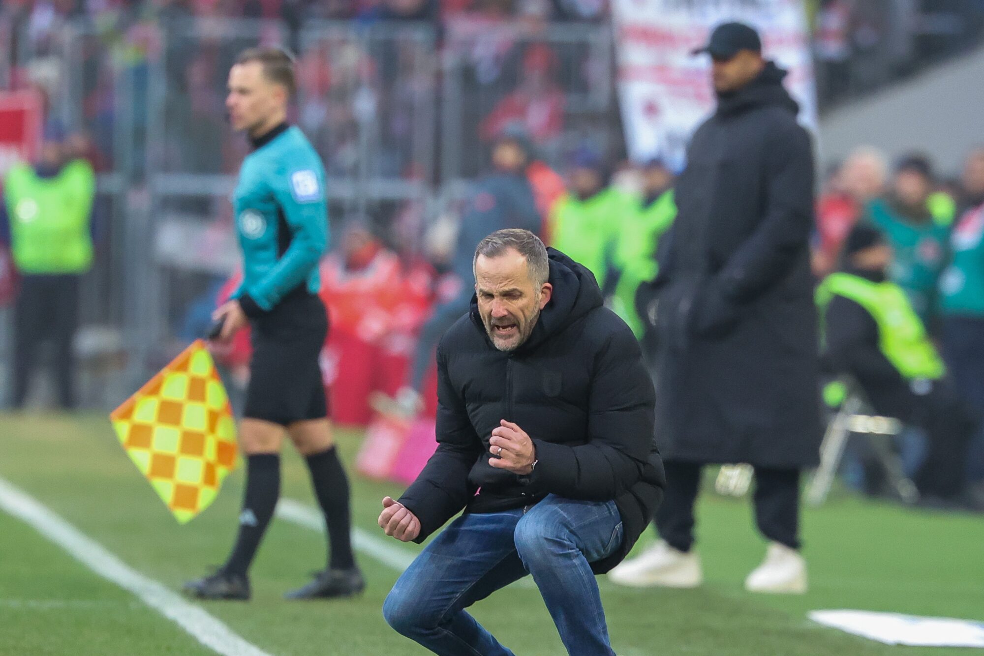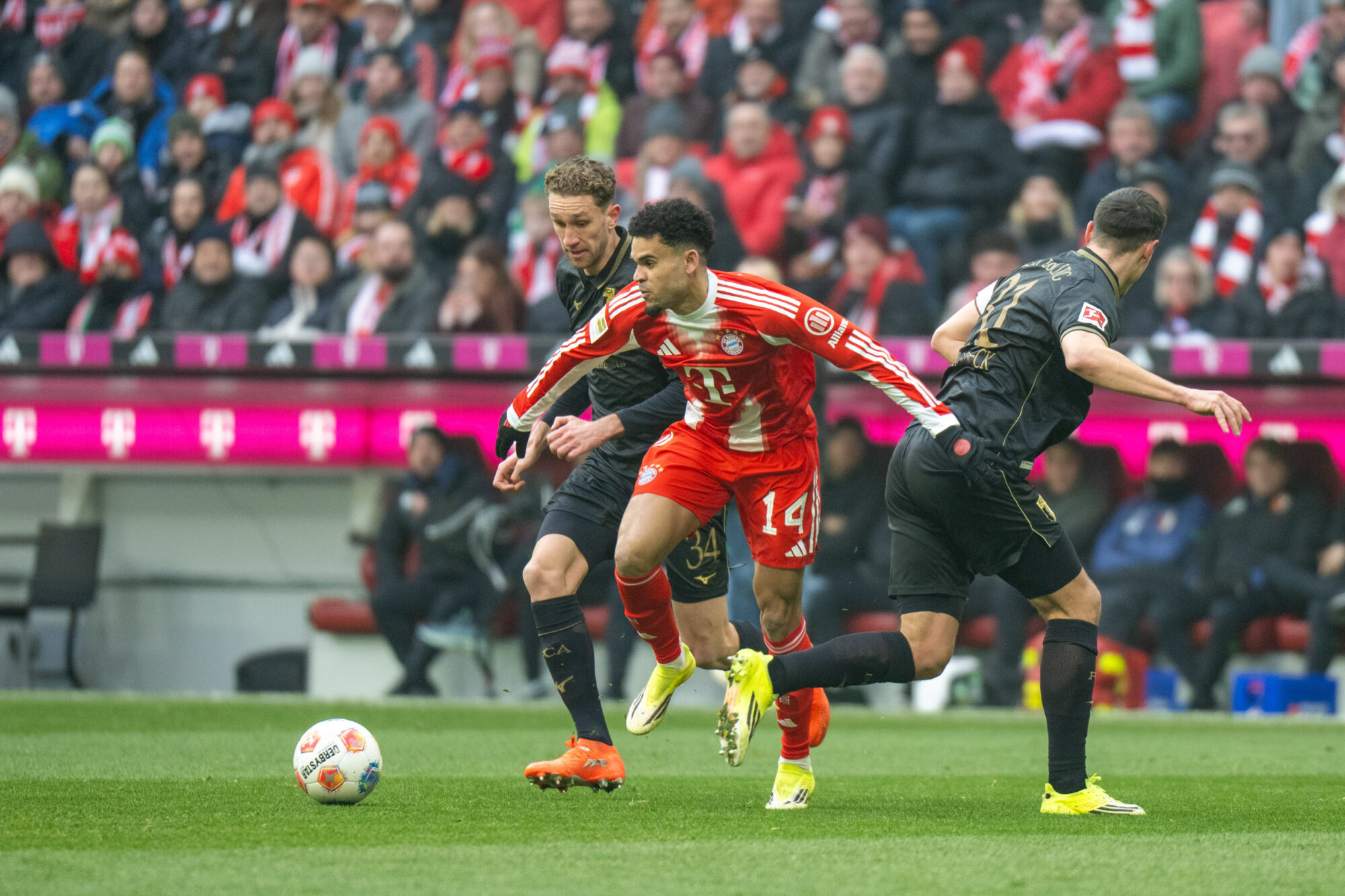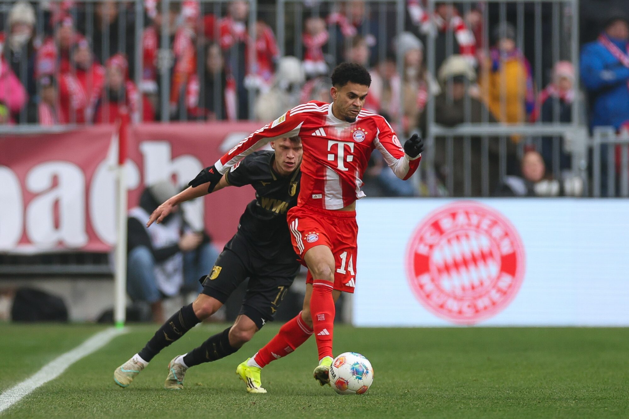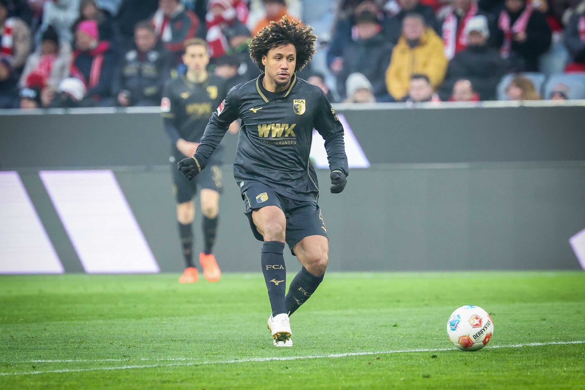 Augsburg blieb dran – und schlug erneut zu. Nur sechs Minuten später dribbelte sich Dimitrios Giannoulis auf der linken Seite durch und legte ins Zentrum, wo Han-Noah Massengo die Übersicht behielt und eiskalt zum 2:1 vollstreckte. Die Allianz Arena verstummte, während der Augsburger Gästeblock explodierte.