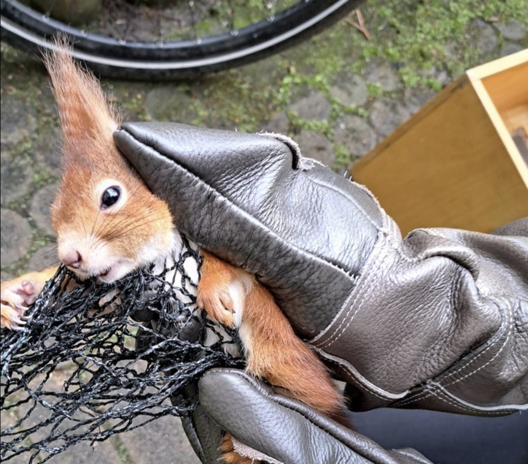 Einsatzkräfte der Feuerwehr München haben ein Eichhörnchen aus einem Netzt befreit. Es blieb glücklicherweise unverletzt.