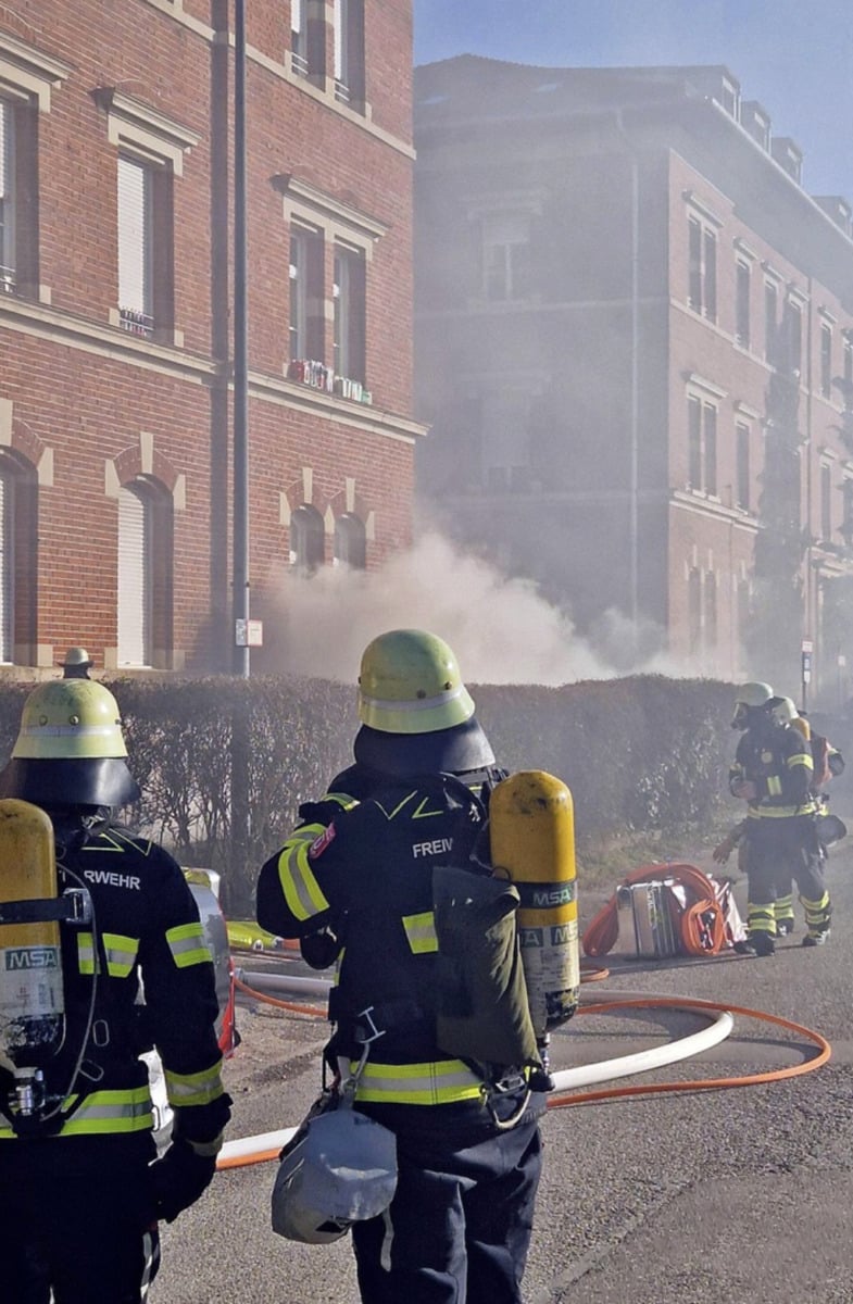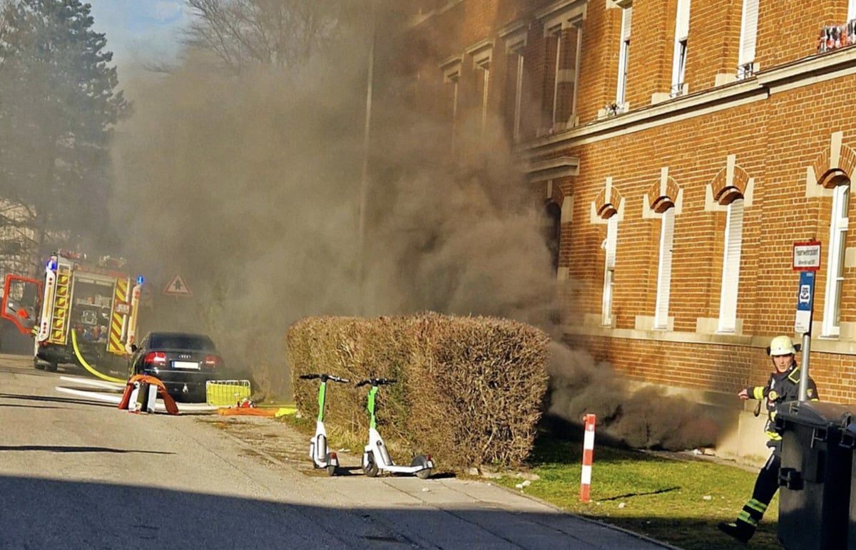 Als die ersten Einheiten vor Ort eintrafen, war die Straße vor dem Gebäude in dichten, schwarzen Rauch gehüllt. Viele der Bewohnerinnen und Bewohner waren bereits vor dem Gebäude.