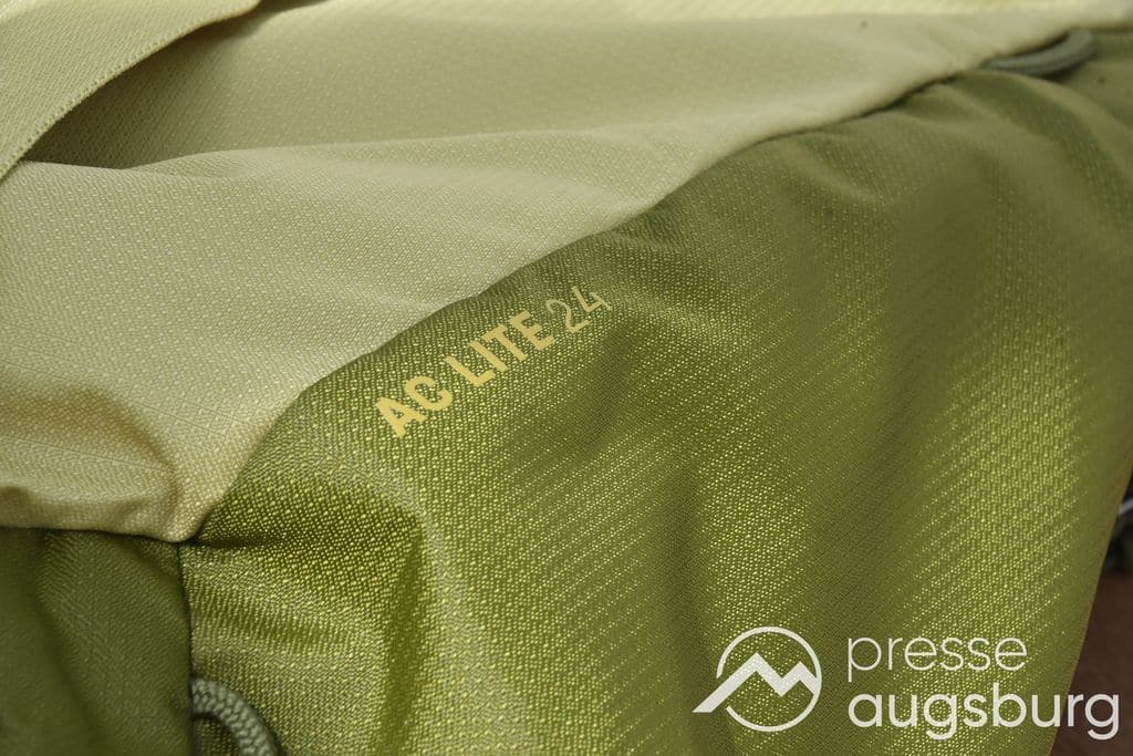 Der AC Lite 24 verfügt über mehrere praktische Fächer und Taschen, die eine geordnete Aufbewahrung von Ausrüstung und Proviant ermöglichen. Ein separates Fach für eine Trinkblase erleichtert das Mitführen von Wasser unterwegs, während eine Fronttasche mit Reißverschluss Platz für kleinere Gegenstände wie Karten oder Snacks bietet. Seitliche Netztaschen eignen sich ideal zur Aufbewahrung von Trinkflaschen oder anderen Utensilien. Das Hauptfach bietet ausreichend Stauraum für Kleidung, Verpflegung und weitere wichtige Dinge, die auf einer Wanderung nicht fehlen dürfen. Einzige kleine Einschränkung: Durch die Krümmung des Aircomfort-Rückensystems lassen sich in der hinteren Innentasche keine langen Gegenstände verwahren, die aber im vorderen Fach reichlich Platz finden.
