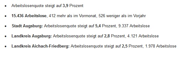 Das Wichtigste aus dem Bereich der Agentur für Arbeit Augsburg in Kürze: