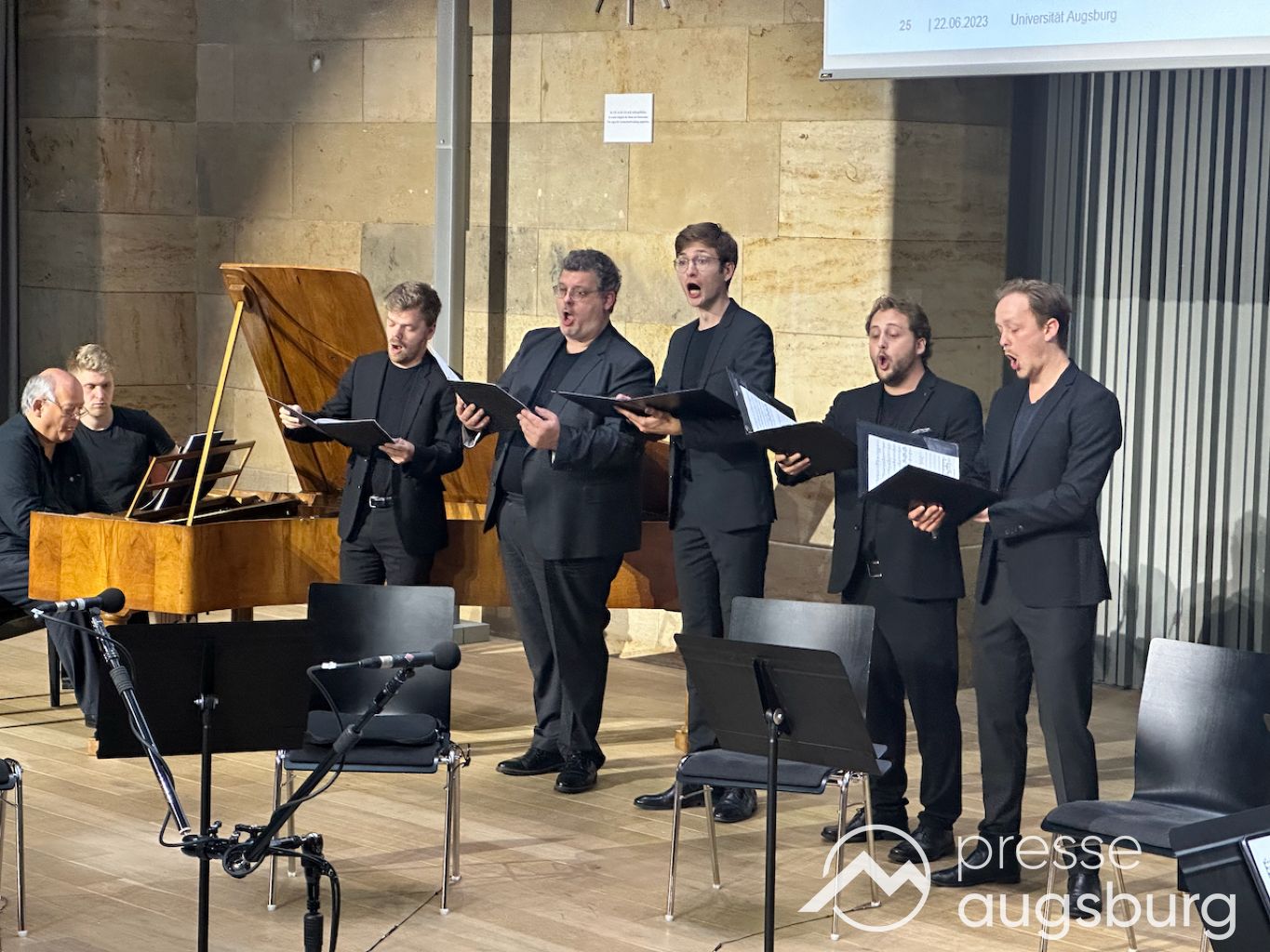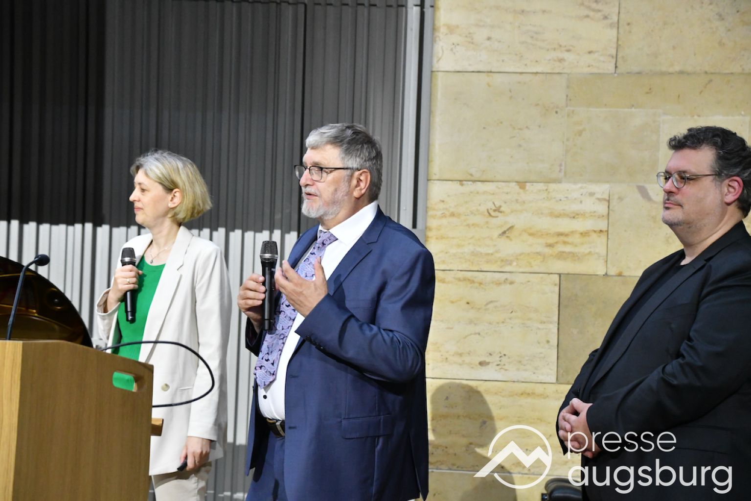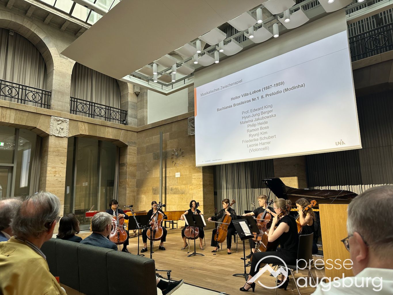 Im Festvortrag „Wie schön ist doch die Musik“ – Musikausbildung in Augsburg im Wandel(n) nahmen die kommissarischen Leiter des LMC Prof. Dr. Franz Körndle und Prof. Dominik Wortig sowie die Geschäftsführerin Dr. Astrid Krummenauer-Grasser mit auf eine kleine Zeitreise und gaben einen Ausblick in die Zukunft der Augsburger Musikausbildung an der Universität. Für ein musikalisches Rahmenprogramm sorgten Studierende des LMC.