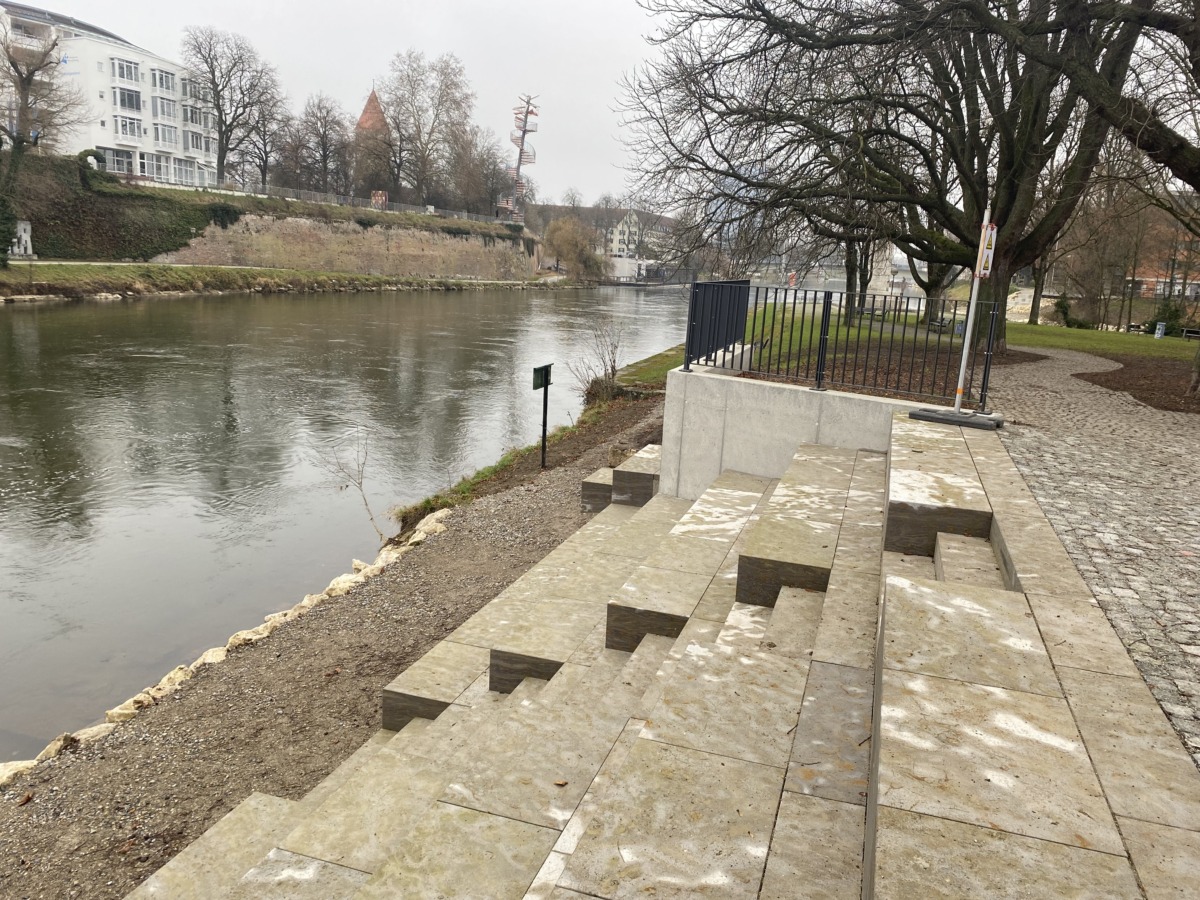 Nach etwa vier Monaten Bauzeit wurden die Umgestaltungsarbeiten am Neu-Ulmer Donauufer, Teil des LEADER-Projekts „Flusslandschaften in Schwaben erleben 2.0“, abgeschlossen.