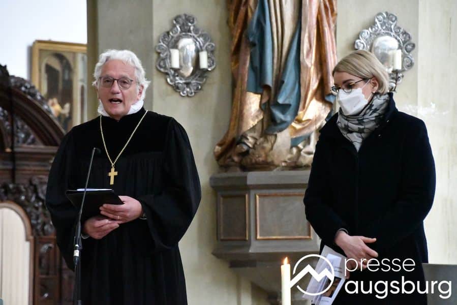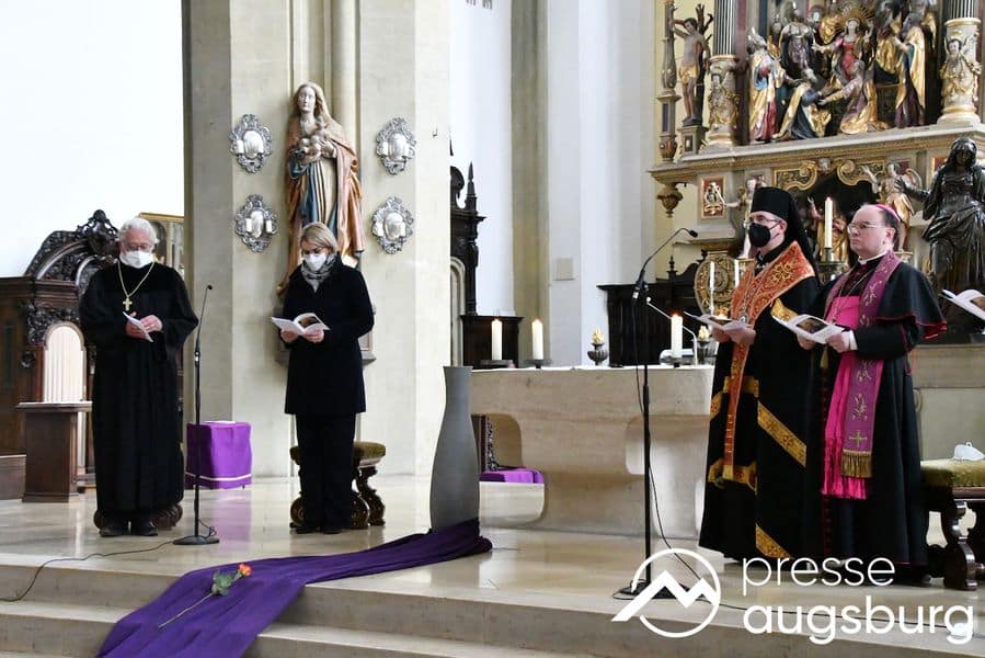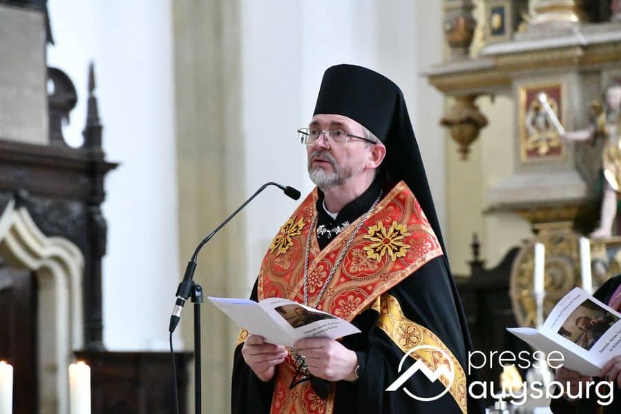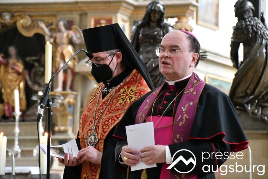 Am frühen Nachmittag kamen Bischof Bertram und Exarch Dzyurakh gemeinsam mit dem evangelischen Regionalbischof Axel Piper und der Augsburger Oberbürgermeisterin Dr. Eva Weber wieder in der Ulrichsbasilika zusammen, um dort in einer gemeinsamen Andacht für den Frieden in der Ukraine und der ganzen Welt zu beten.