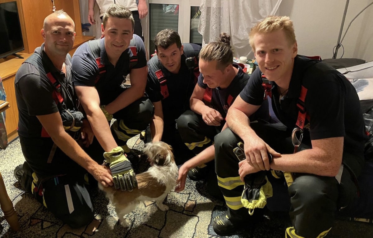 Eine Tochter und ihr Mann besuchten die Mama, um am Feiertag auch den 90. Geburtstag der Mutter zu feiern. Es war ein schöner Abend und der kleine Hund Rocky tobte ausgelassen in der Wohnung umher. Beim Spielen blieb der kleine Vierbeiner plötzlich zwischen einem Heizungsrohr und der Wand stecken. Versuche, das Tier zu befreien gelangen nicht. Daraufhin rief die Tochter den Notruf 112 und schilderte den Vorfall.