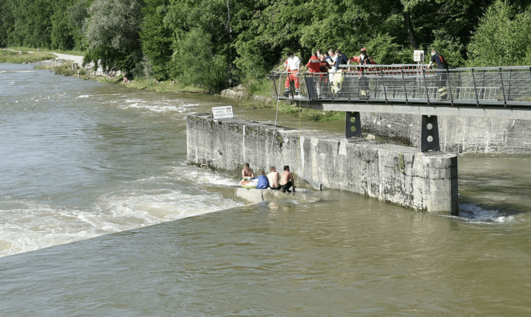 Zwei weitere Männer hatten den Rettungsversuch beobachtet und eilten ins Wasser, um zu helfen. Gemeinsam schafften es schließlich alle vier, sich auf einen aus der Isar ragenden Sockel aus Beton zu retten.