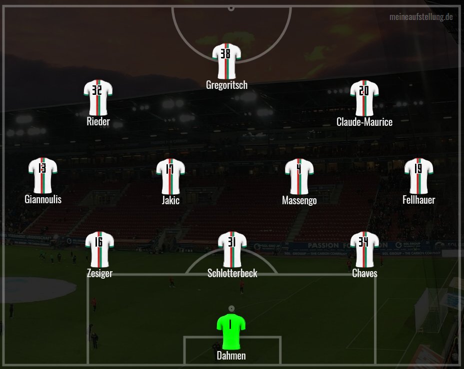 Dahmen – Arthur Chaves, Schlotterbeck, Zesiger – Fellhauer, Massengo, Rexhbecaj, Giannoulis – Rieder, Claude-Maurice – Gregoritsch
