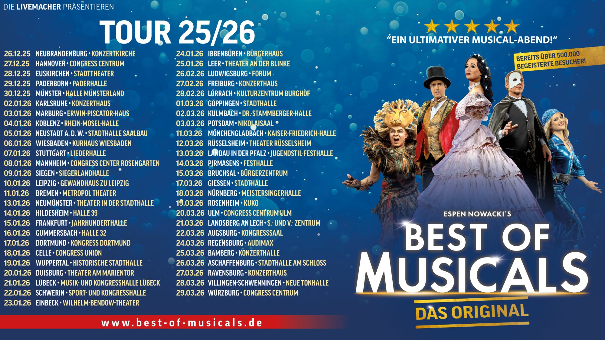 “Best of Musicals” am 22.03.26 – Augsburg / Kongresssaal. Tickets können auf eventim.de an allen bekannten Vorverkaufsstellen oder unter www.best-of-musicals.de erworben werden.