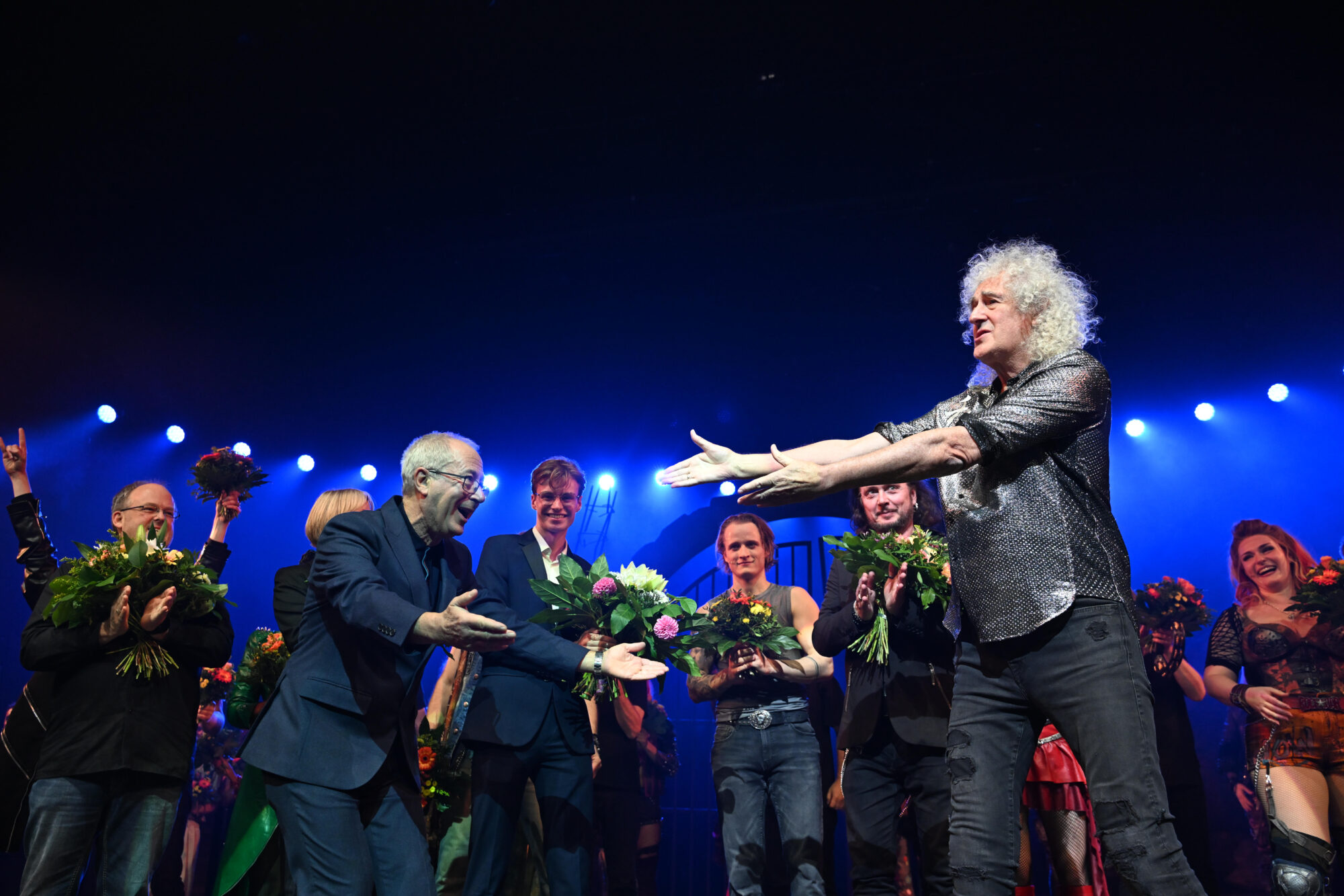 Die Premiere fand ihren Höhepunkt zum Ende mit dem Auftritt der Queen-Legende Sir Brian May. Der inzwischen 78-jährige Gitarrist der Erfolgsband war eigens nach Stuttgart angereist, um zum Showabschluss die “Bohemian Rhaposdy” mit der starken Stuttgarter Band und dem Ensemble im Stage Palladium Theater auf seiner Gitarre zu spielen.