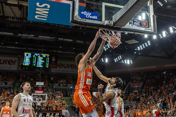 Das Highlight-Festival setzte sich fort: Jallow ließ Seljaas erneut alt aussehen und traf spektakulär per And-One (77:58). Die Ulmer Spielfreude war nun voll entfacht – Weidemann und Jessup bedienten den fliegenden Yago dos Santos mit zwei sehenswerten Alley-Oops.