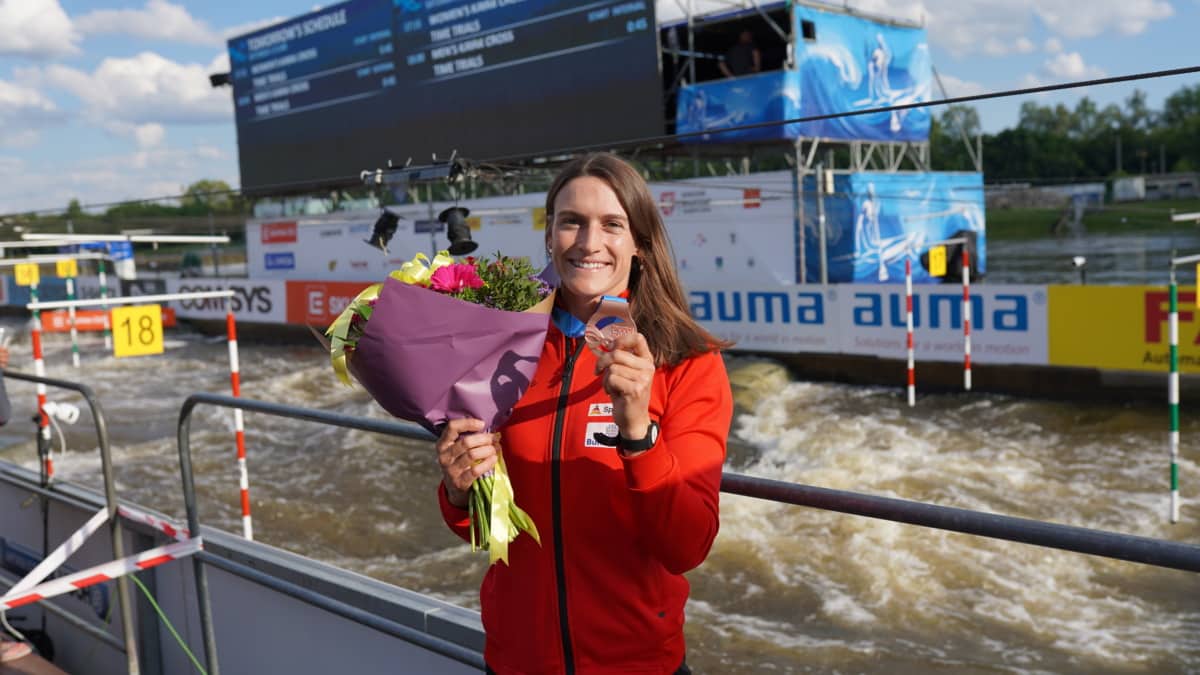 Ricarda Funk hat beim Kanuslalom-Weltcup im tschechischen Prag am Freitag Bronze im Kajak-Einer gewonnen. Die Rheinländerin vom KSV Bad Kreuznach und Kanu Schwaben Augsburg ist happy, weil sie auch bei ihrem zweiten internationalen Wettkampf gezeigt hat, dass sie ganz vorn mitfahren kann.