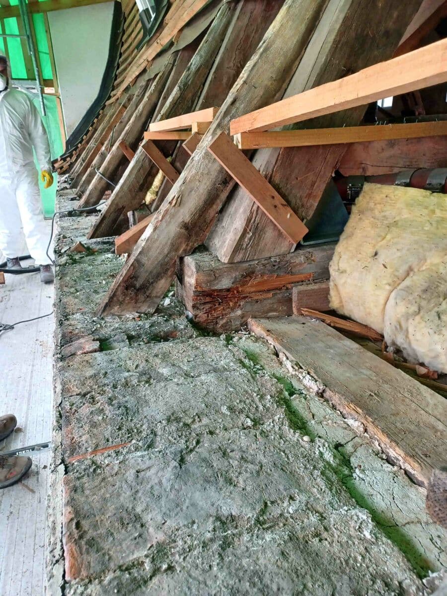 Den jetzigen Arbeiten vorausgegangen waren gründliche Untersuchungen des Hauses, das in Teilen noch von den Vorgängerbauten aus dem 16. bzw. 18. Jahrhundert stammt. Dabei, so erläuterte Diözesanbaudirektor Johannes Kerschensteiner, wurden gravierende Fäulnisschäden an der statisch relevanten Tragwerkskonstruktion entdeckt: „Diese Schäden finden sich massiv im Dachtragwerk, haben aber auch schon dazu geführt, dass der Erker zum Kustosgäßchen im ersten Stock sich abgesenkt hat.“ Zudem seien große Bereiche in der Dachkonstruktion schadstoffbelastet.