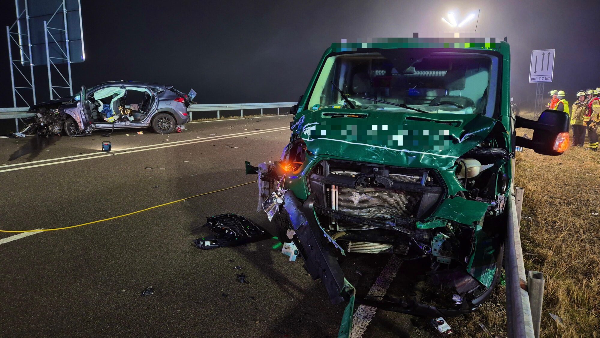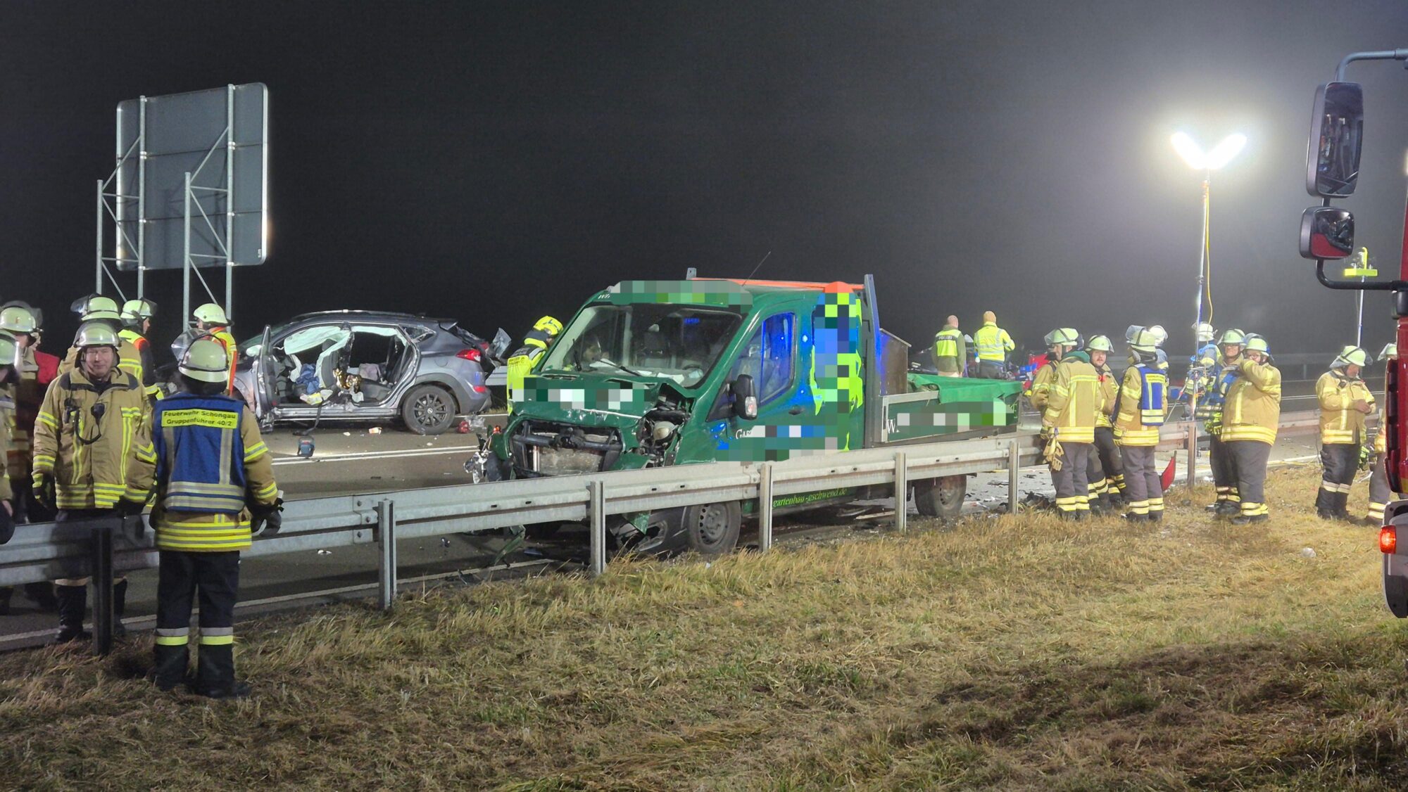Kurz nach dem Crash ereignete sich ein weiterer Zusammenstoß: Ein in Richtung Schongau fahrender Pritschenwagen bemerkte die Unfallstelle zu spät und fuhr frontal in das Heck des Hyundai. Dabei wurden der 37-jährige Fahrer und sein 45-jähriger Beifahrer verletzt.