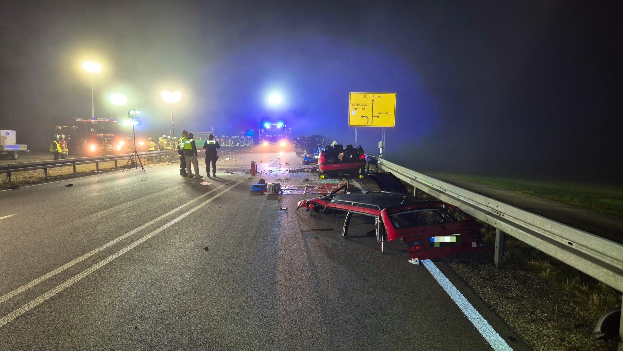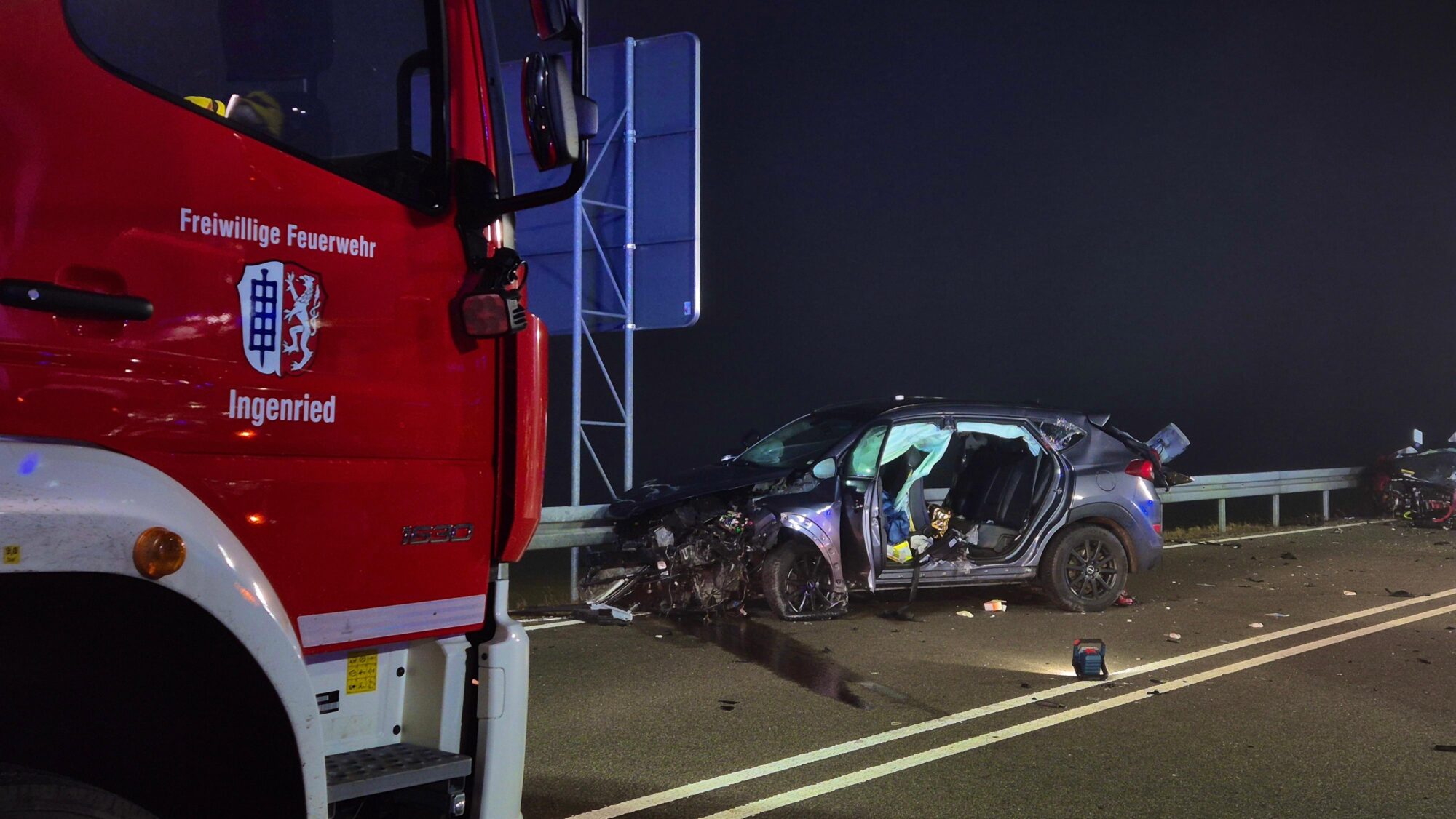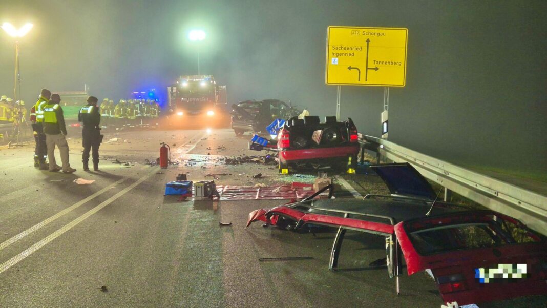 Nach ersten Informationen der Polizei Schongau waren zwei Fahrzeuge am frühen Abend in Richtung Schongau unterwegs, ein weiteres in Gegenrichtung. Auf Höhe von Ingenried kam es zu einem Frontalzusammenstoß zwischen einem VW Passat und einem Hyundai Tucson. Die Wucht des Aufpralls war enorm – beide Fahrzeuge wurden stark deformiert.
