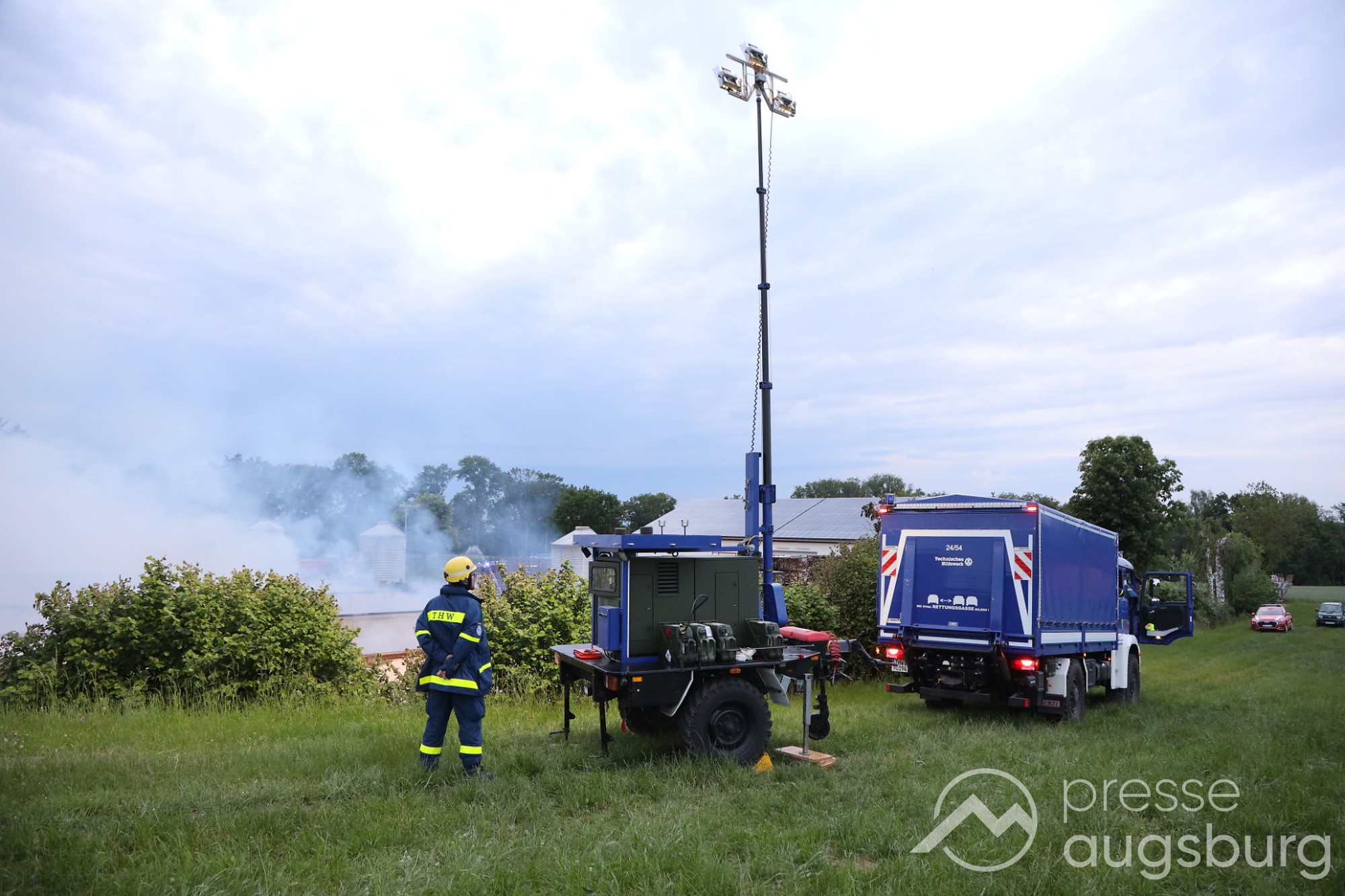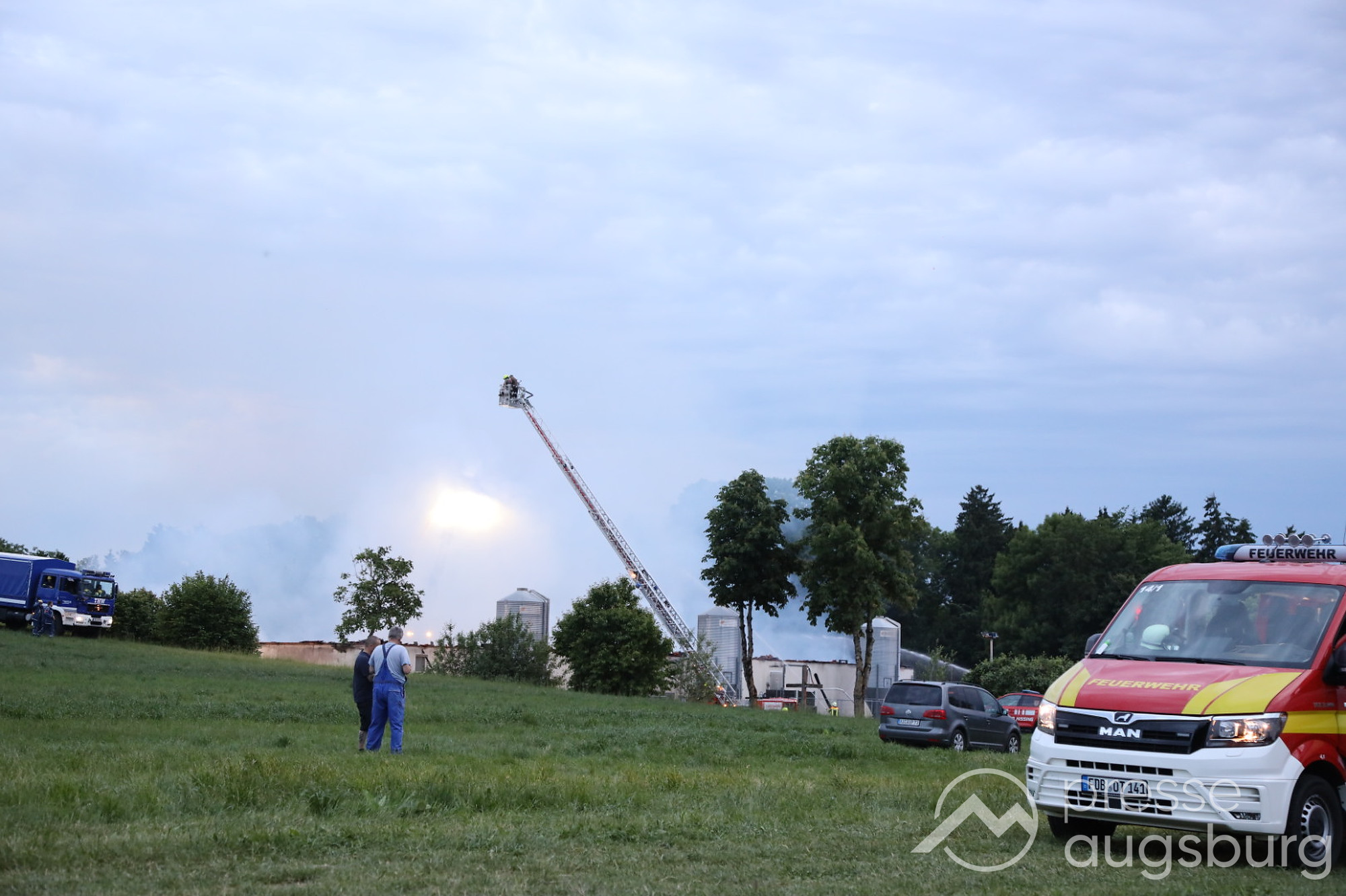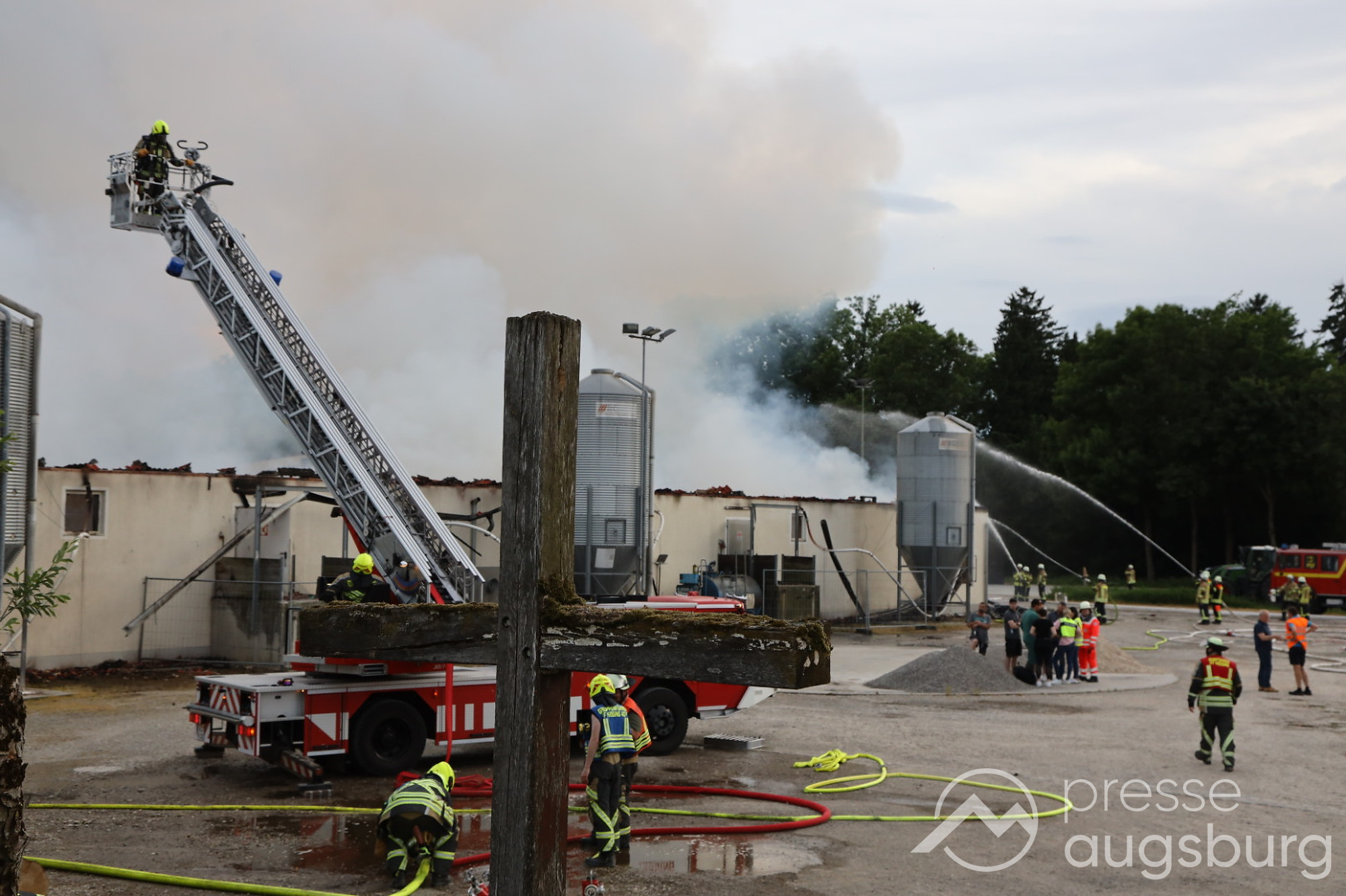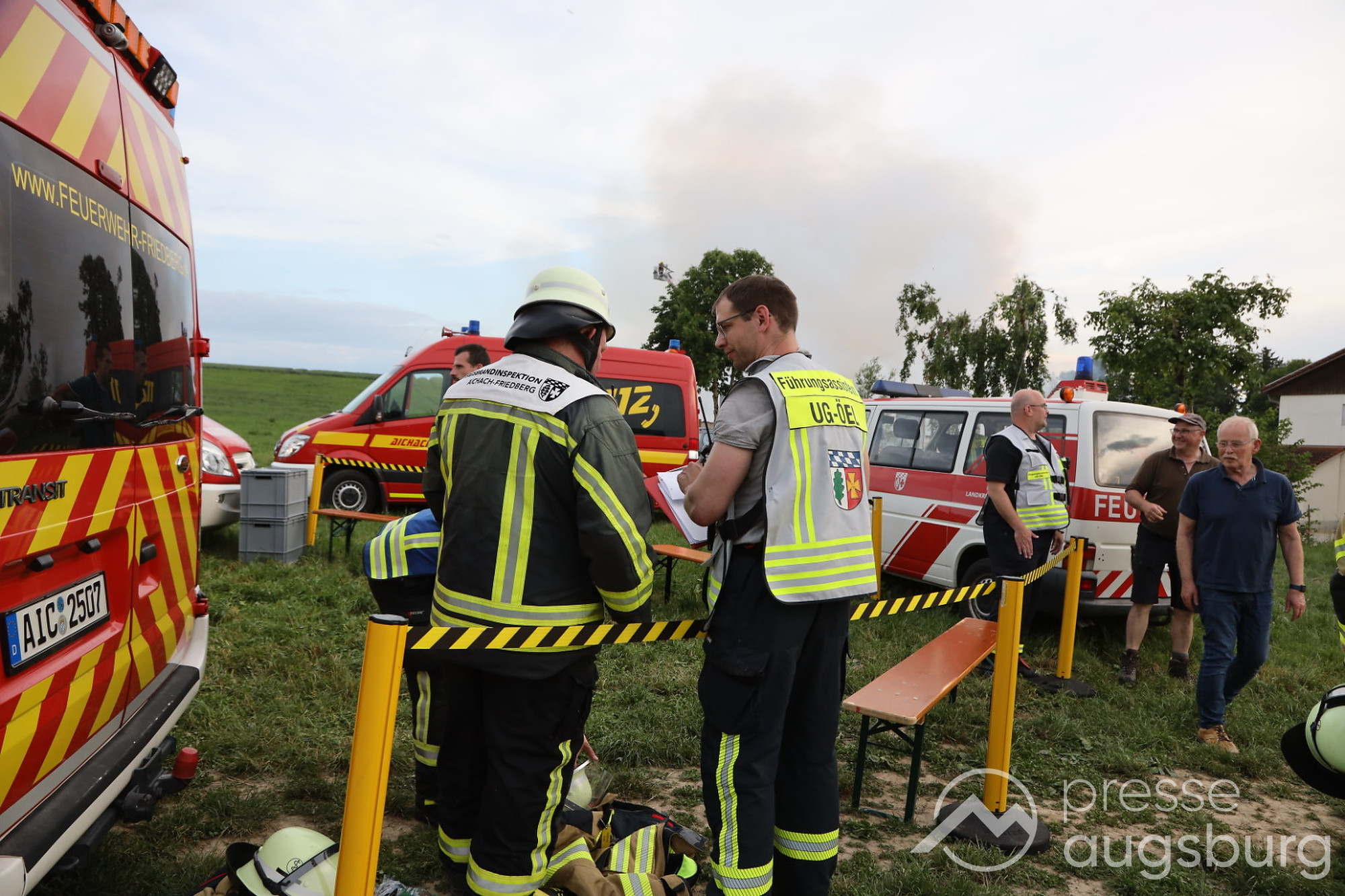 Unterstützung erhielten die Einsatzkräfte nicht nur von rund 180 Feuerwehrleuten aus mindestens acht umliegenden Wehren – darunter Wulfertshausen, Kissing, Aichach, Friedberg, Ottmaring, Haunswies sowie der Berufsfeuerwehr Augsburg – sondern auch von umliegenden Landwirten, die mit Wasserfässern aushalfen.