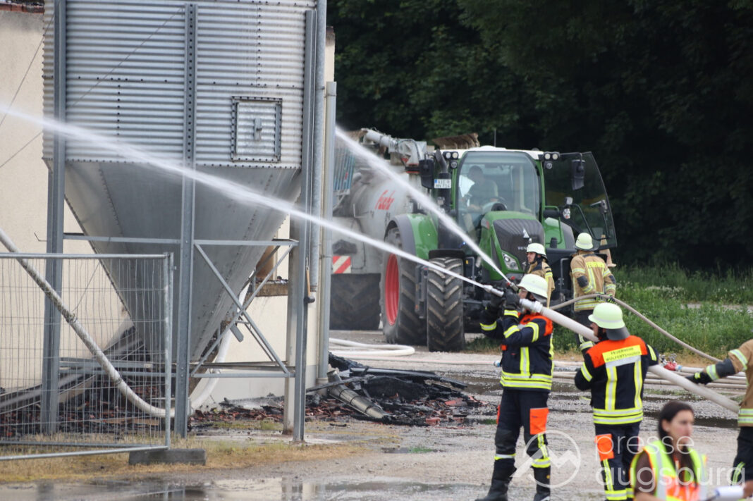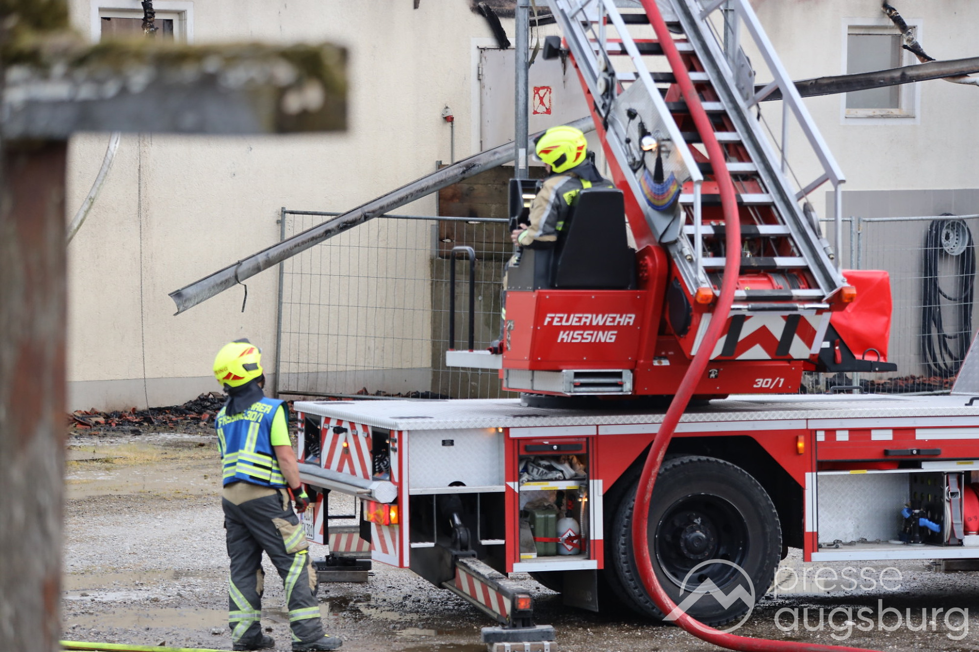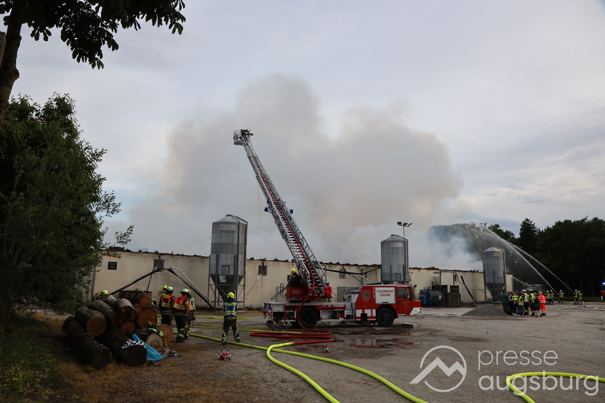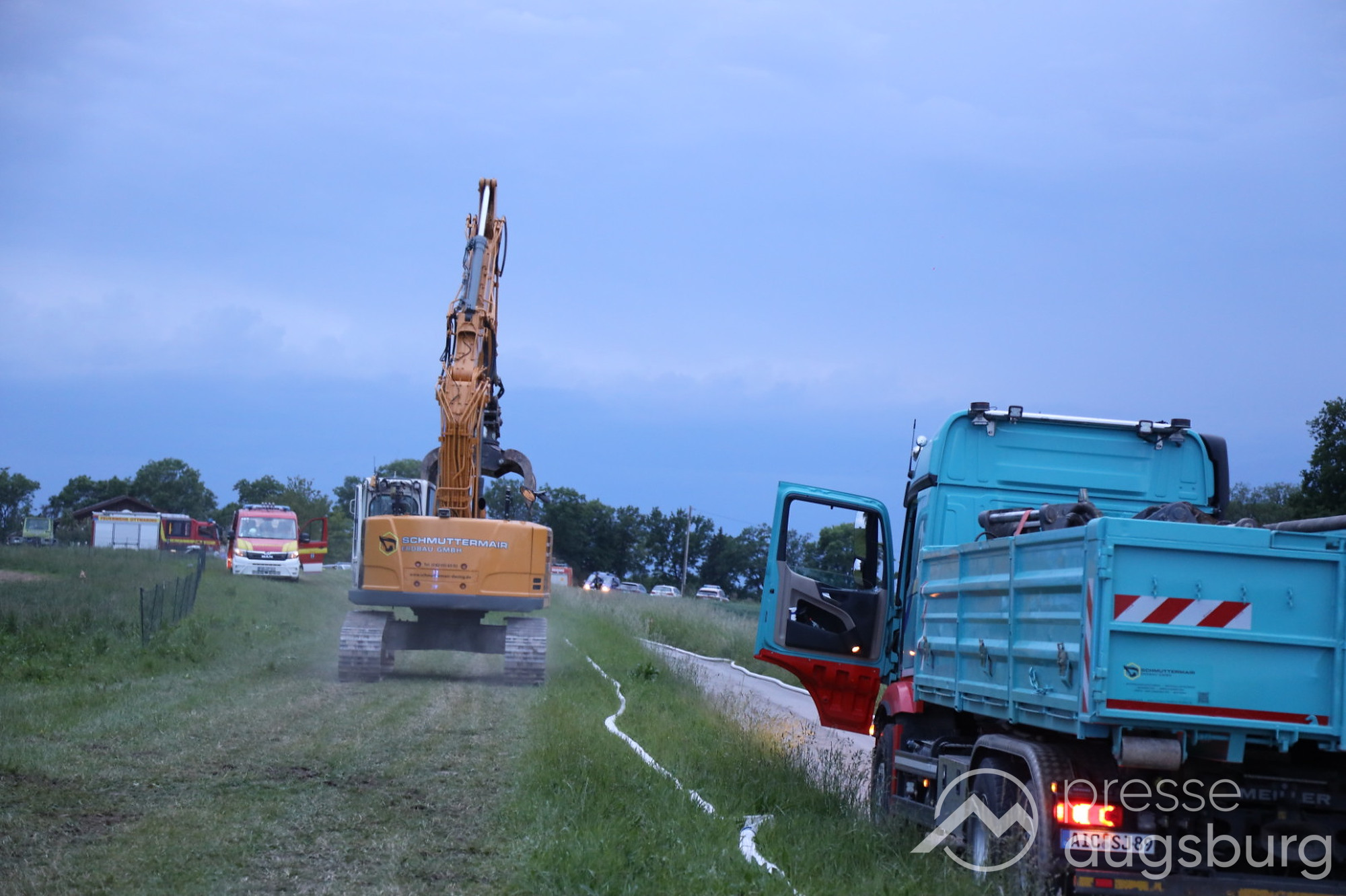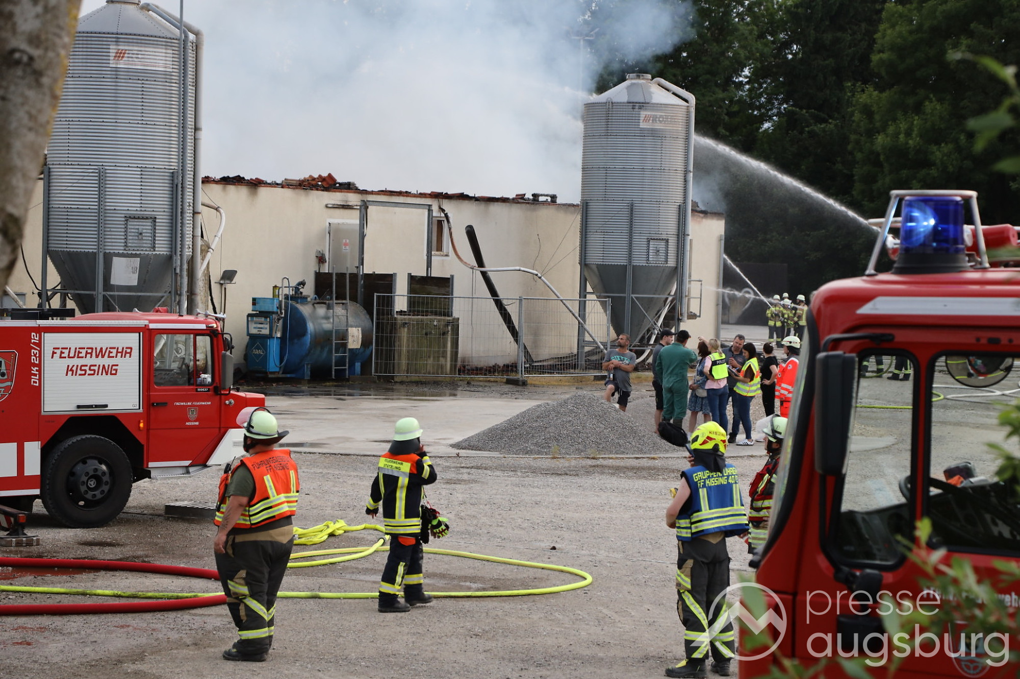 Unterstützung erhielten die Einsatzkräfte nicht nur von rund 180 Feuerwehrleuten aus mindestens acht umliegenden Wehren – darunter Wulfertshausen, Kissing, Aichach, Friedberg, Ottmaring, Haunswies sowie der Berufsfeuerwehr Augsburg – sondern auch von umliegenden Landwirten, die mit Wasserfässern aushalfen.