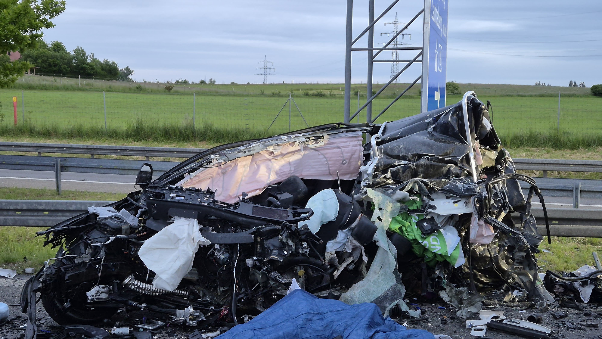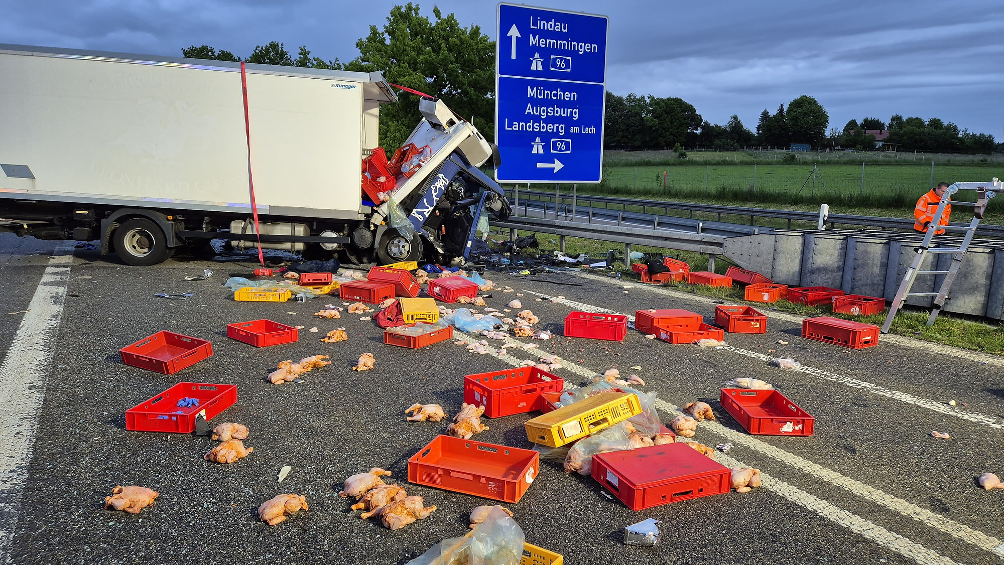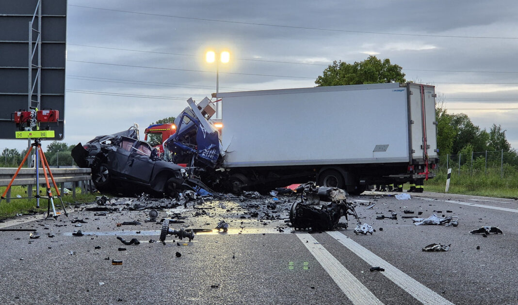 Die Wucht des Aufpralls war enorm: Beide Fahrzeuge wurden vollständig zerstört, der Motorblock des Autos wurde mehrere Meter weit weggeschleudert. Der mit Geflügel beladene Kühltransporter verlor seine Ladung – die Hähnchen verteilten sich über die gesamte Fahrbahn.