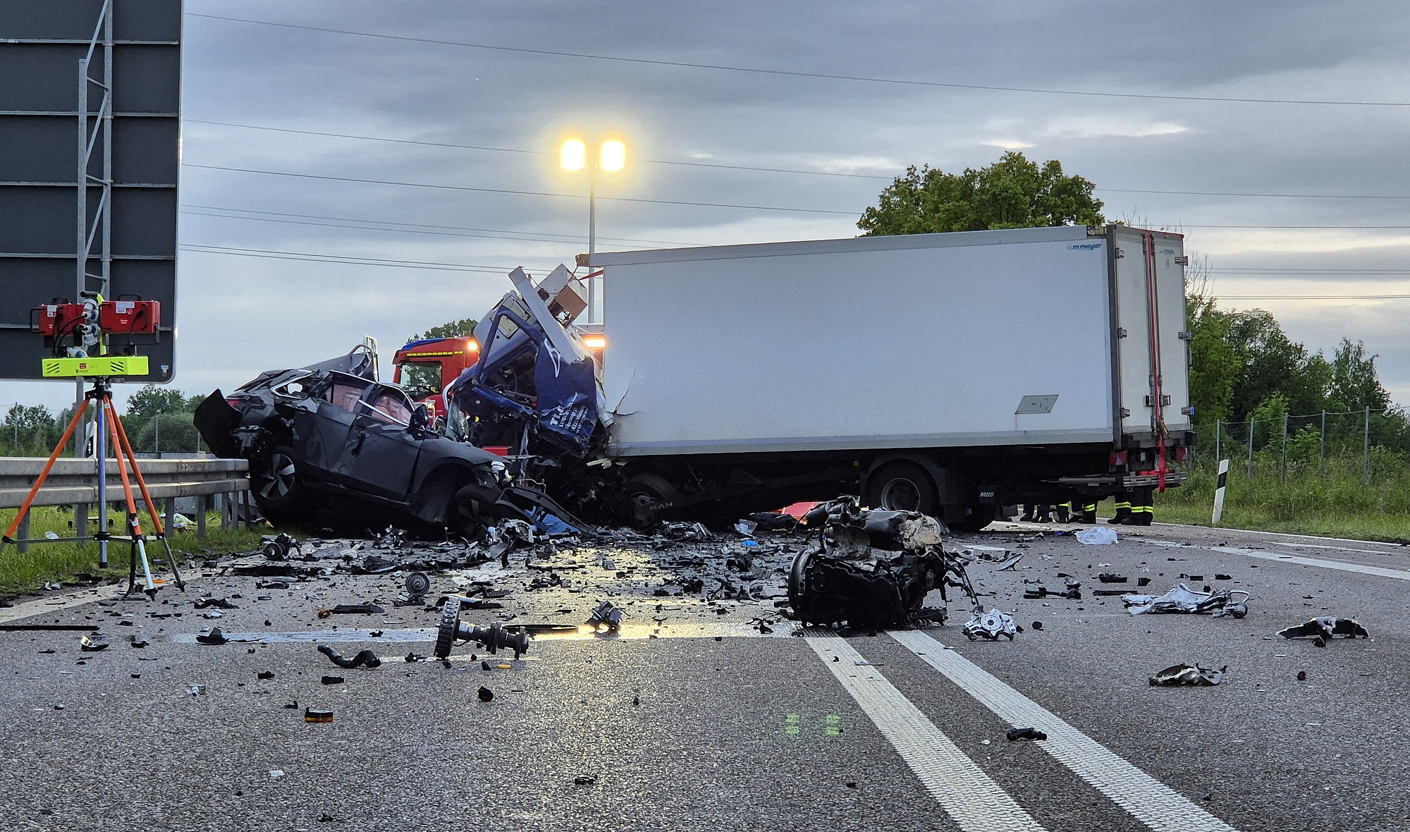 Der 22-jährige Pkw-Fahrer erlag noch an der Unfallstelle seinen schweren Verletzungen. Der 50-jährige Lkw-Fahrer wurde im völlig zerstörten Führerhaus eingeklemmt und musste von der Feuerwehr befreit werden. Er wurde mit lebensgefährlichen Verletzungen in ein Krankenhaus eingeliefert und umgehend notoperiert.