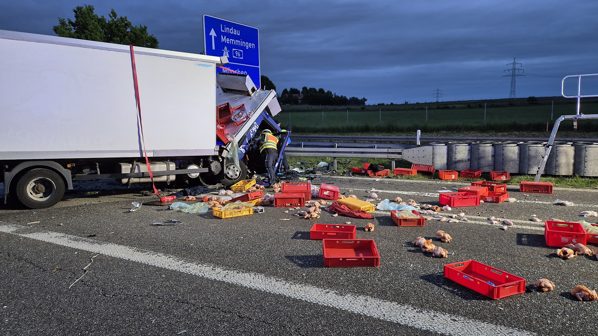 Kaufbeuren/Jengen – Bei einem schweren Verkehrsunfall auf der Bundesstraße 12 ist am frühen Mittwochmorgen ein junger Autofahrer tödlich verunglückt. Gegen 4 Uhr kam es kurz vor der Anschlussstelle zur A96 zu einem Frontalzusammenstoß zwischen einem Pkw und einem mit Tiefkühl-Hähnchen beladenen Lastwagen.