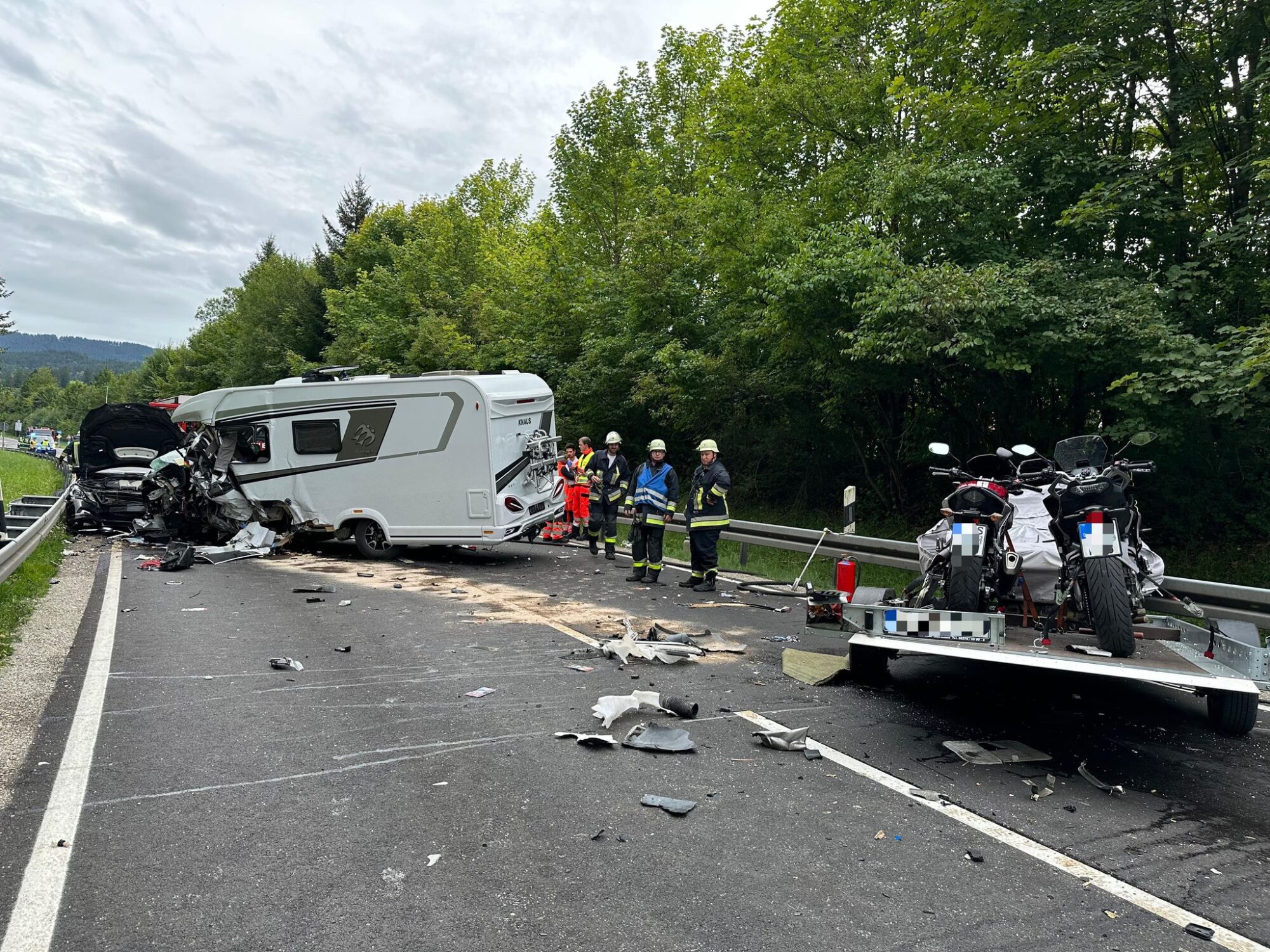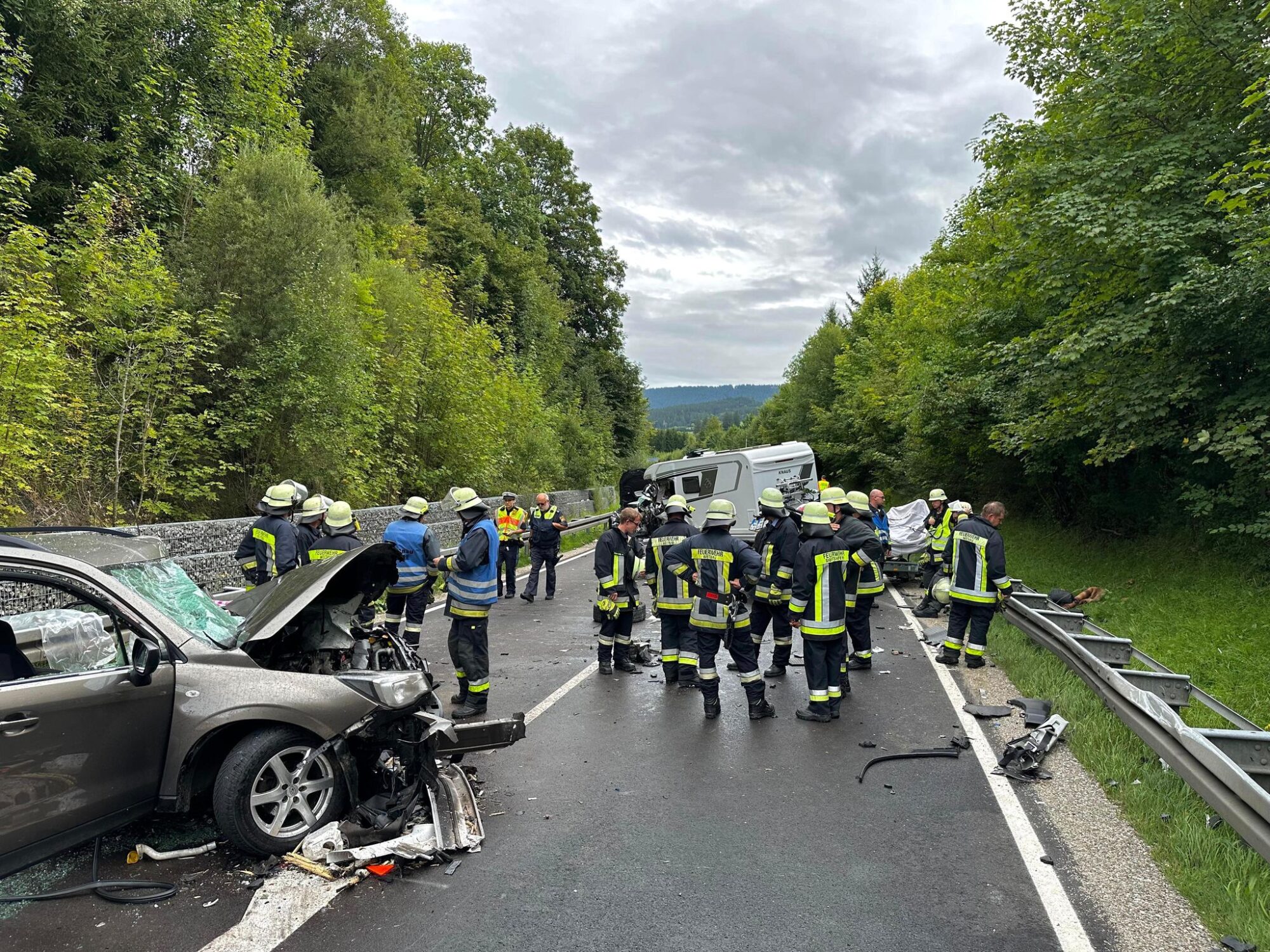 Die Unfallaufnahme und Bergungsarbeiten dauern derzeit an. Die B12 ist im Bereich der Unfallstelle weiterhin voll gesperrt, eine Umleitung wurde eingerichtet. Die Polizei hat Ermittlungen zum genauen Unfallhergang aufgenommen.