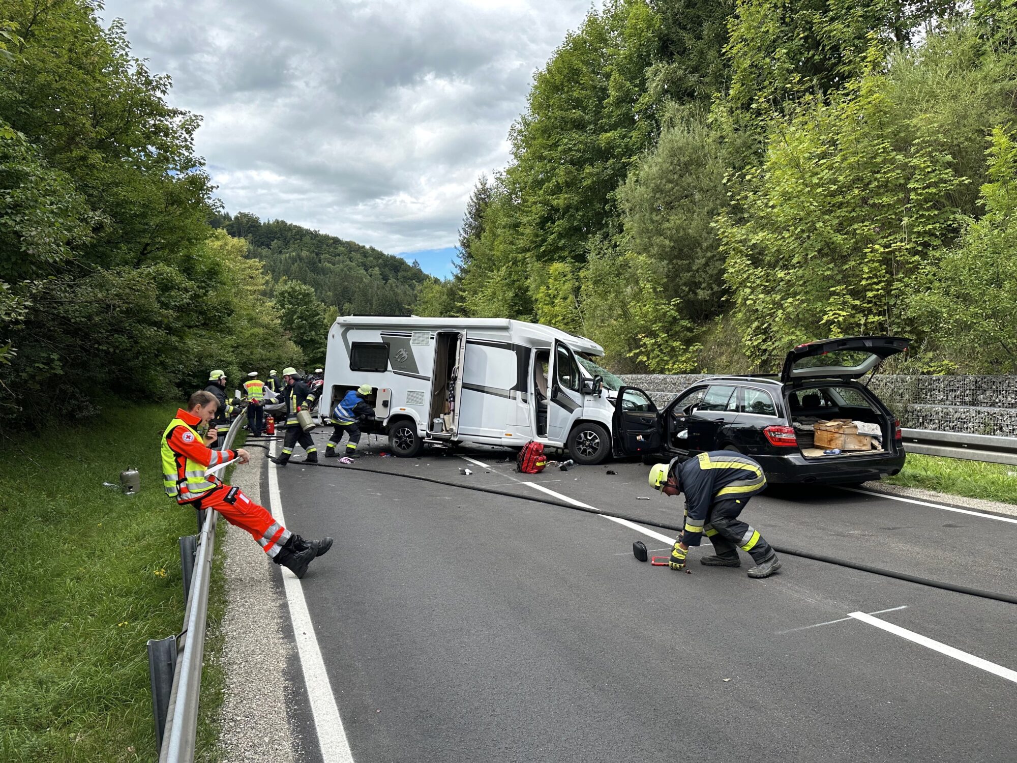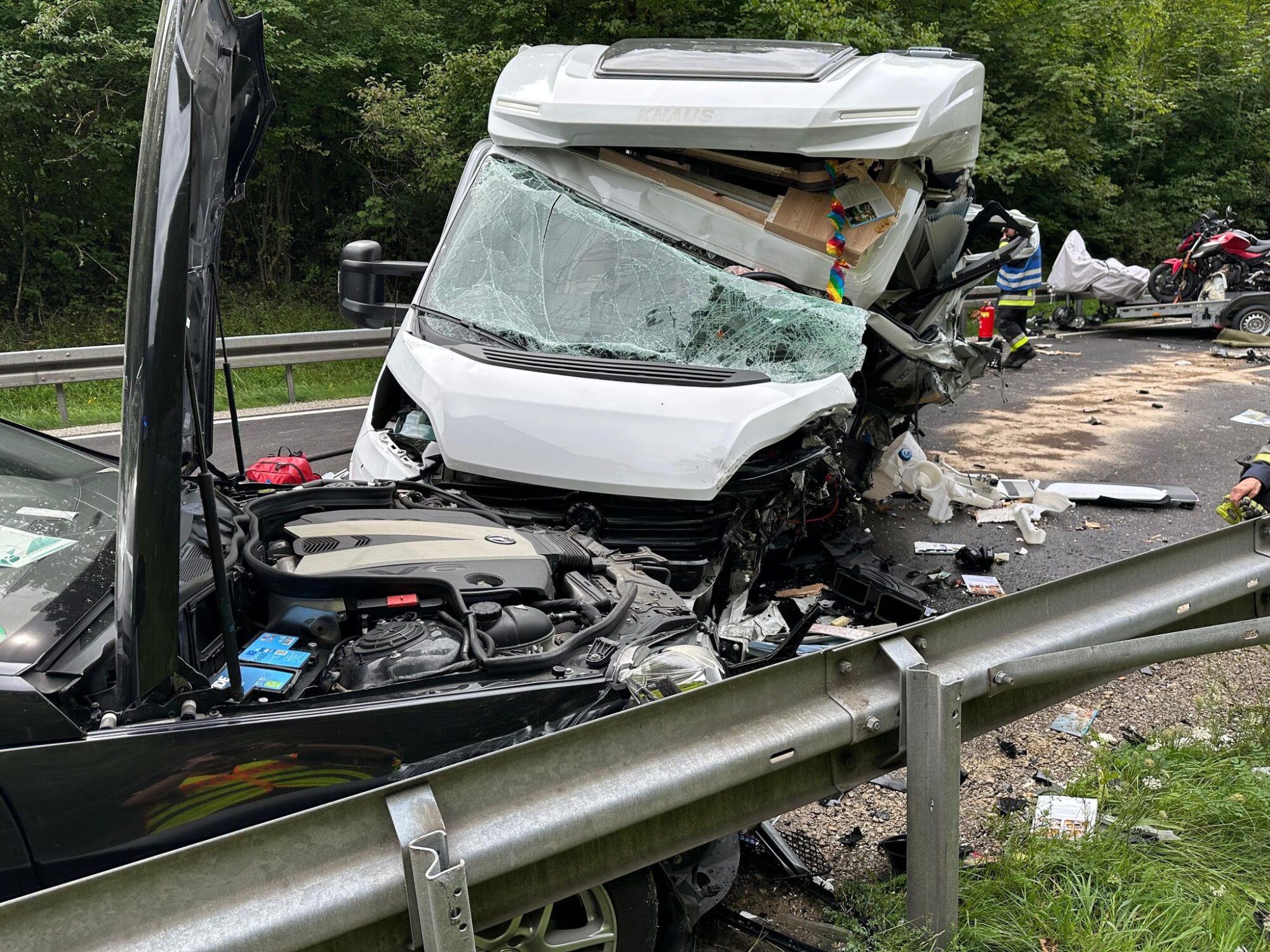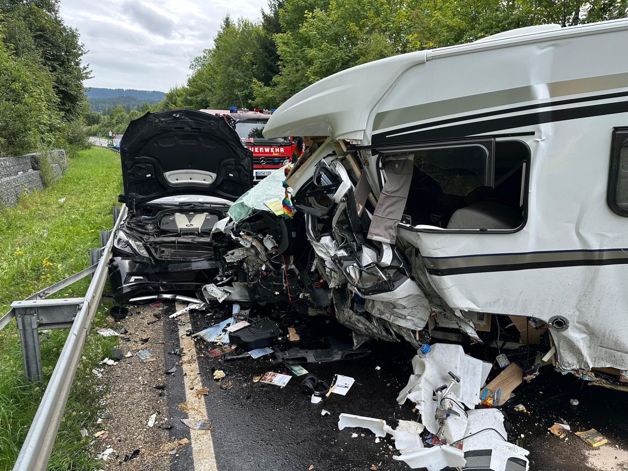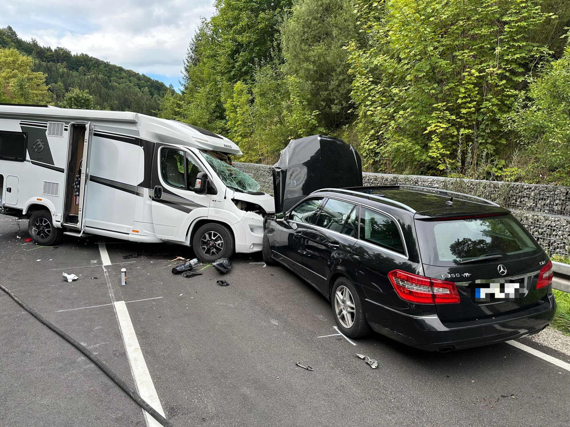 Ein weiterer Pkw, der dem ersten Fahrzeug folgte und ebenfalls in Richtung Isny unterwegs war, konnte nicht mehr rechtzeitig abbremsen und prallte ebenfalls frontal in das Wohnmobil.