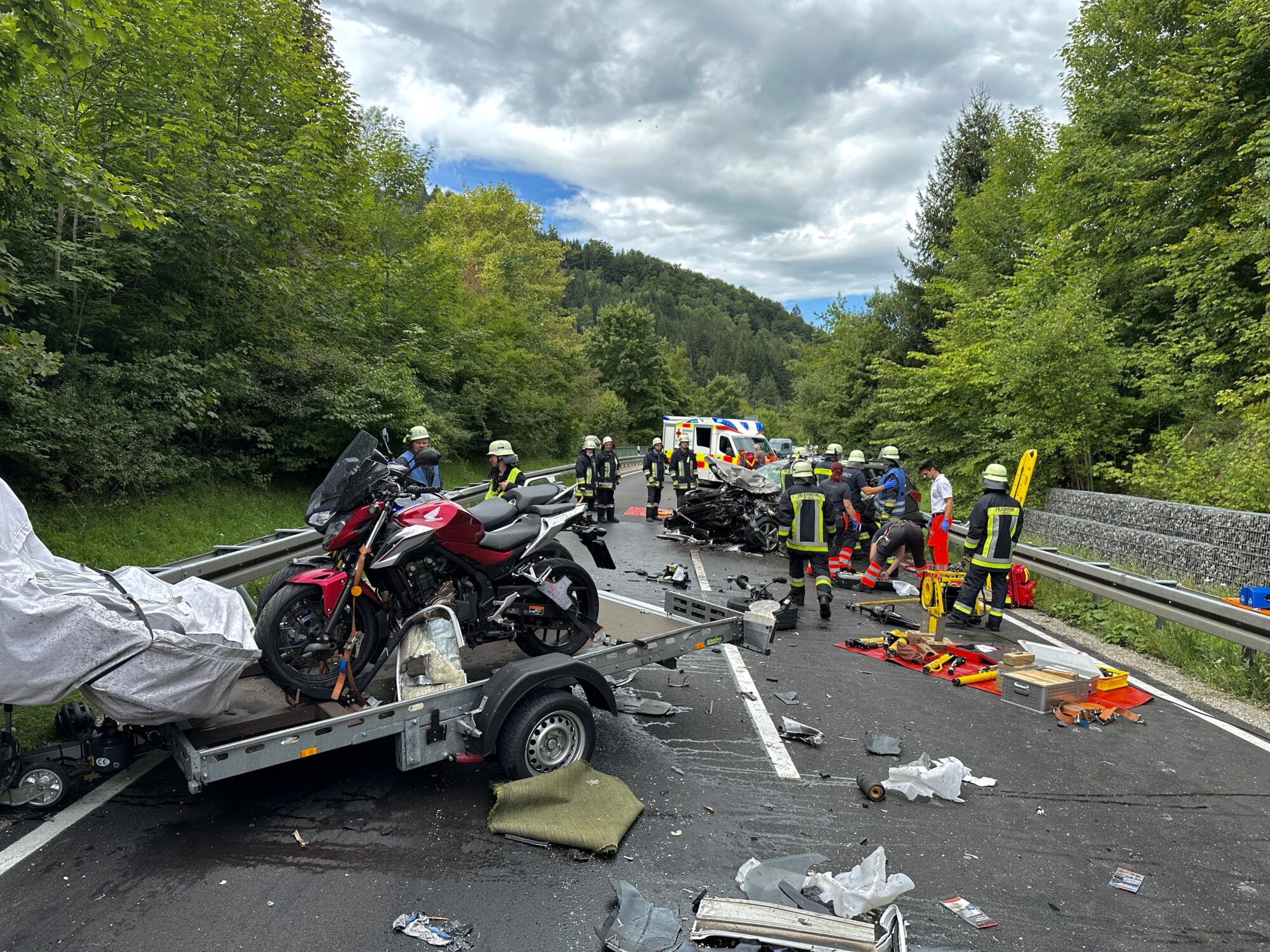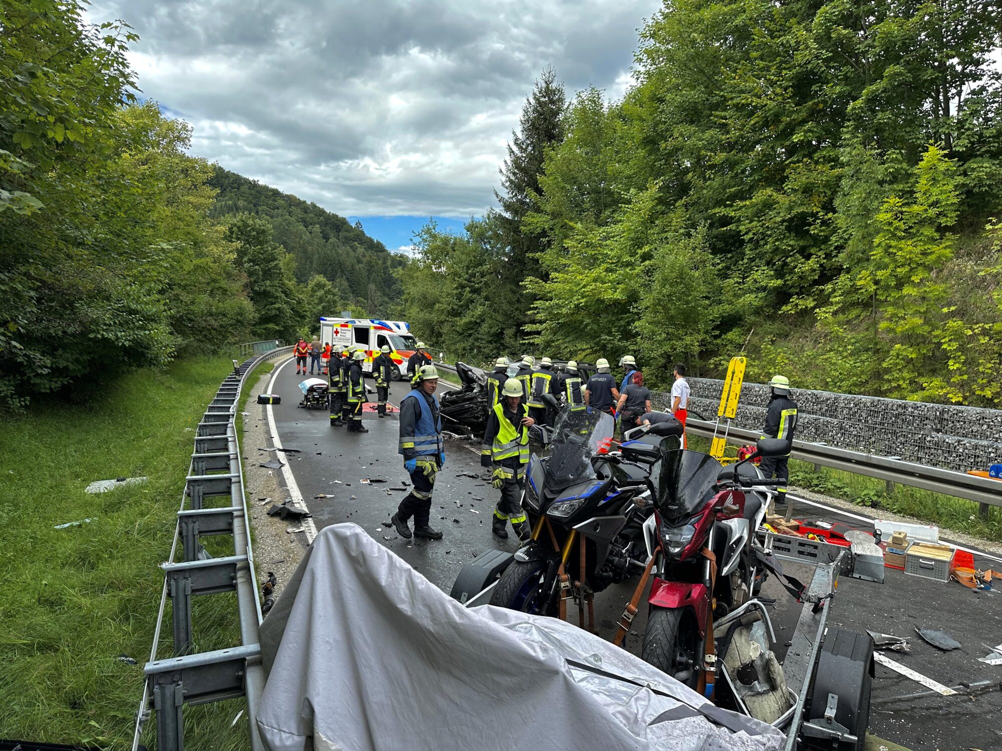 Bei dem Unfall wurden mehrere Personen schwer bis mittelschwer verletzt, darunter auch ein Fahrer, der selbst aktives Mitglied der Feuerwehr ist. Er musste aus seinem Fahrzeug befreit werden.