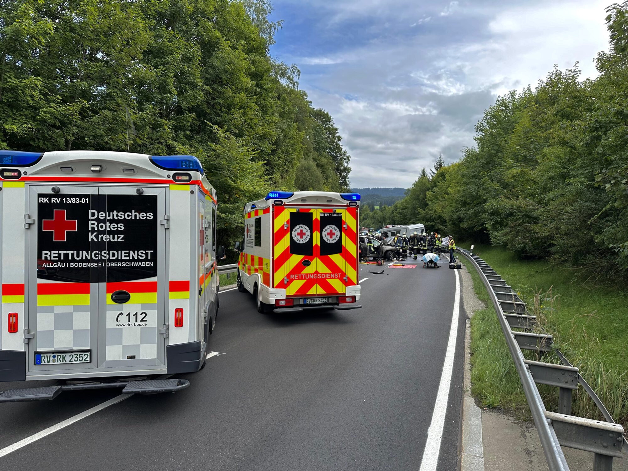 Gegen 14:00 Uhr war ein Pkw von Weitnau in Richtung Isny unterwegs, als dieser aus bislang ungeklärter Ursache kurz nach Weitnau auf die Gegenfahrbahn geriet. Ein entgegenkommendes Wohnmobil, das aus Isny in Richtung Kempten fuhr, versuchte auszuweichen. Dabei verlor der Fahrer jedoch die Kontrolle über das Fahrzeug – es kam zur frontalen Kollision mit dem Pkw.