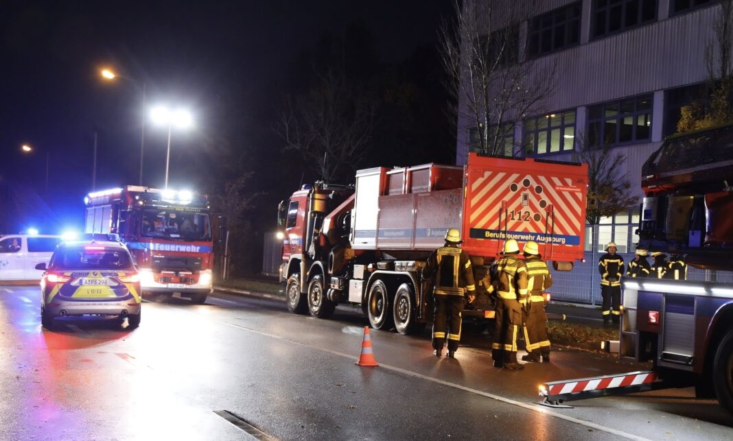 Durch den Aufprall wurde zudem ein Lichtmast erheblich beschädigt. Da dieser umzustürzen drohte, waren Einsatzkräfte der Berufsfeuerwehr Augsburg sowie der Werkfeuerwehr von Airbus mit großem Aufgebot vor Ort. Der Mast stand unter Strom und musste daher kontrolliert abgetragen werden. Hierfür kam auch eine Drehleiter der Berufsfeuerwehr zum Einsatz.