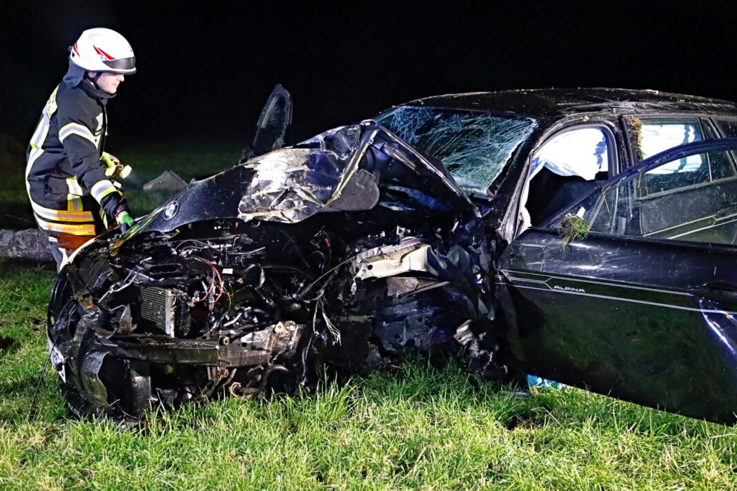 Ein BMW, von der GZ25 kommend in Richtung Münsterhausen, kam aus bislang ungeklärter Ursache von der Fahrbahn ab und prallte frontal gegen einen Baum. Der Aufprall war so heftig, dass der Baumstamm von der Krone getrennt wurde und Teile der Vorderachse aus dem Fahrzeug herausgerissen wurden. Das stark beschädigte Auto kam auf einer angrenzenden Wiese zum Stehen.