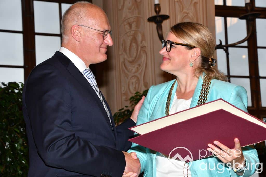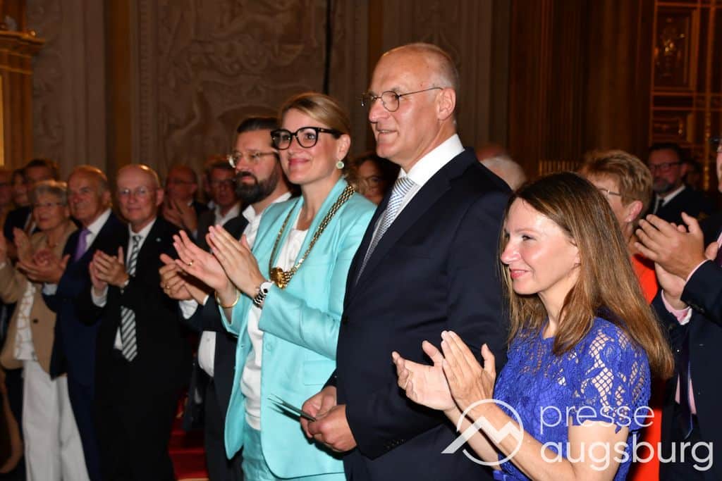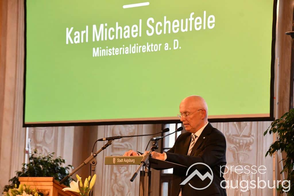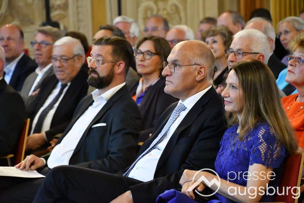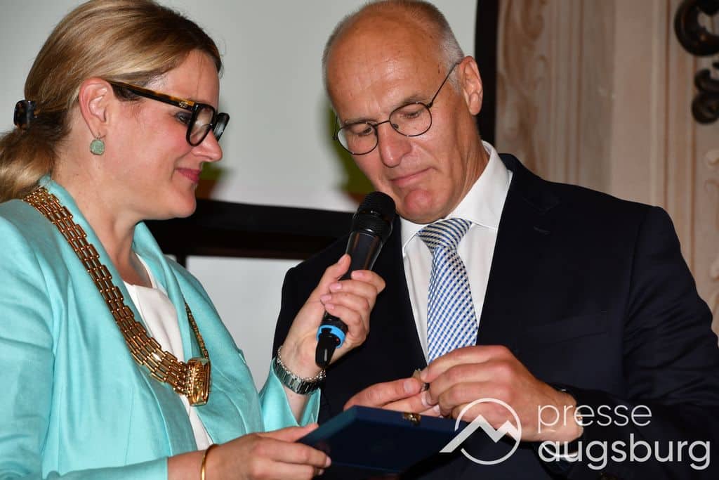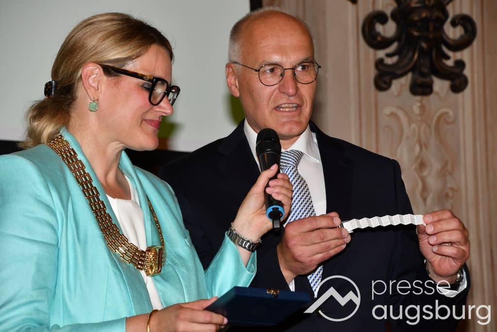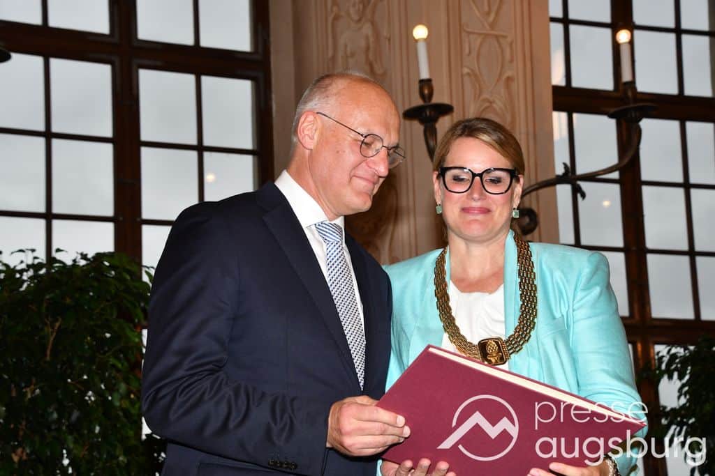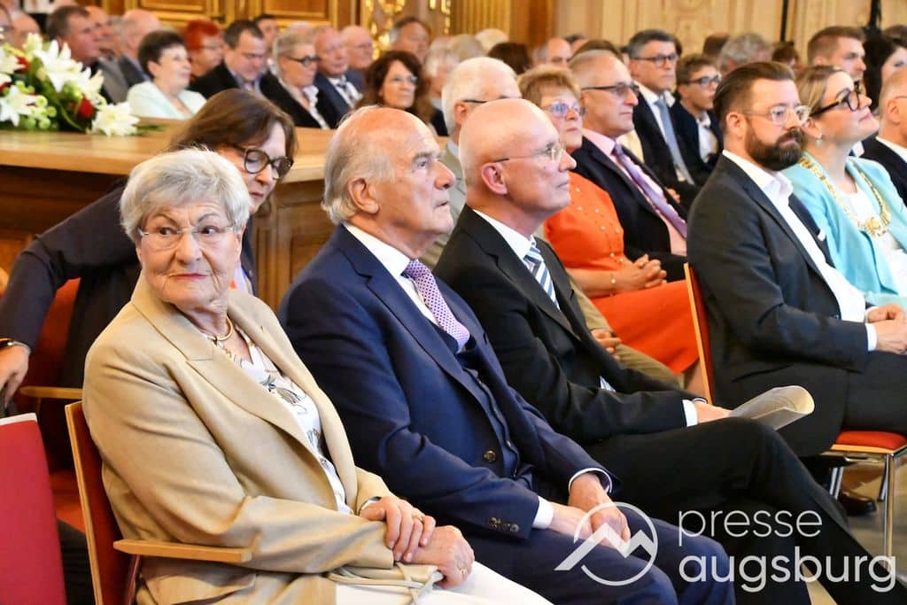 Die Verleihung der Ehrenbürgerwürde fand am Mittwoch im Rahmen eines Festakts im Goldenen Saal des Rathauses statt. Die Laudatio hielt Karl Michael Scheufele, der von 2008 bis 2018 als Regierungspräsident von Schwaben Wegbegleiter von Oberbürgermeister
