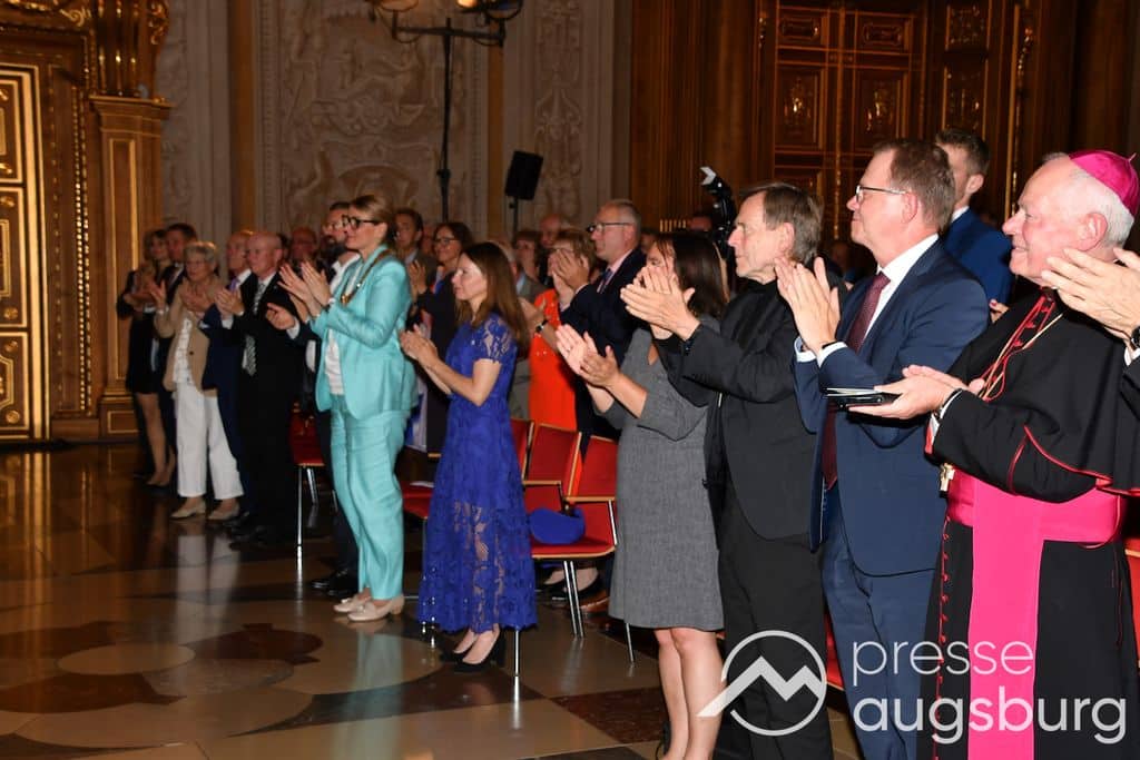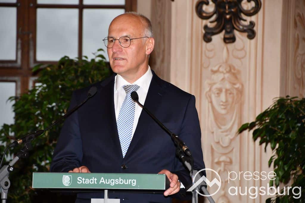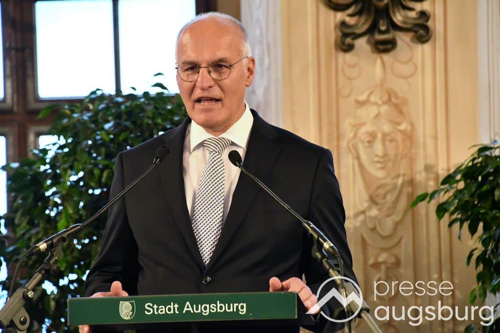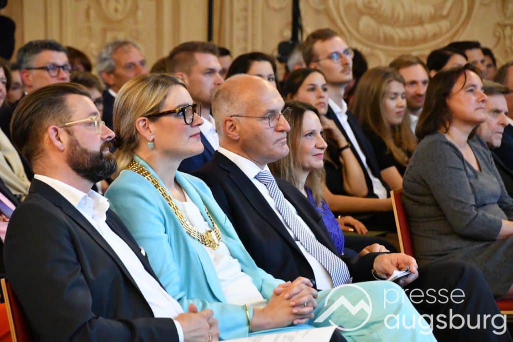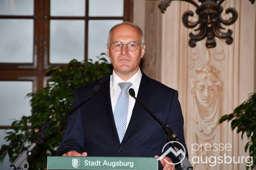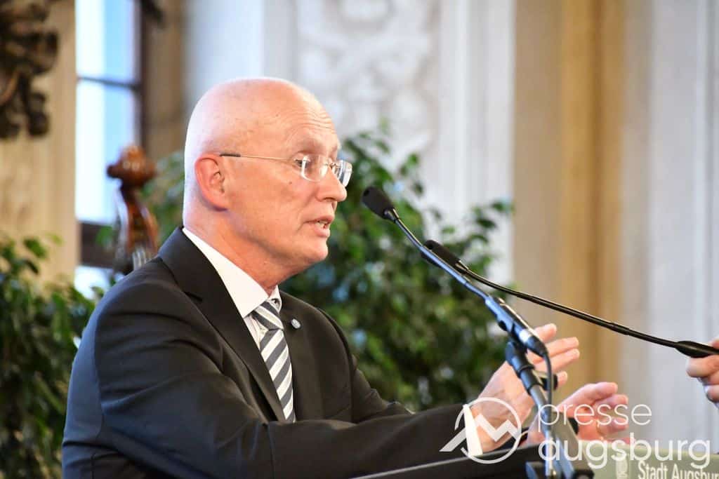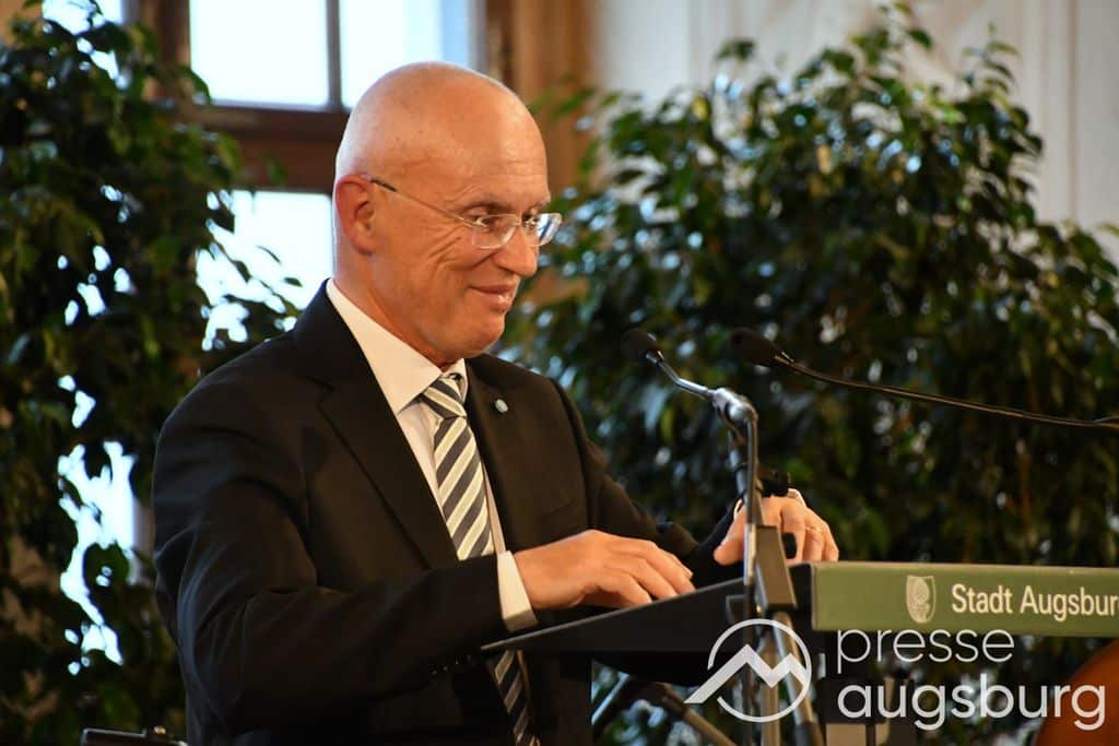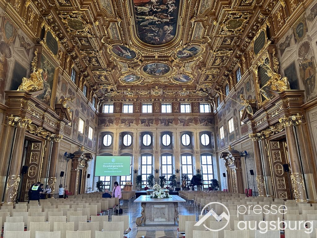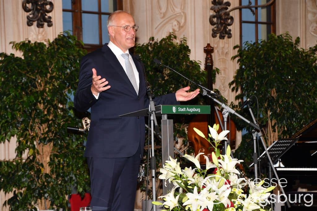 Die Verleihung der Ehrenbürgerwürde fand am Mittwoch im Rahmen eines Festakts im Goldenen Saal des Rathauses statt. Die Laudatio hielt Karl Michael Scheufele, der von 2008 bis 2018 als Regierungspräsident von Schwaben Wegbegleiter von Oberbürgermeister